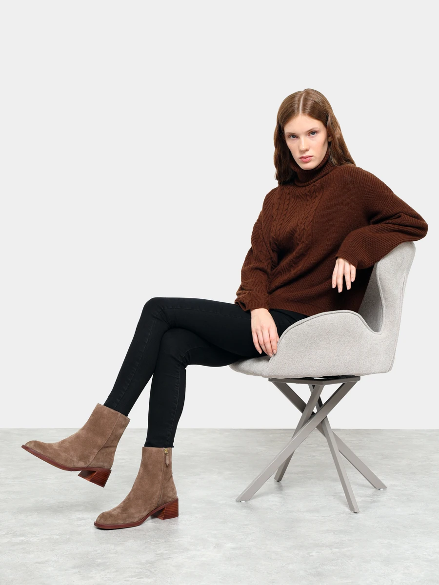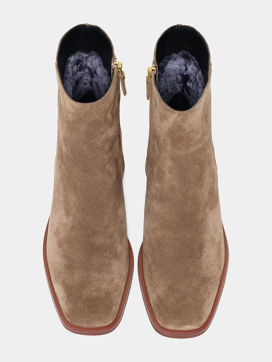 Полусапоги женские зимние, цвет бежевый, натуральный спилок