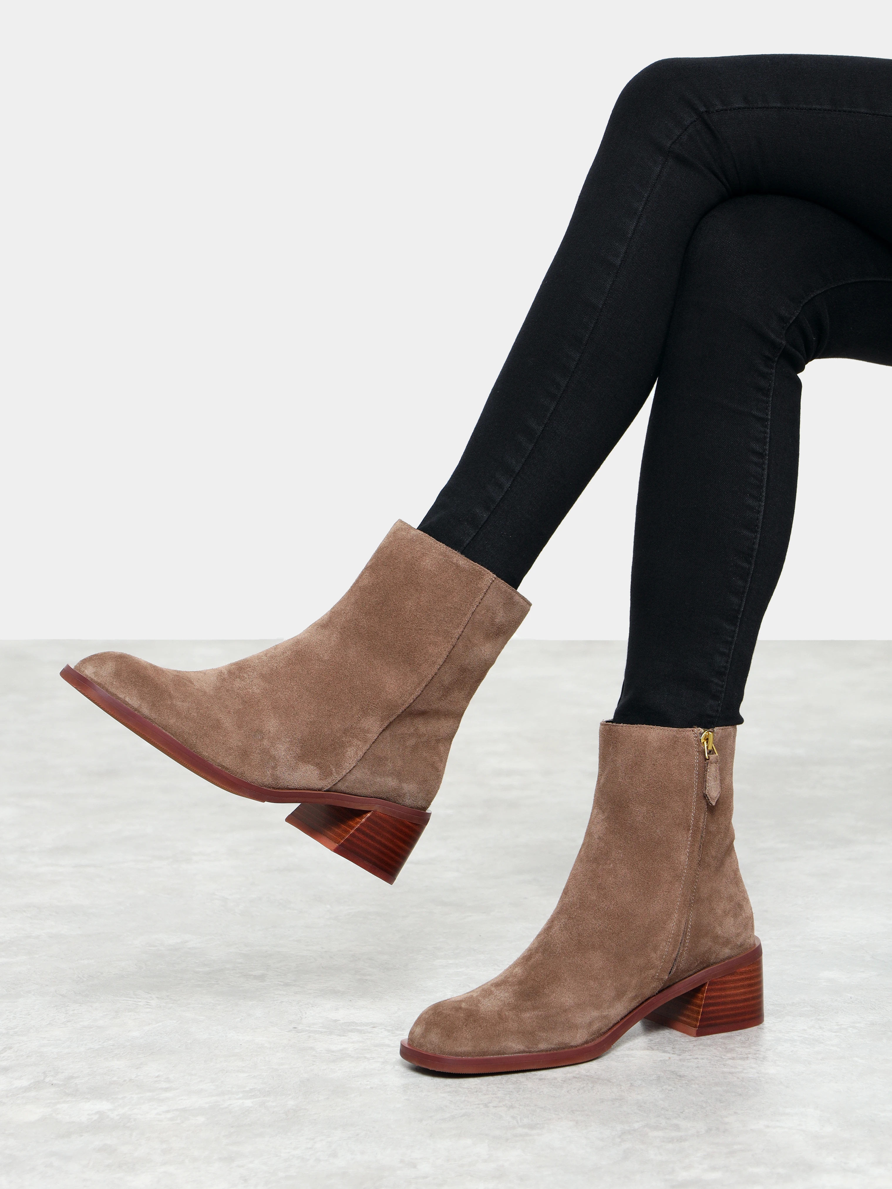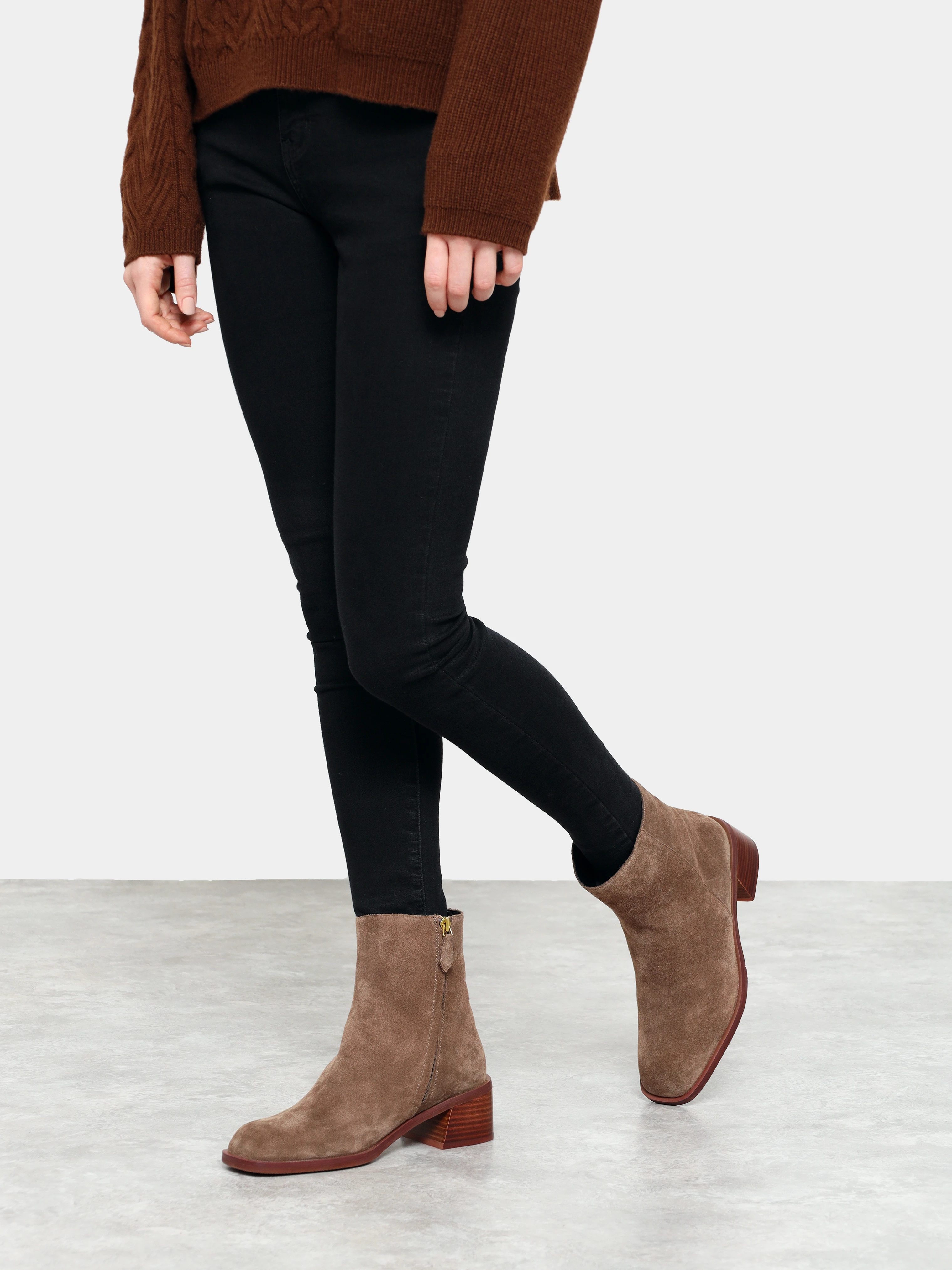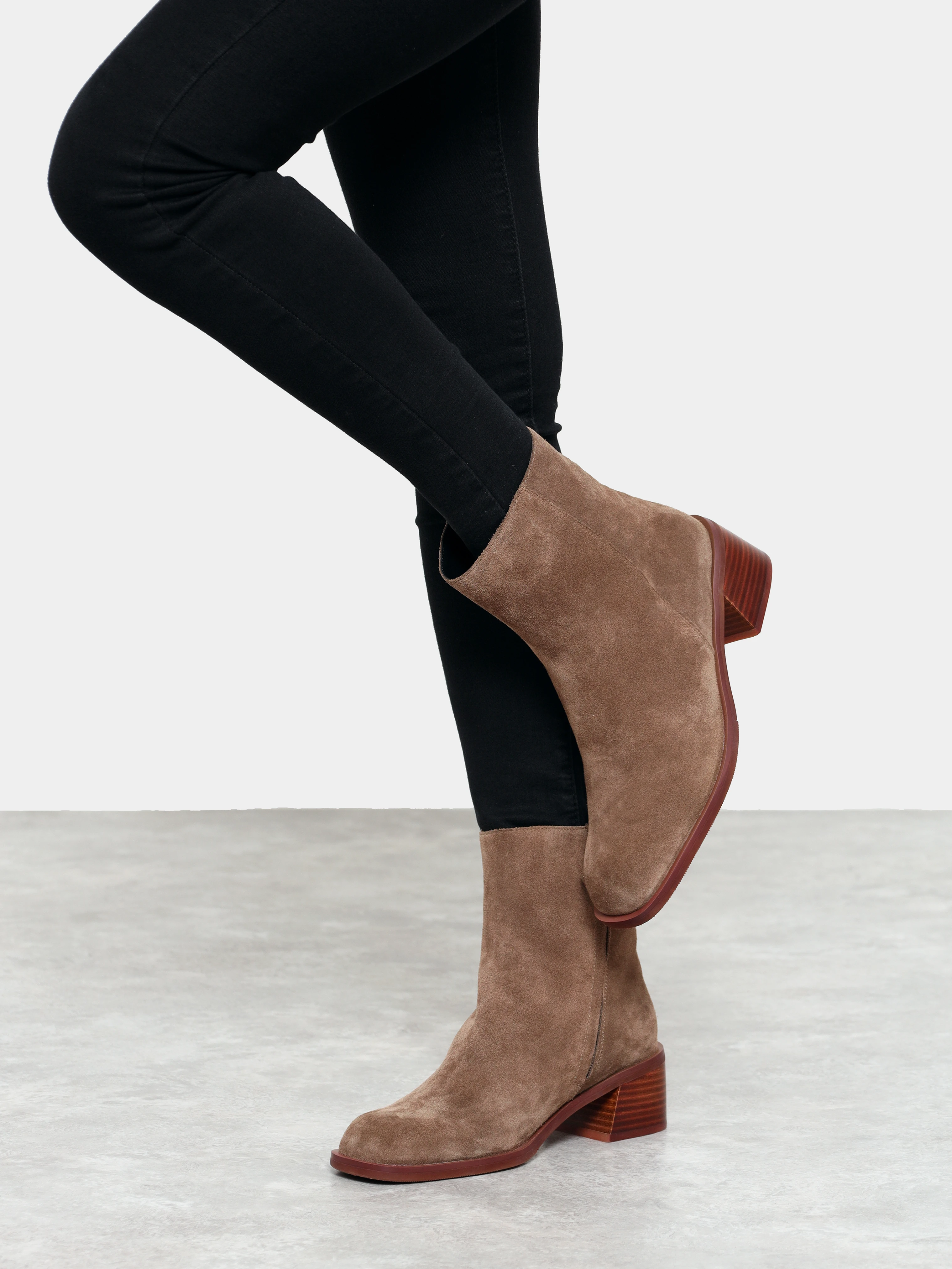 Полусапоги женские зимние, цвет бежевый, натуральный спилок