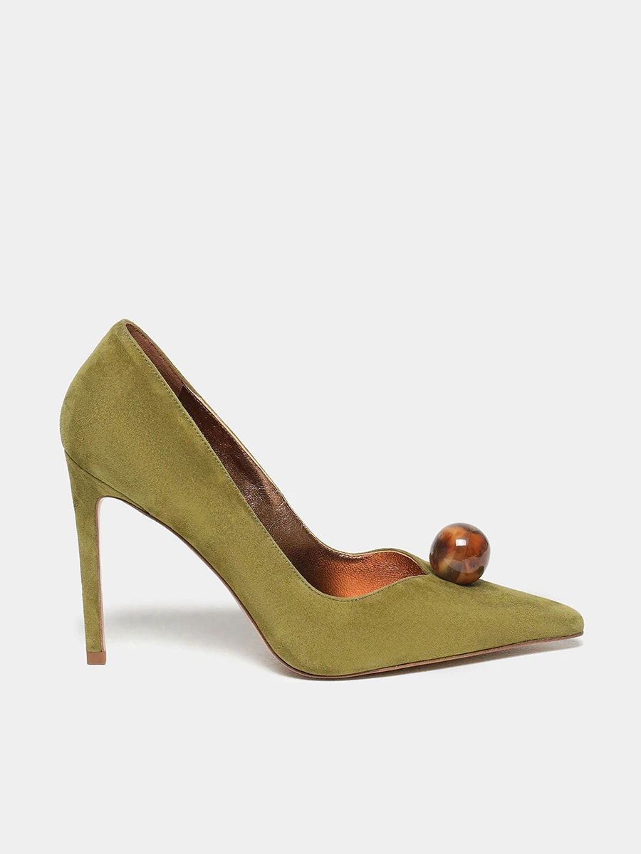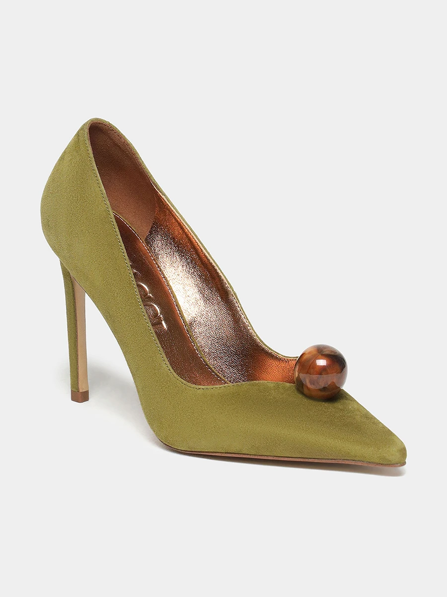 Туфли женские всесезонные, цвет хаки, натуральный велюр