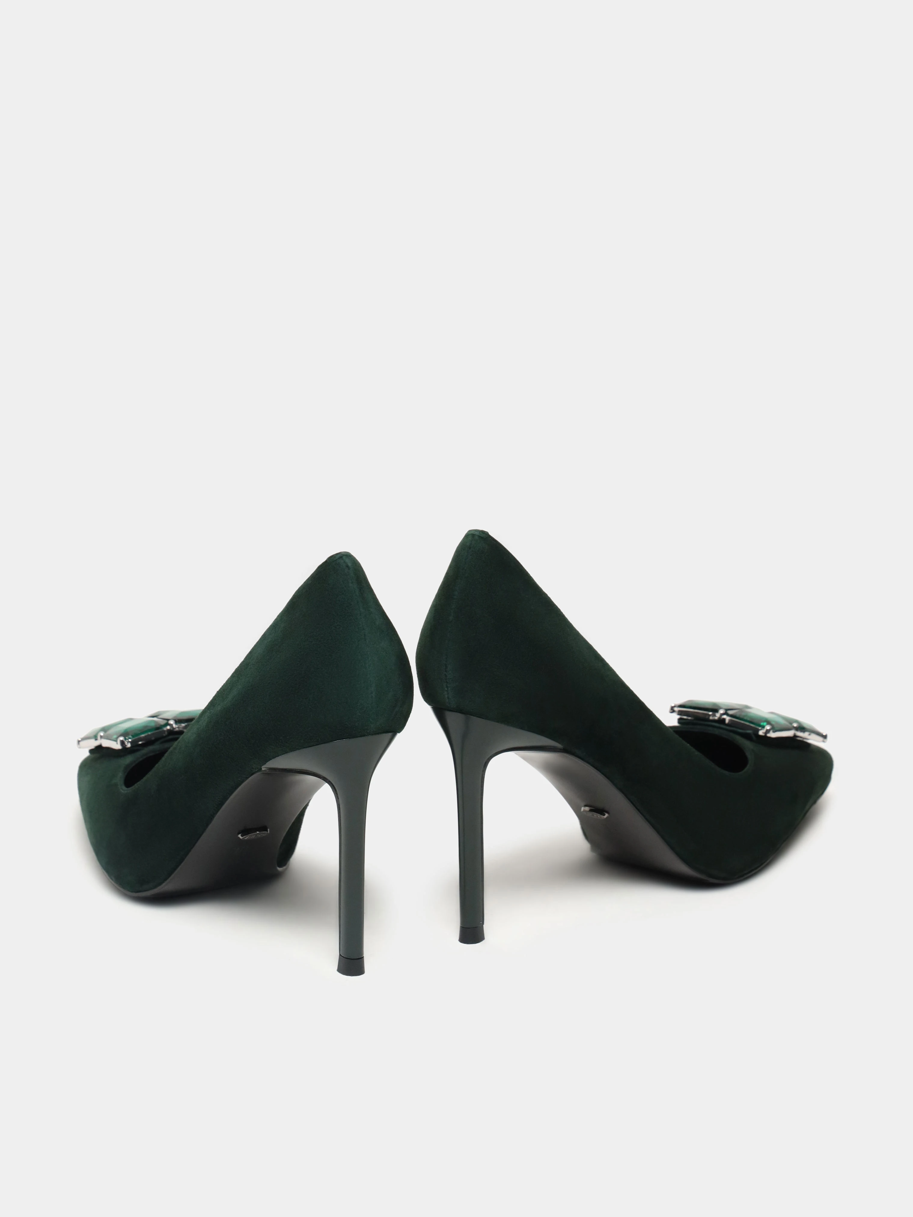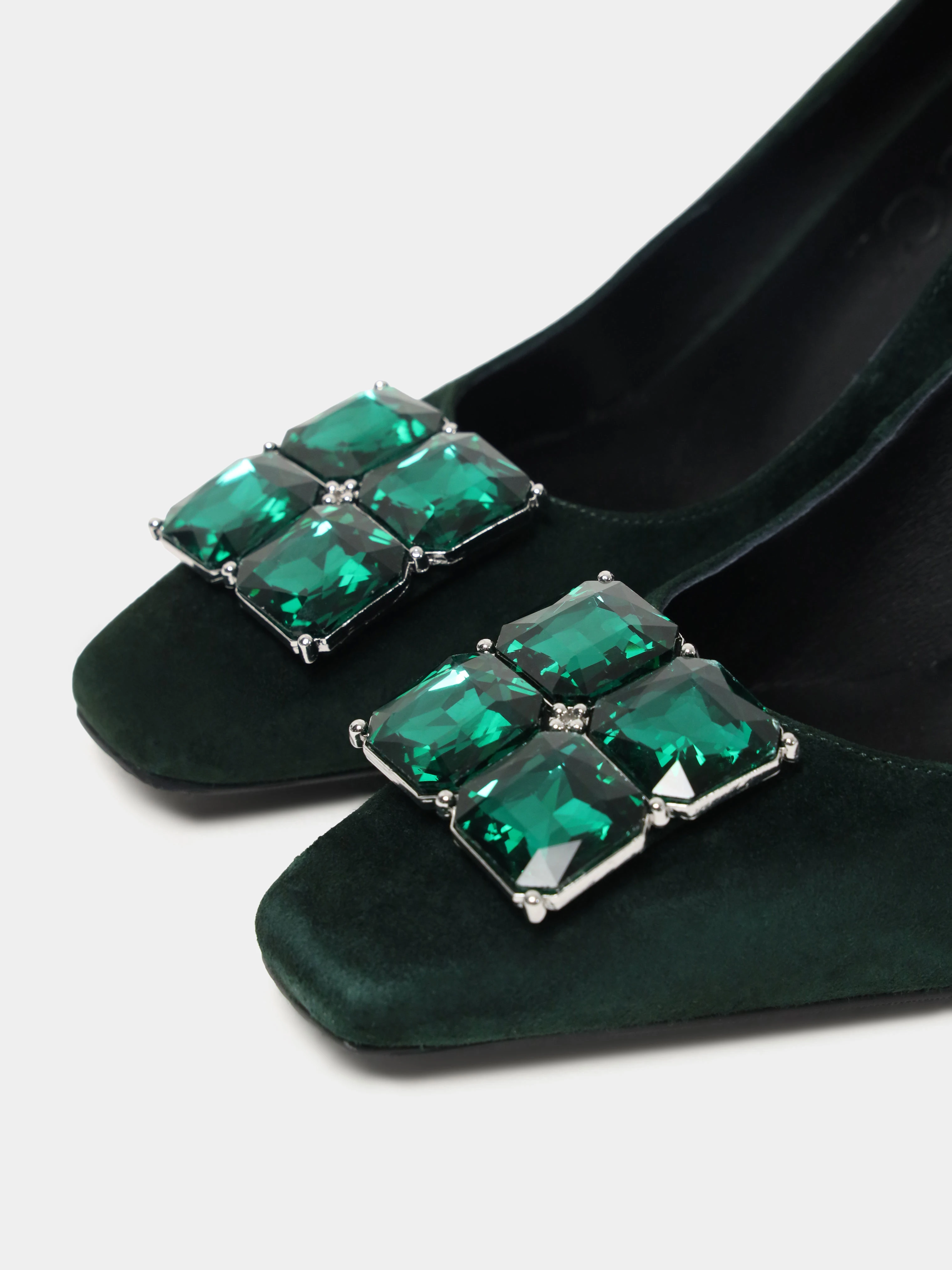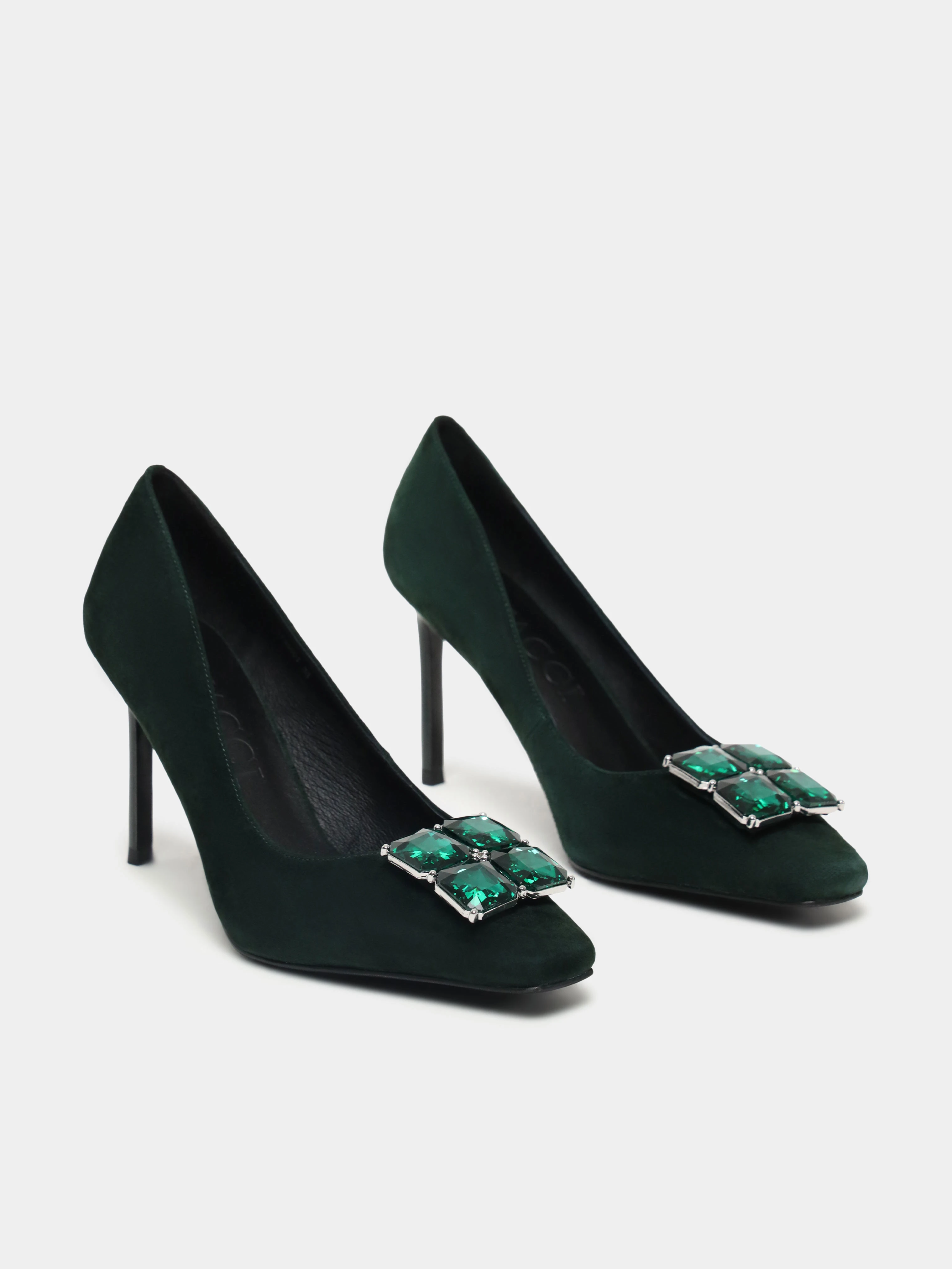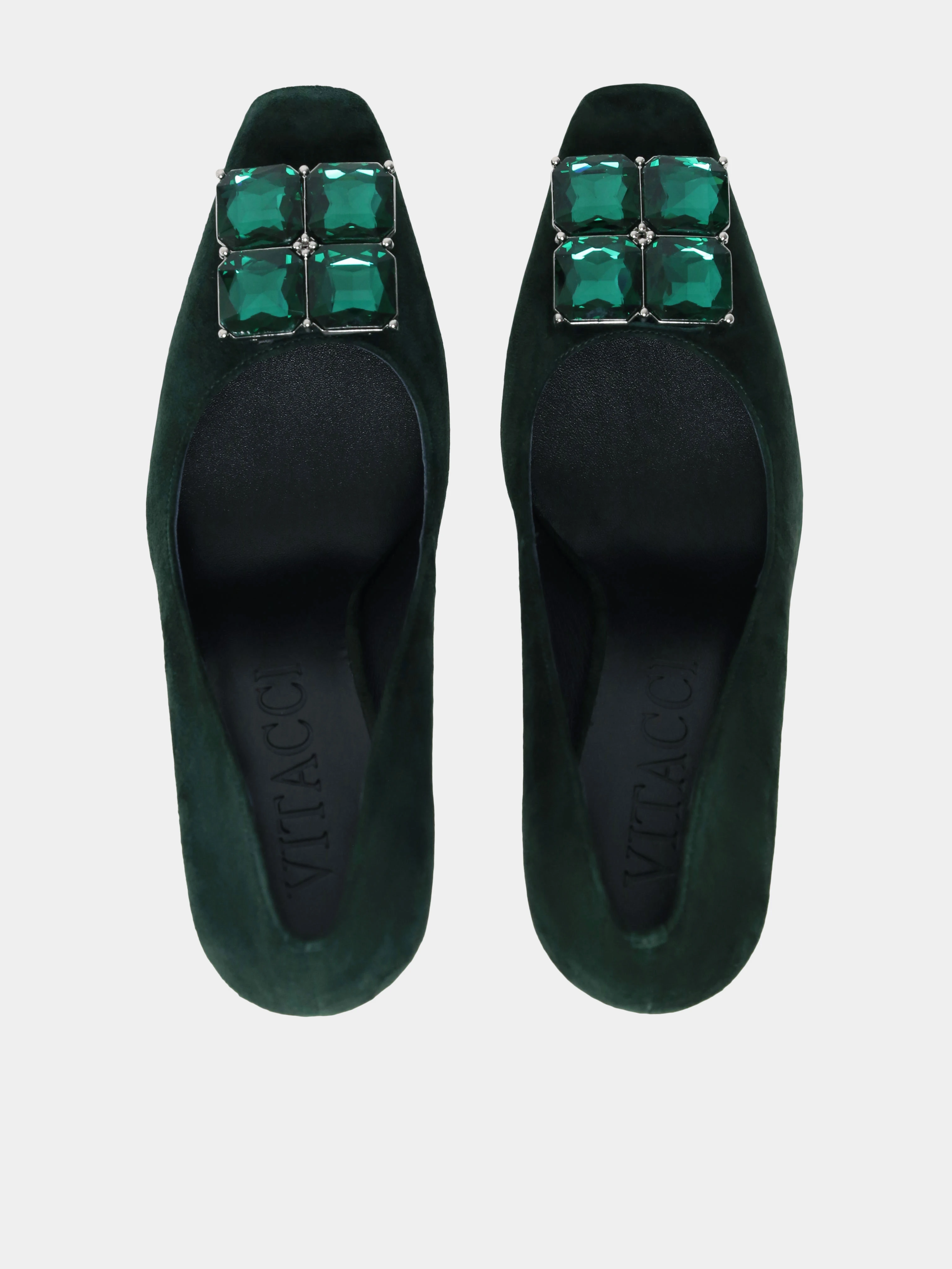 Туфли женские всесезонные, цвет зеленый, натуральный велюр