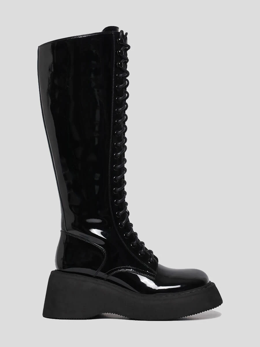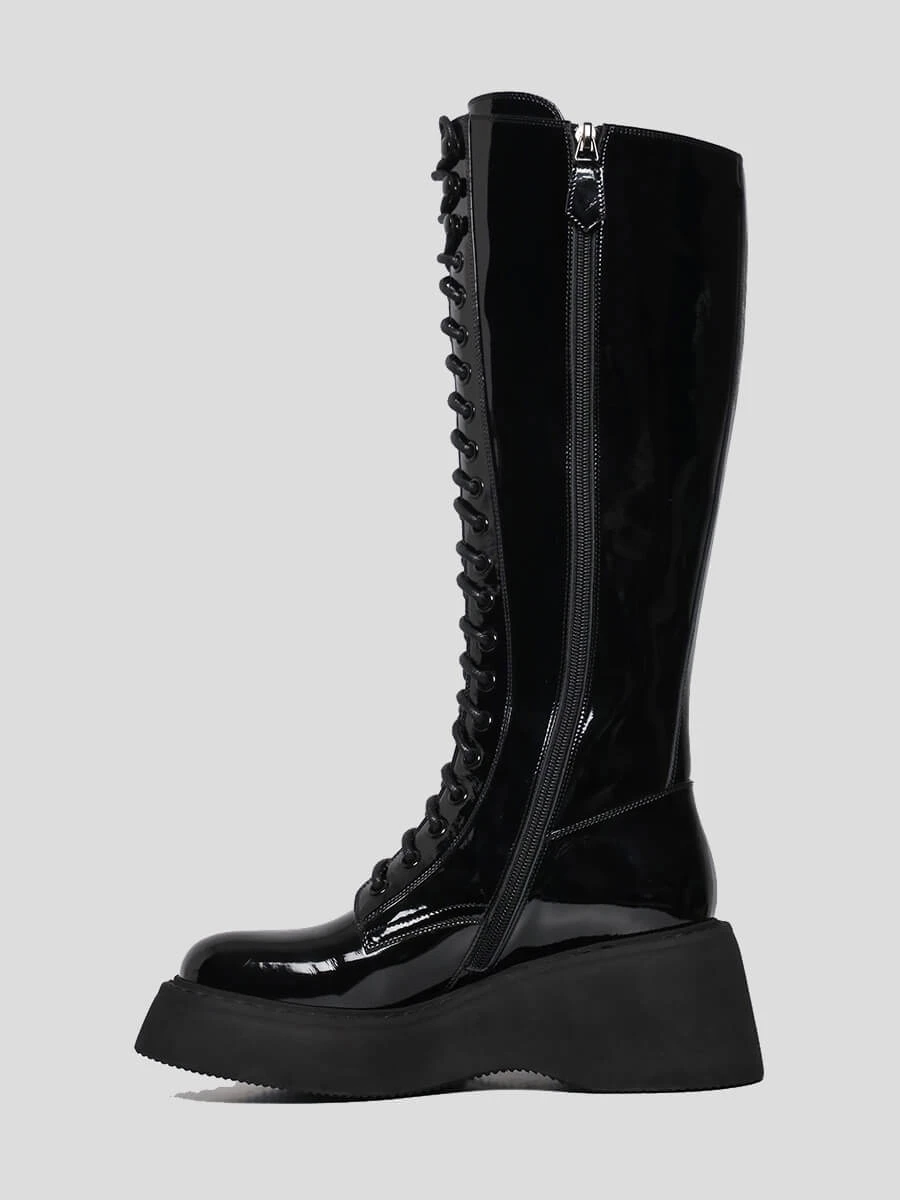 Сапоги женские демисезонные, цвет черный, натуральная кожа/натуральный лак