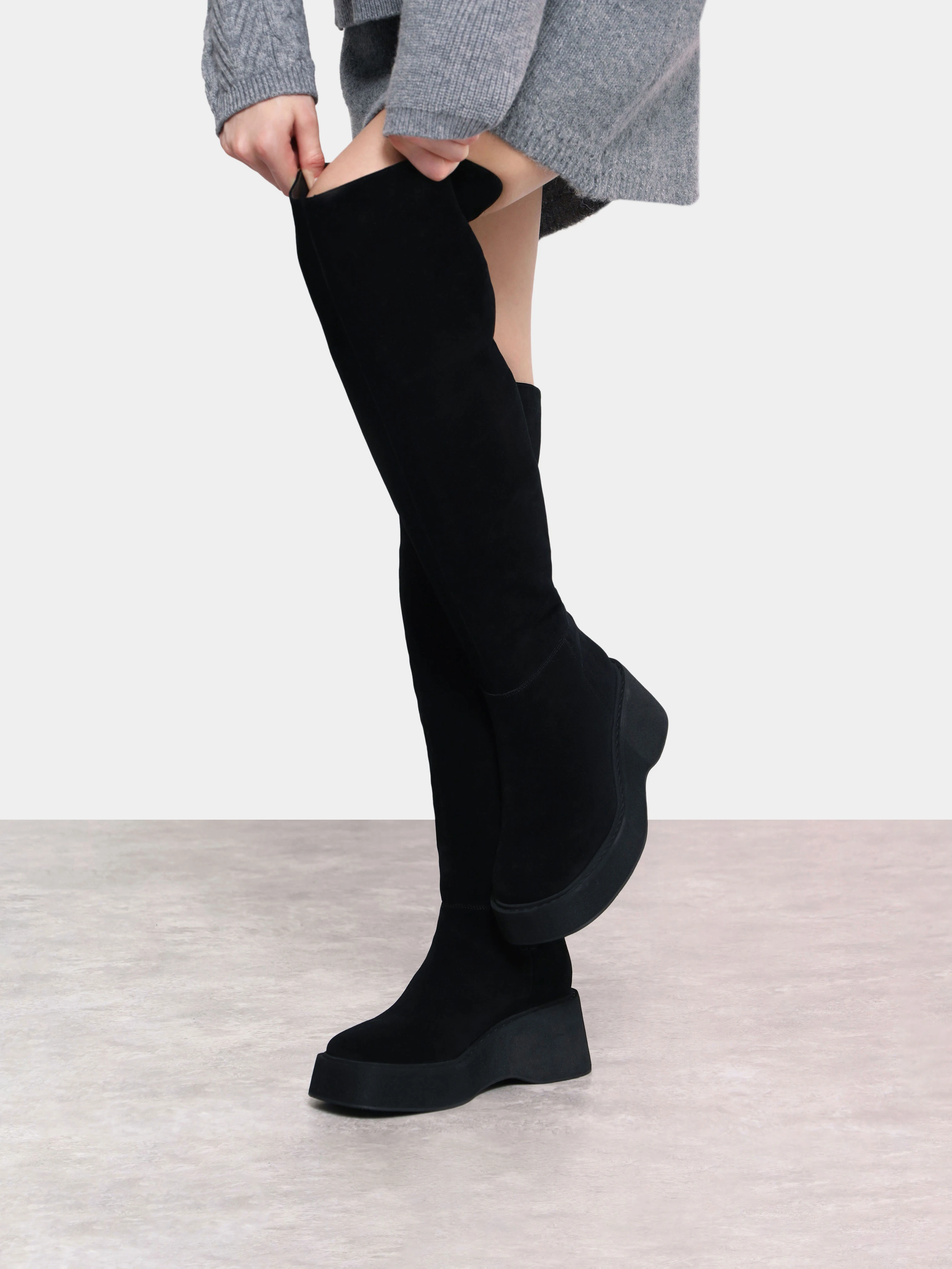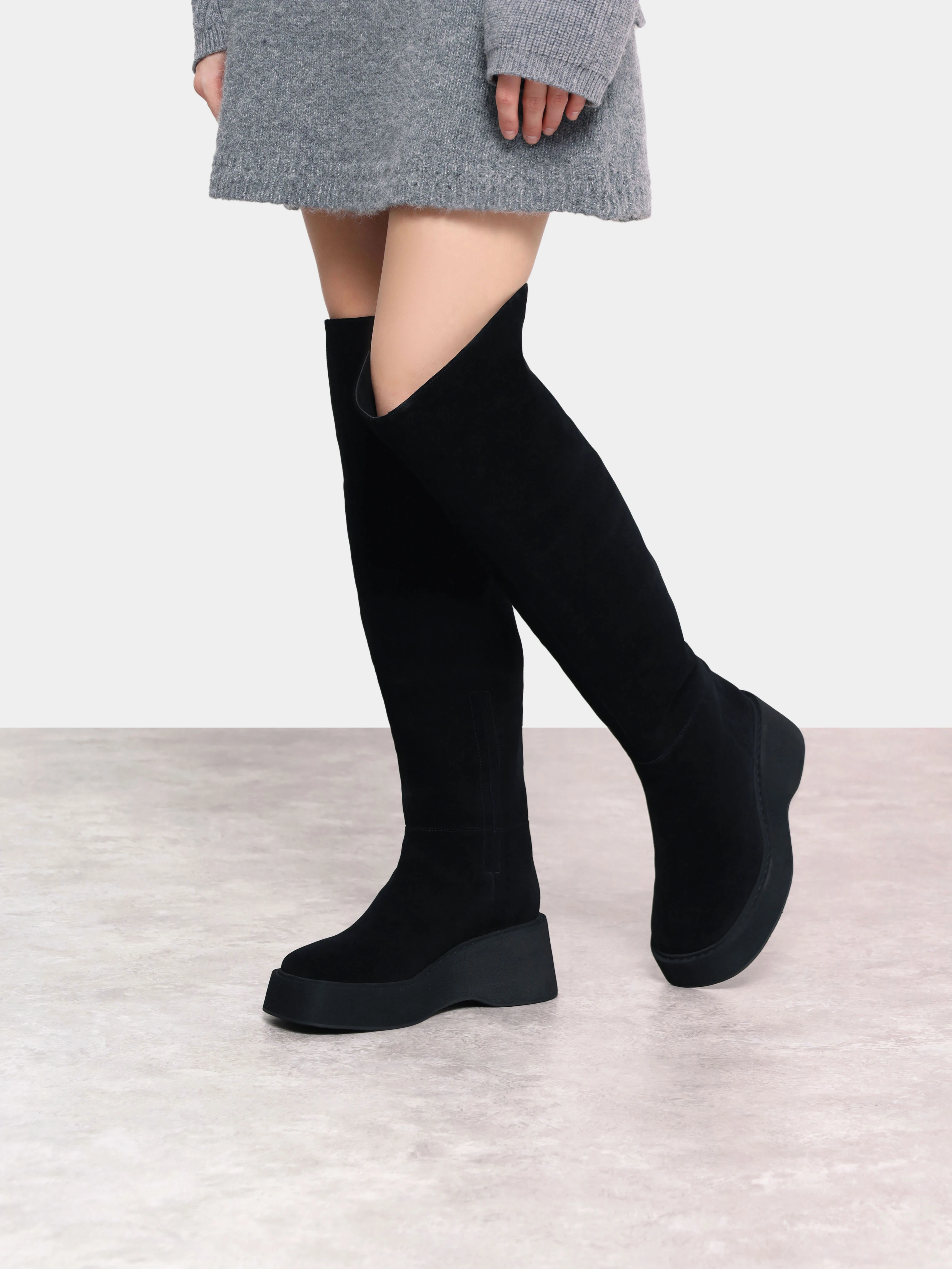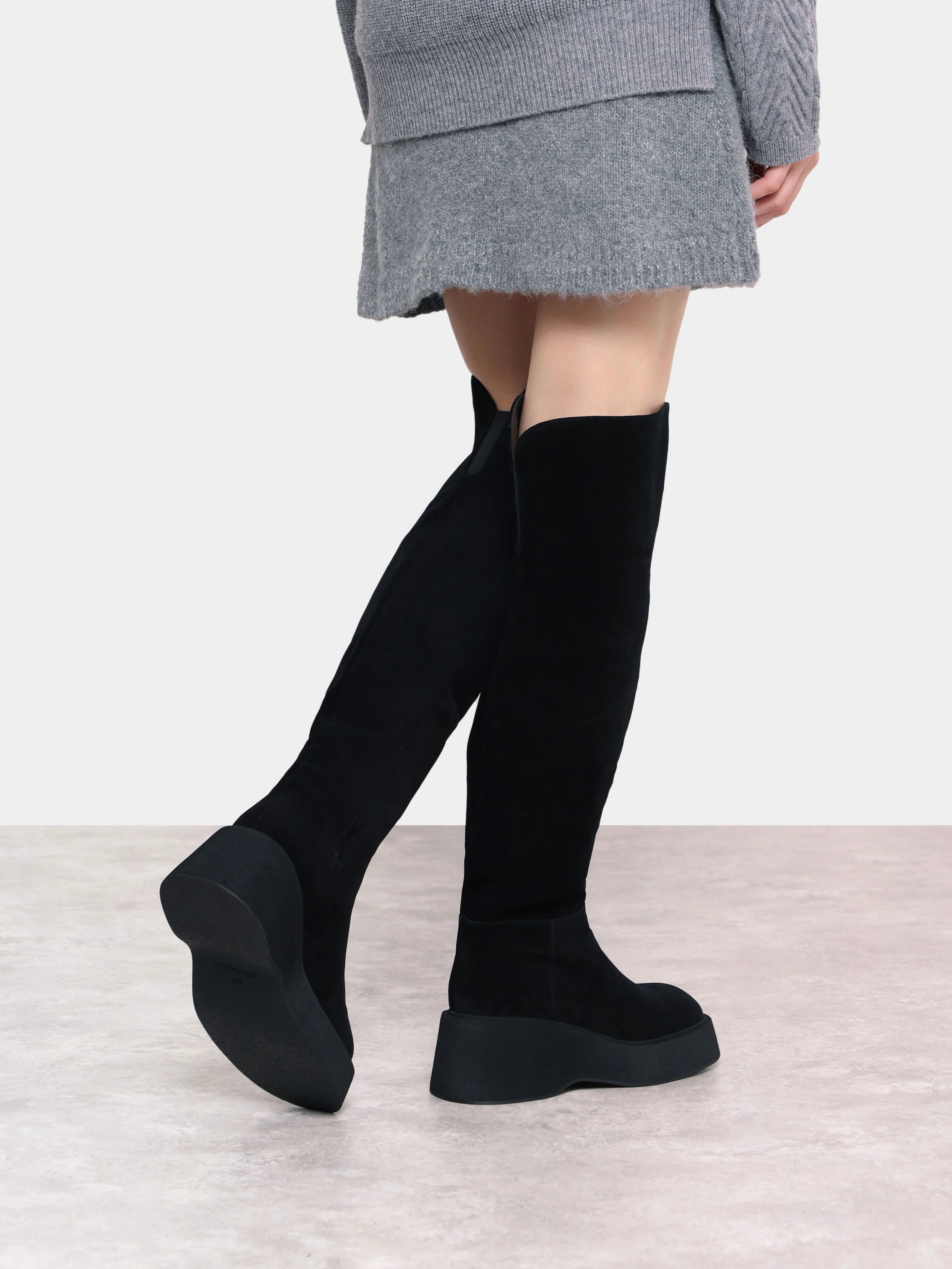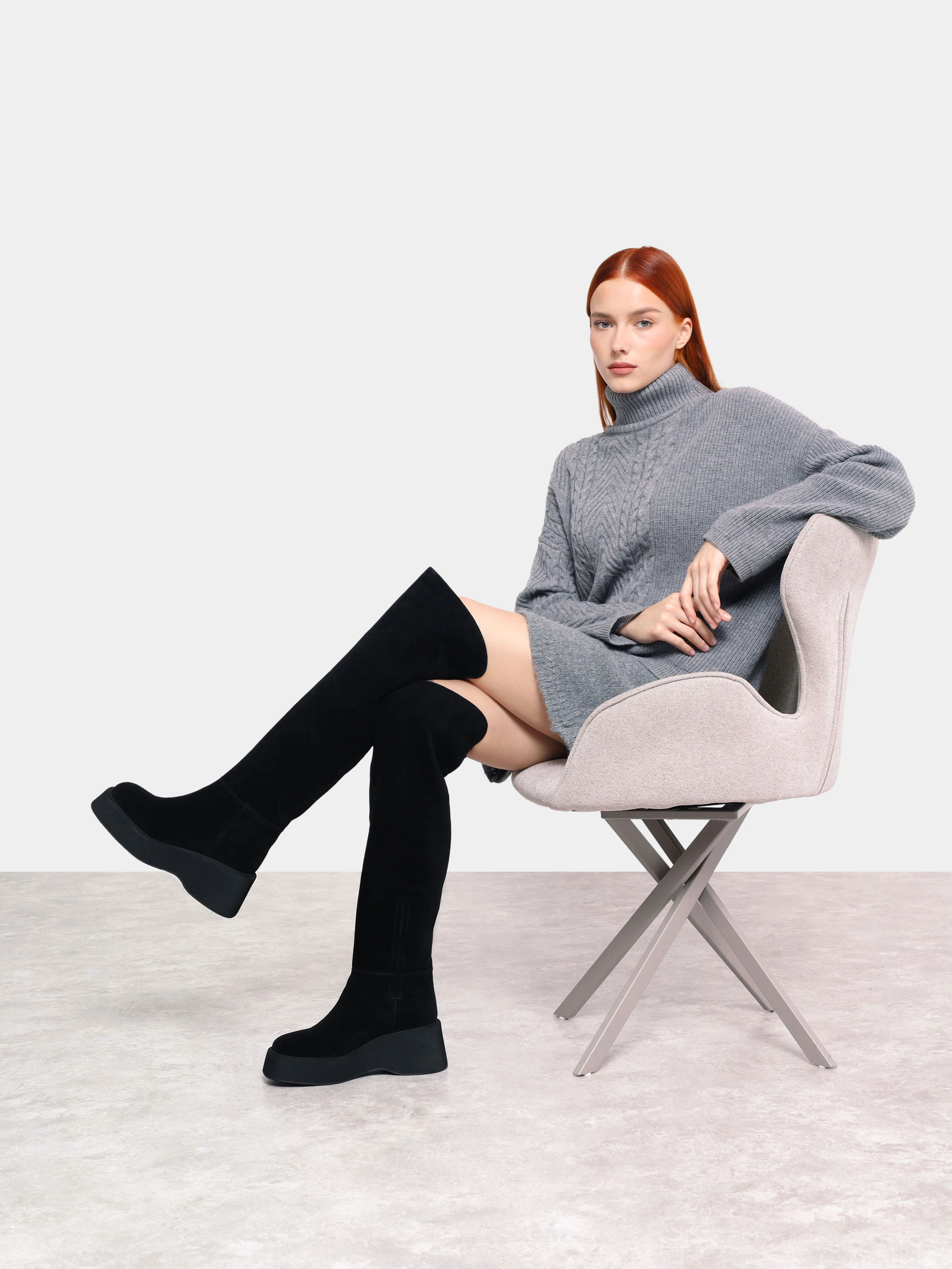 Ботфорты женские зимние, цвет черный, натуральная кожа/натуральный спилок