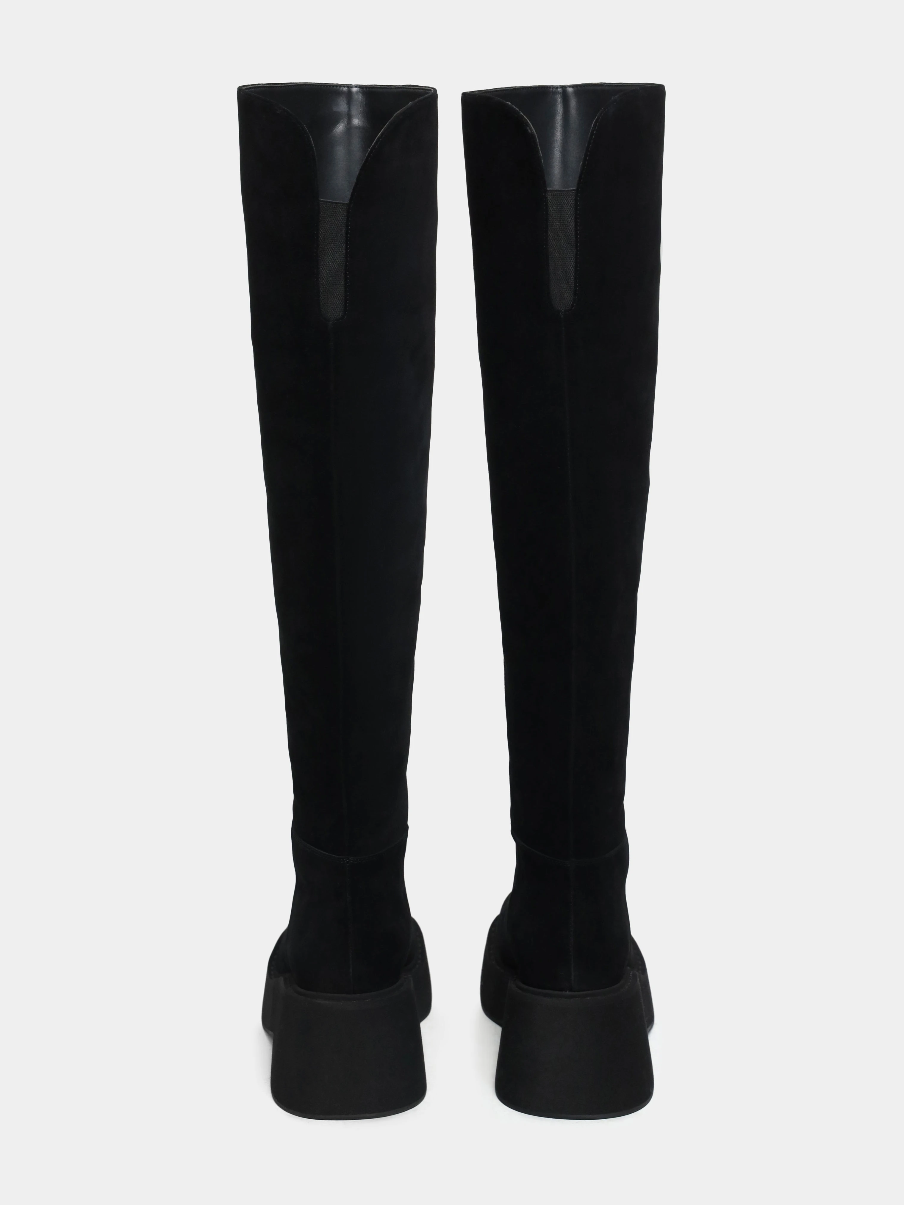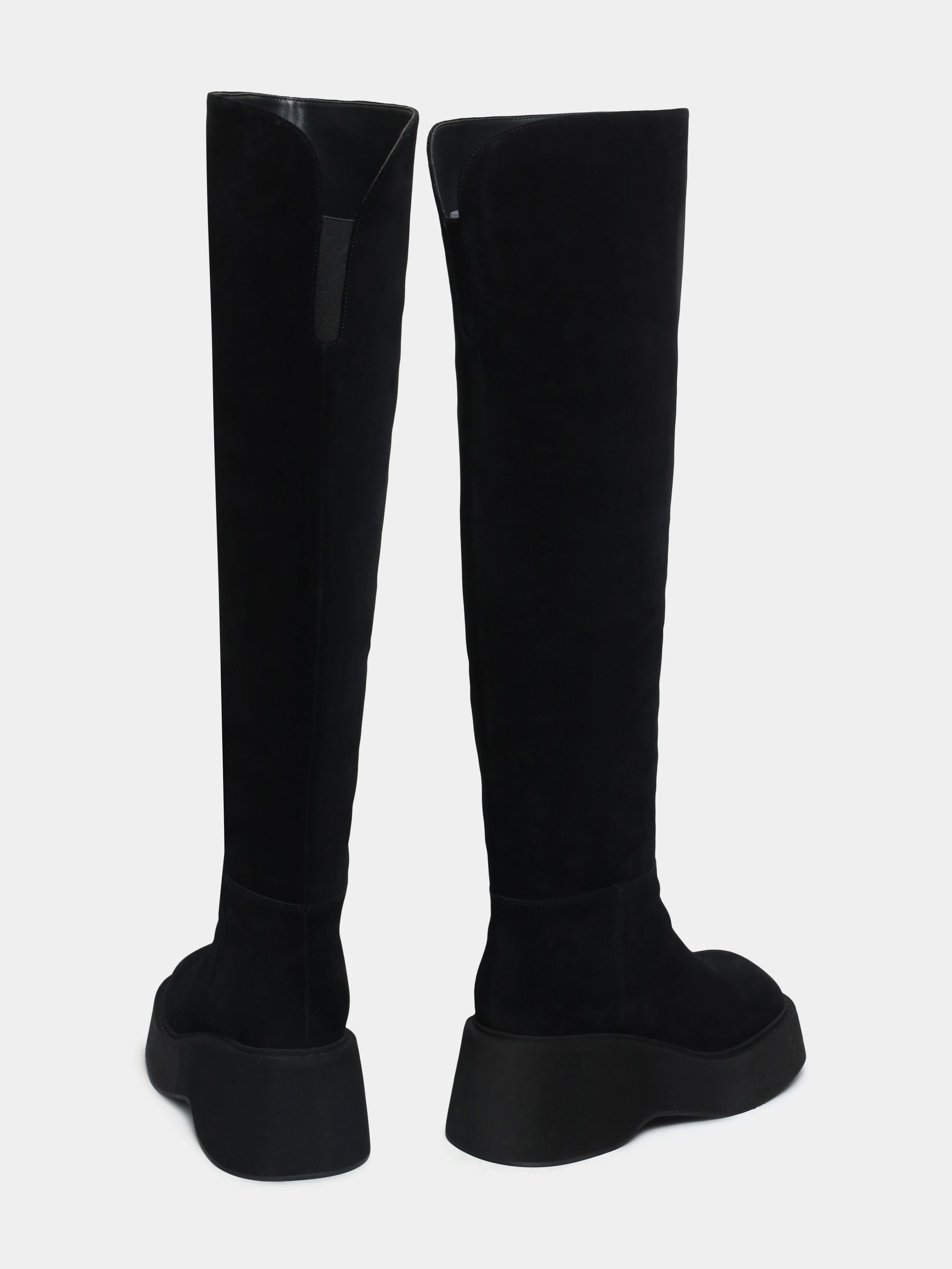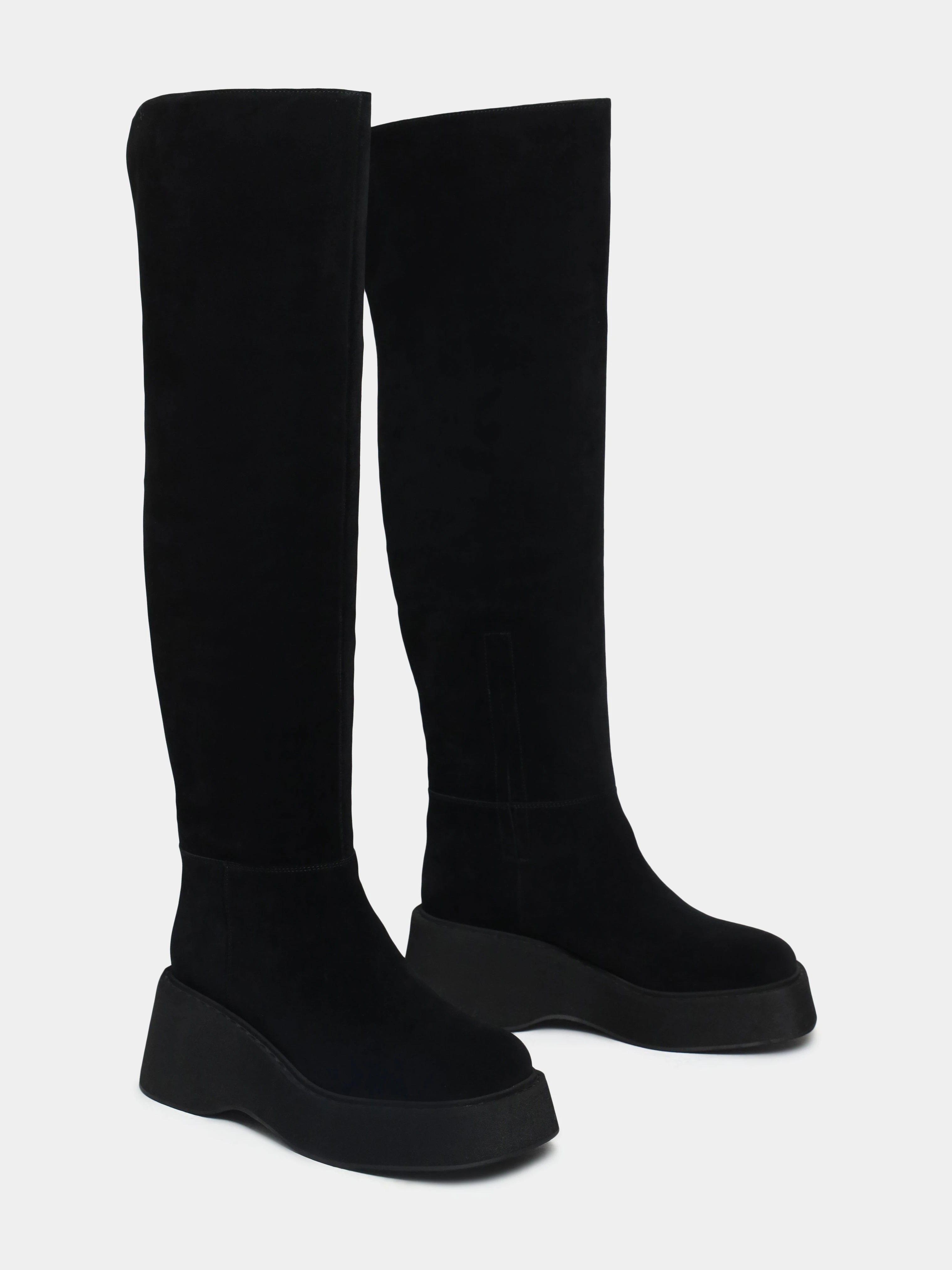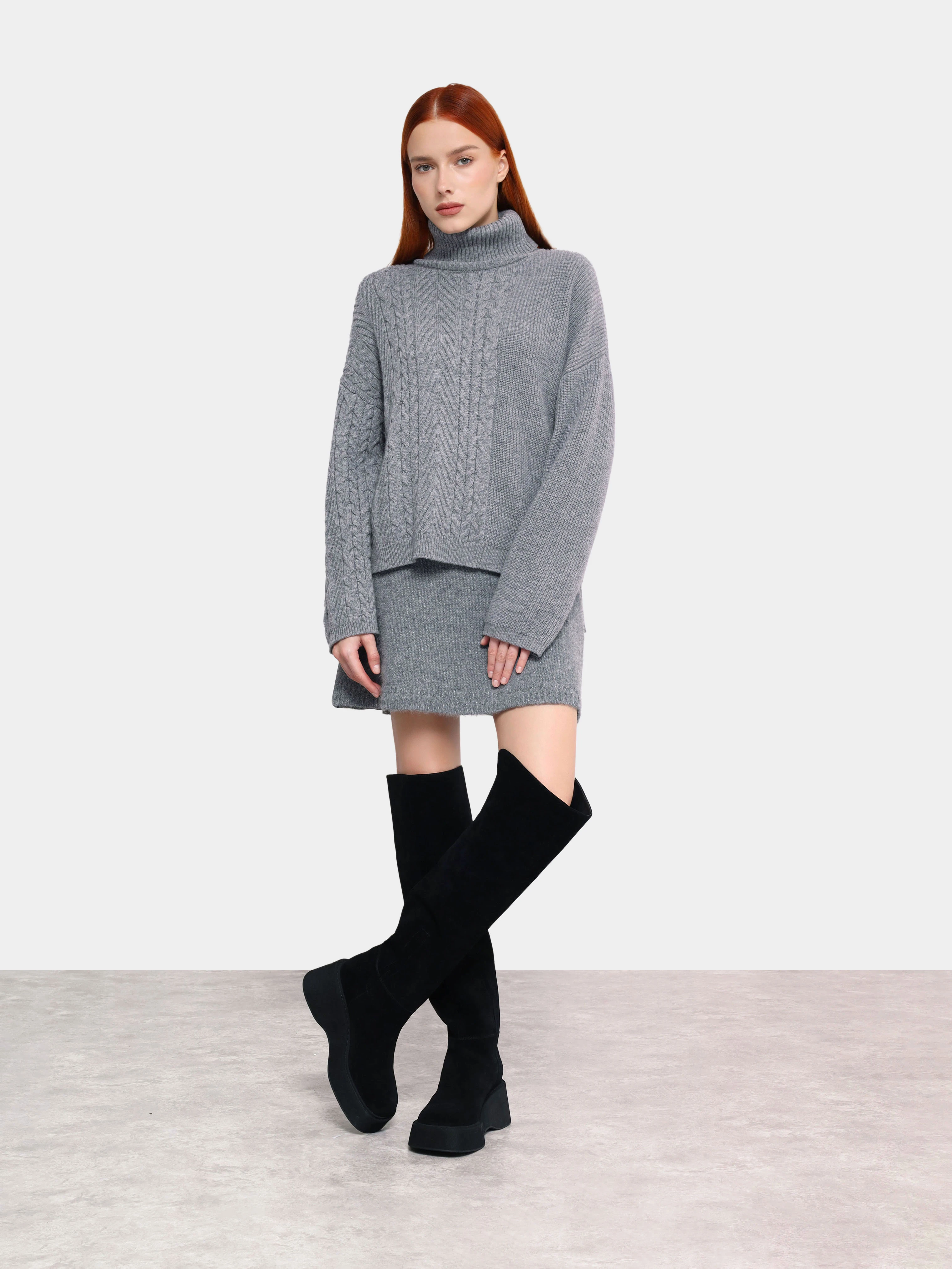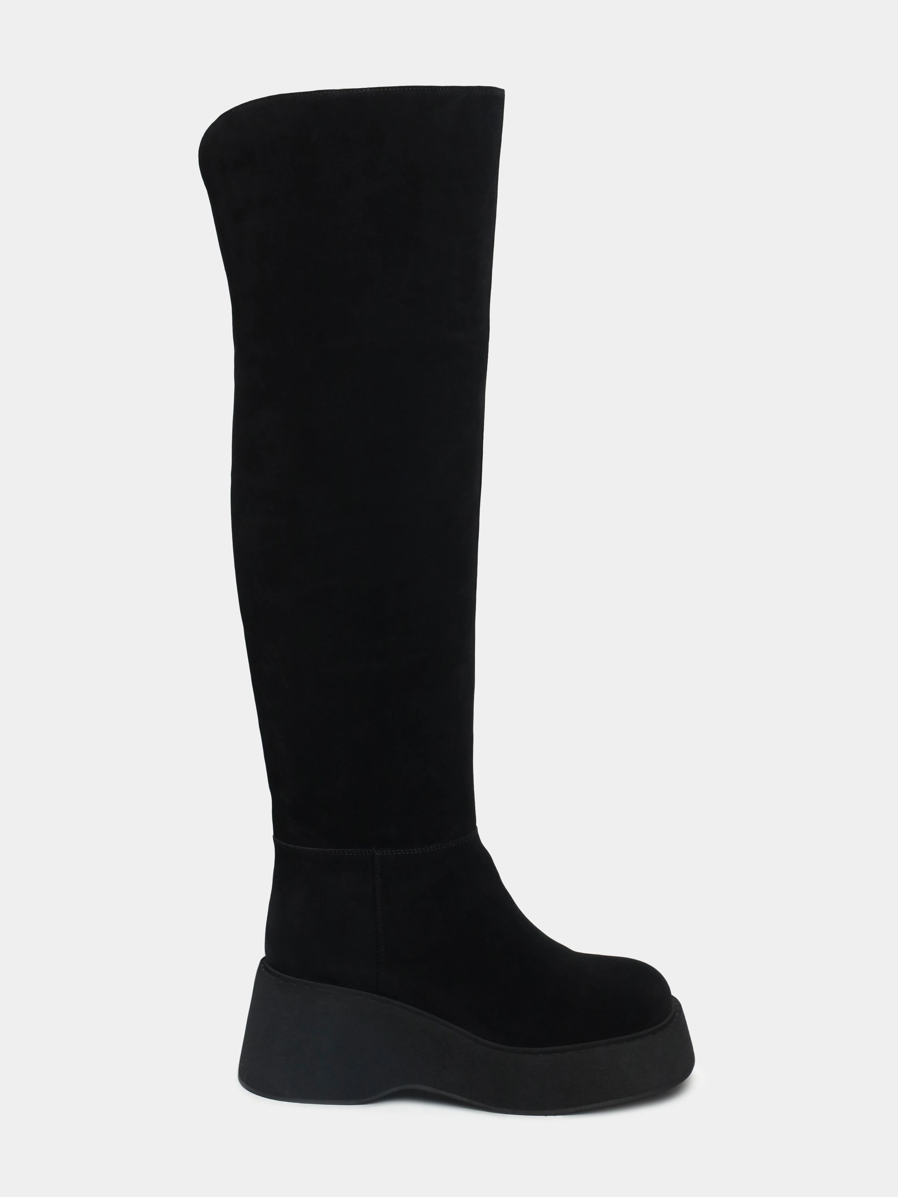 Ботфорты женские зимние, цвет черный, натуральная кожа/натуральный спилок
