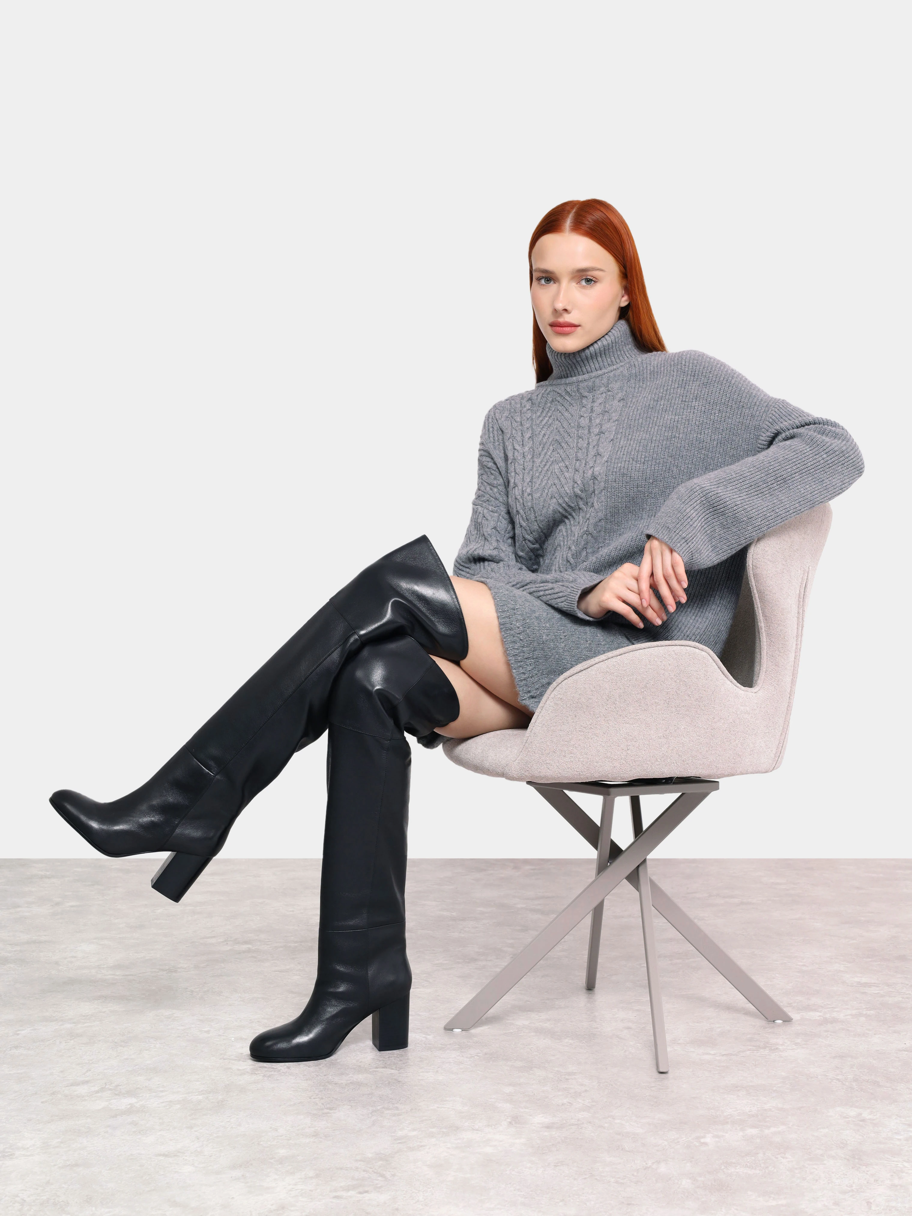 Ботфорты женские демисезонные, цвет черный, натуральная кожа