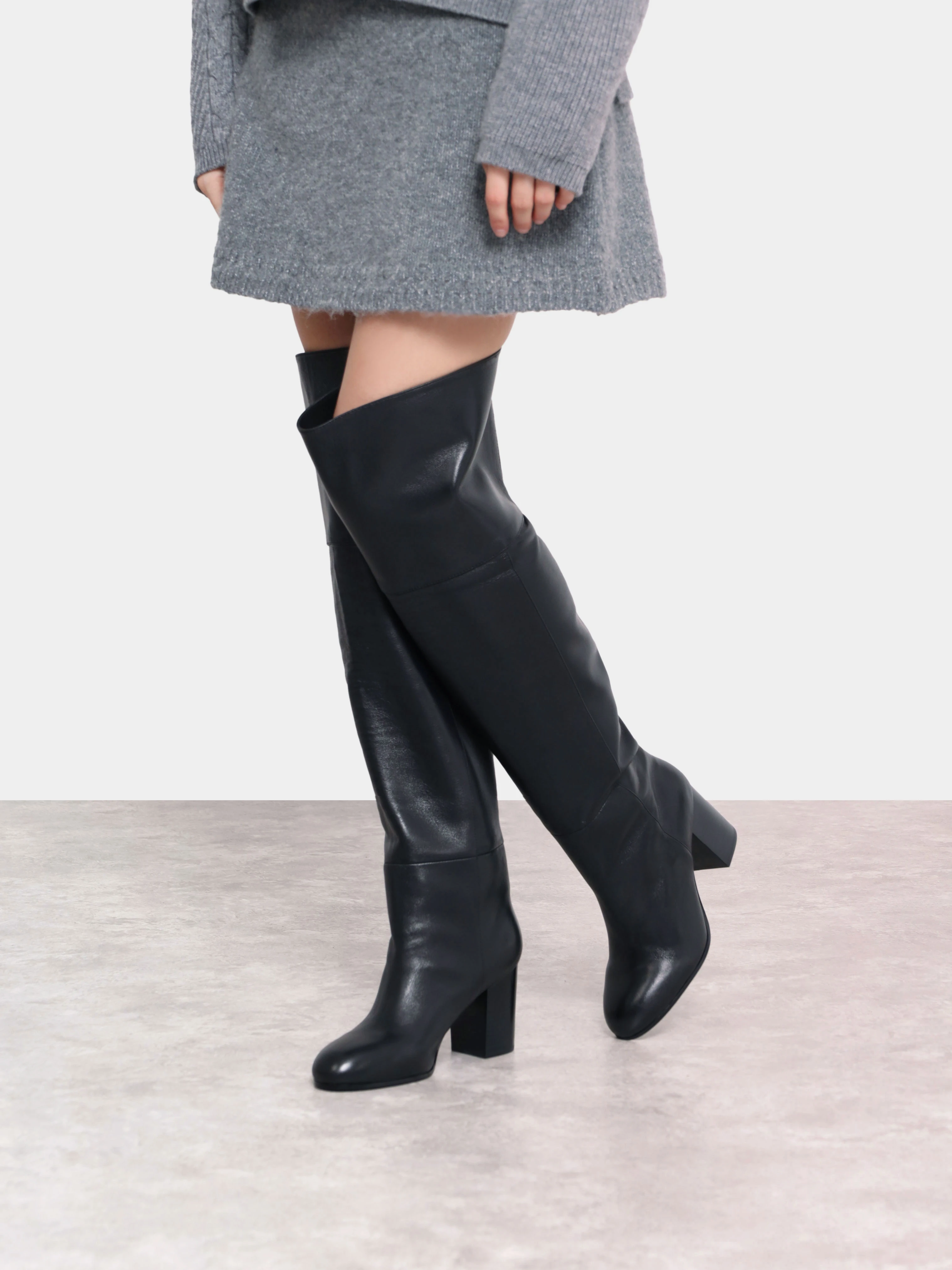 Ботфорты женские демисезонные, цвет черный, натуральная кожа 1730130 | 1