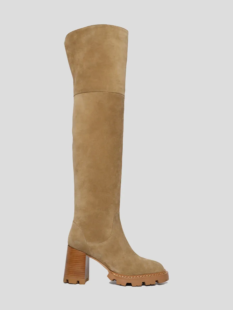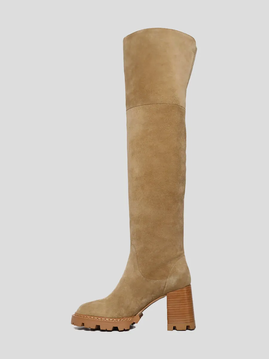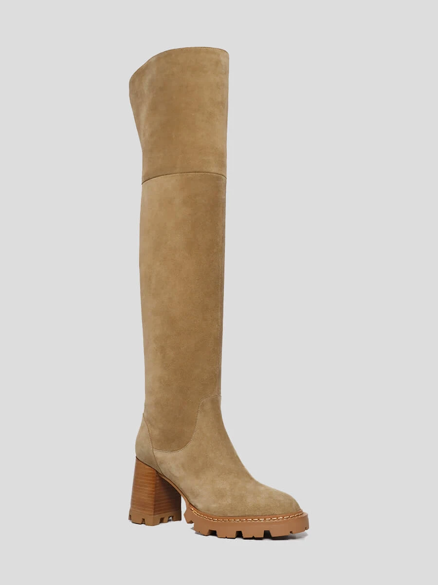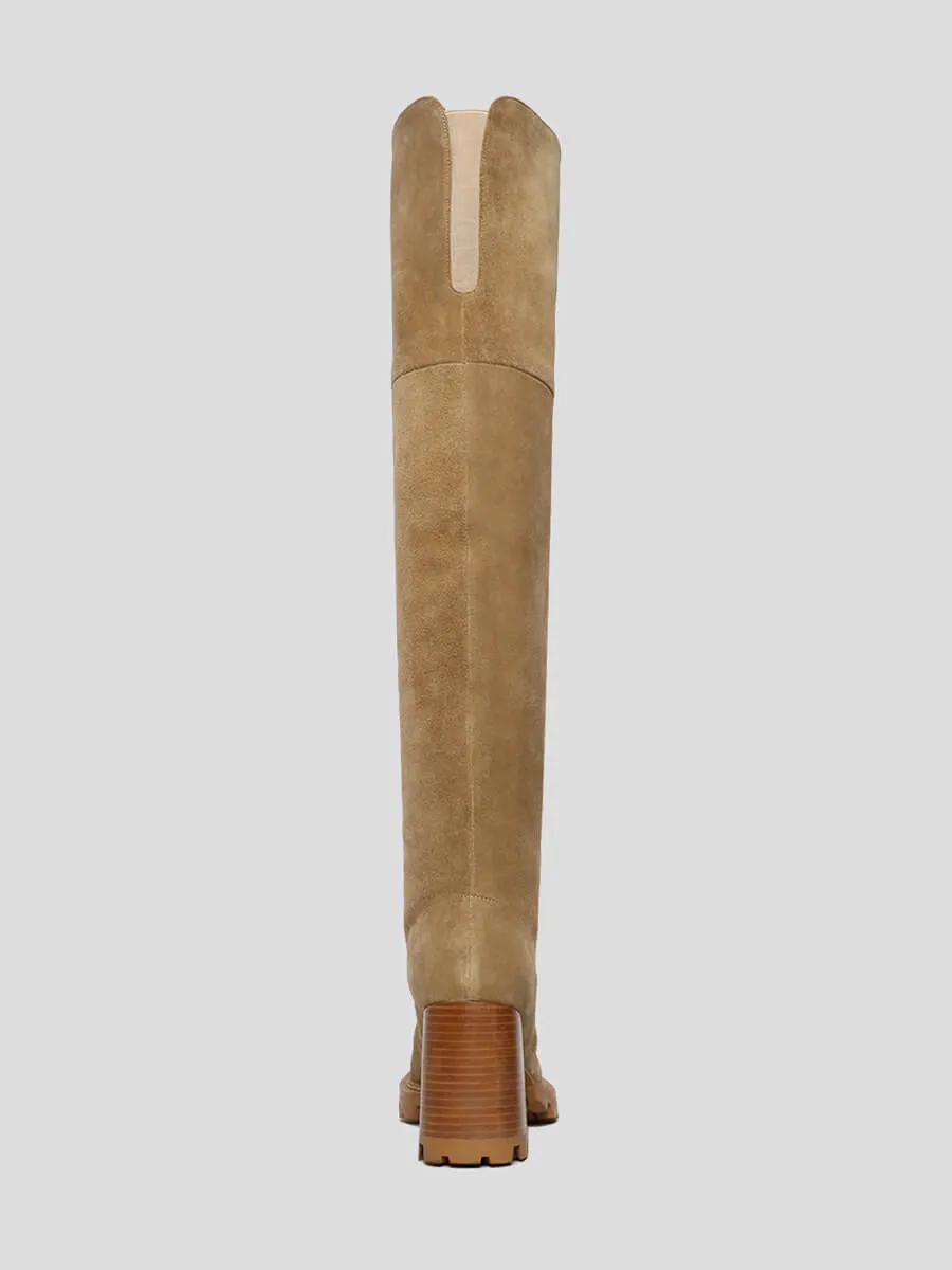 Ботфорты женские демисезонные, цвет бежевый, натуральный спилок