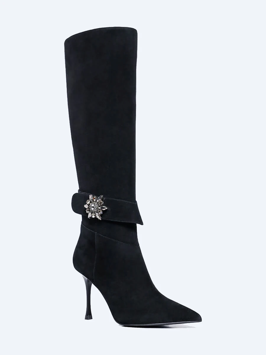 Сапоги женские демисезонные, цвет черный, натуральный велюр