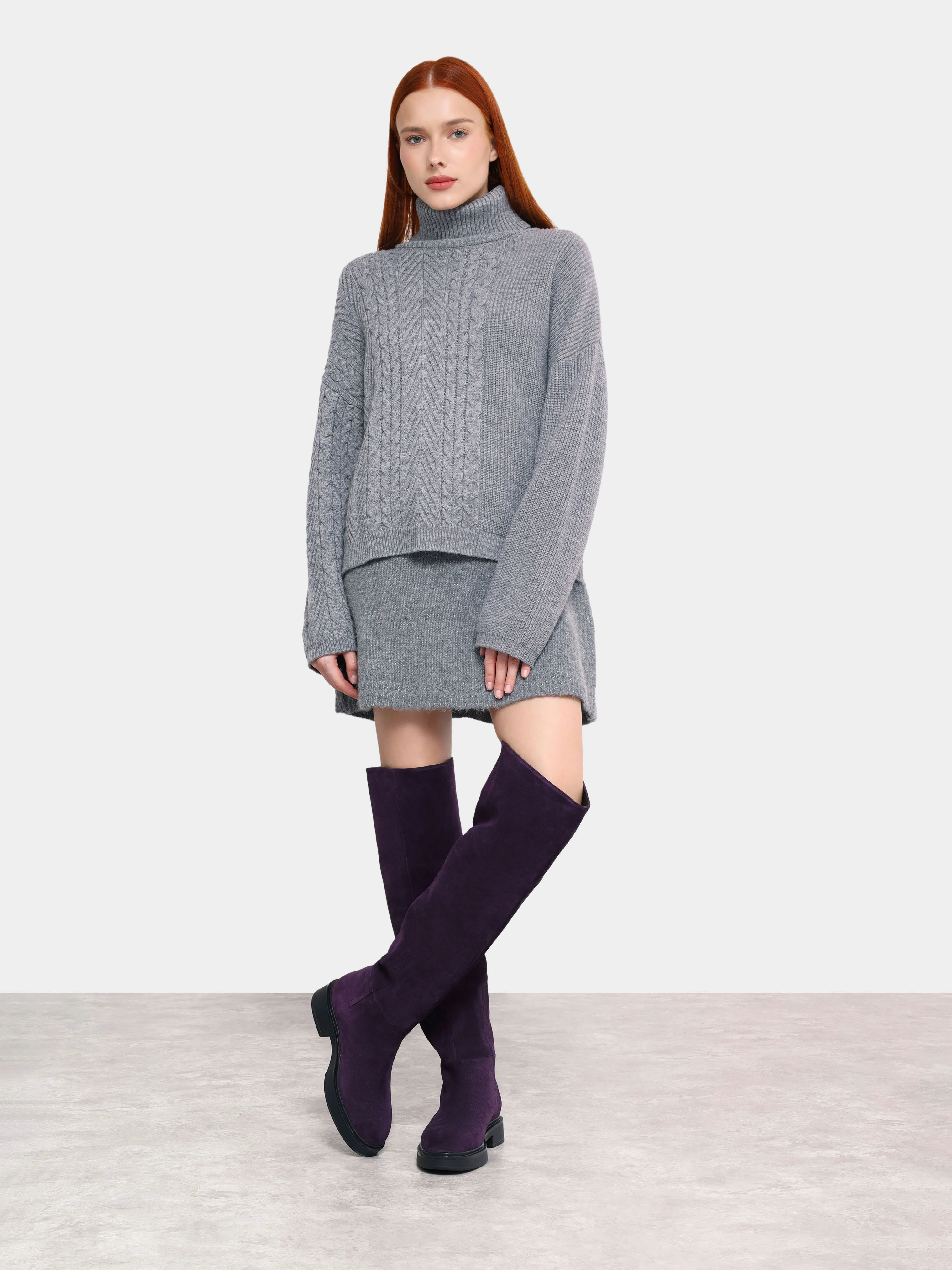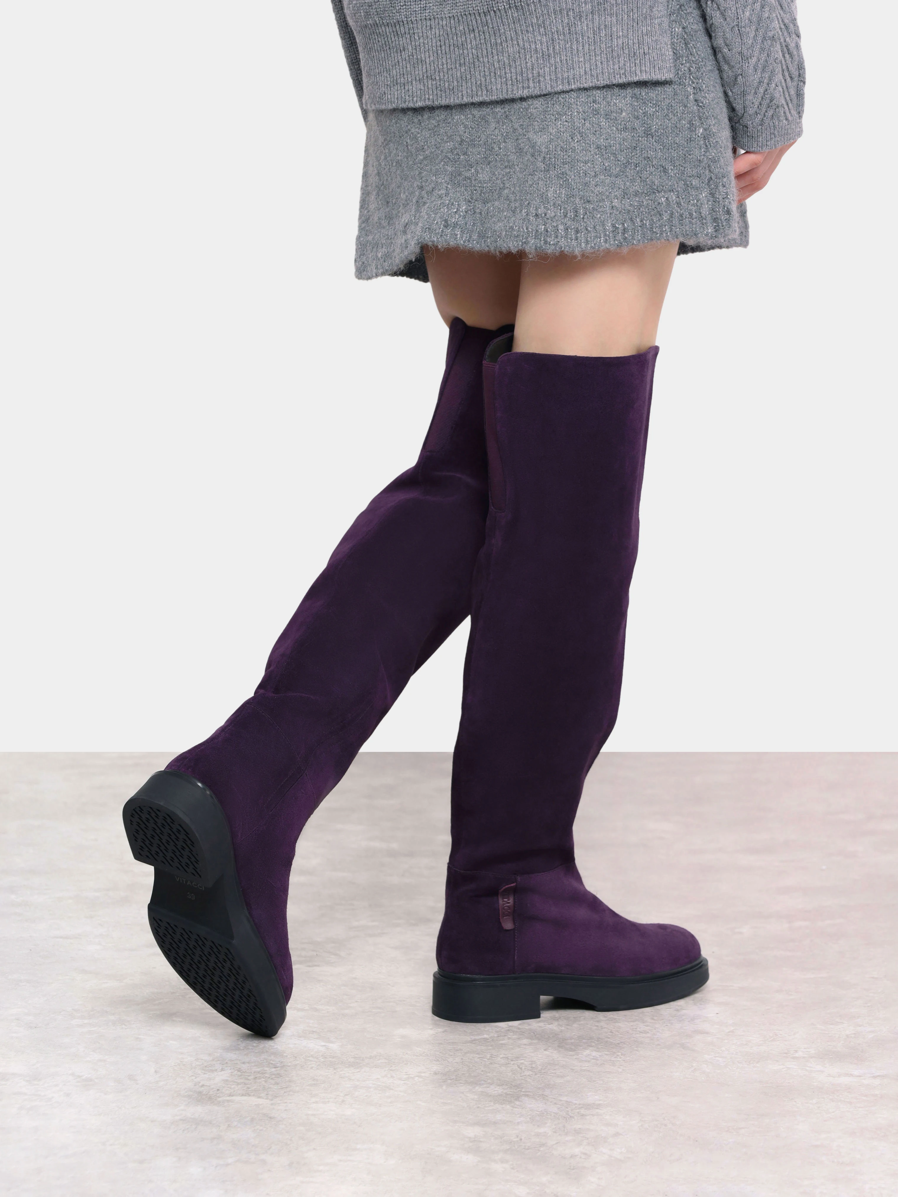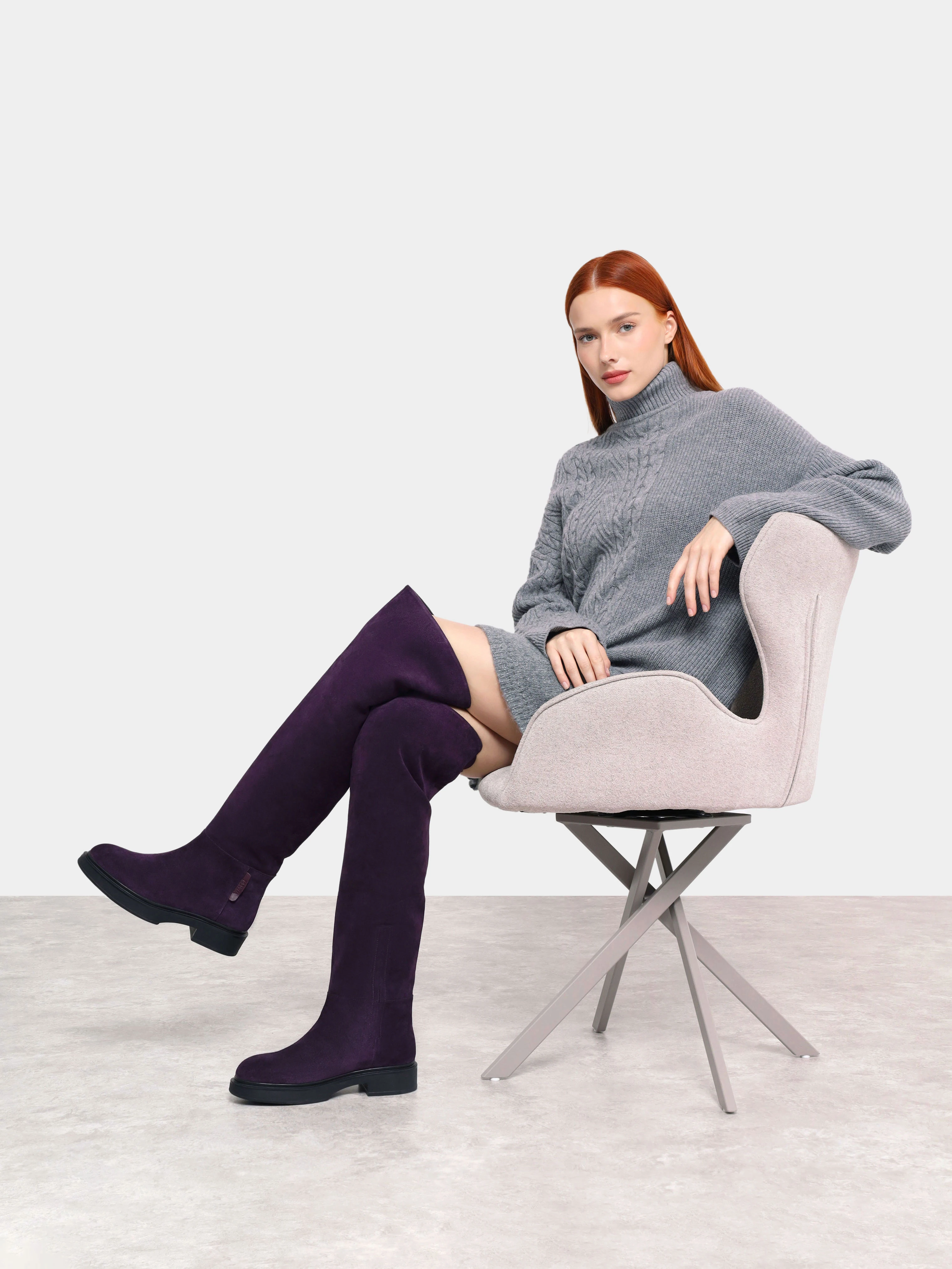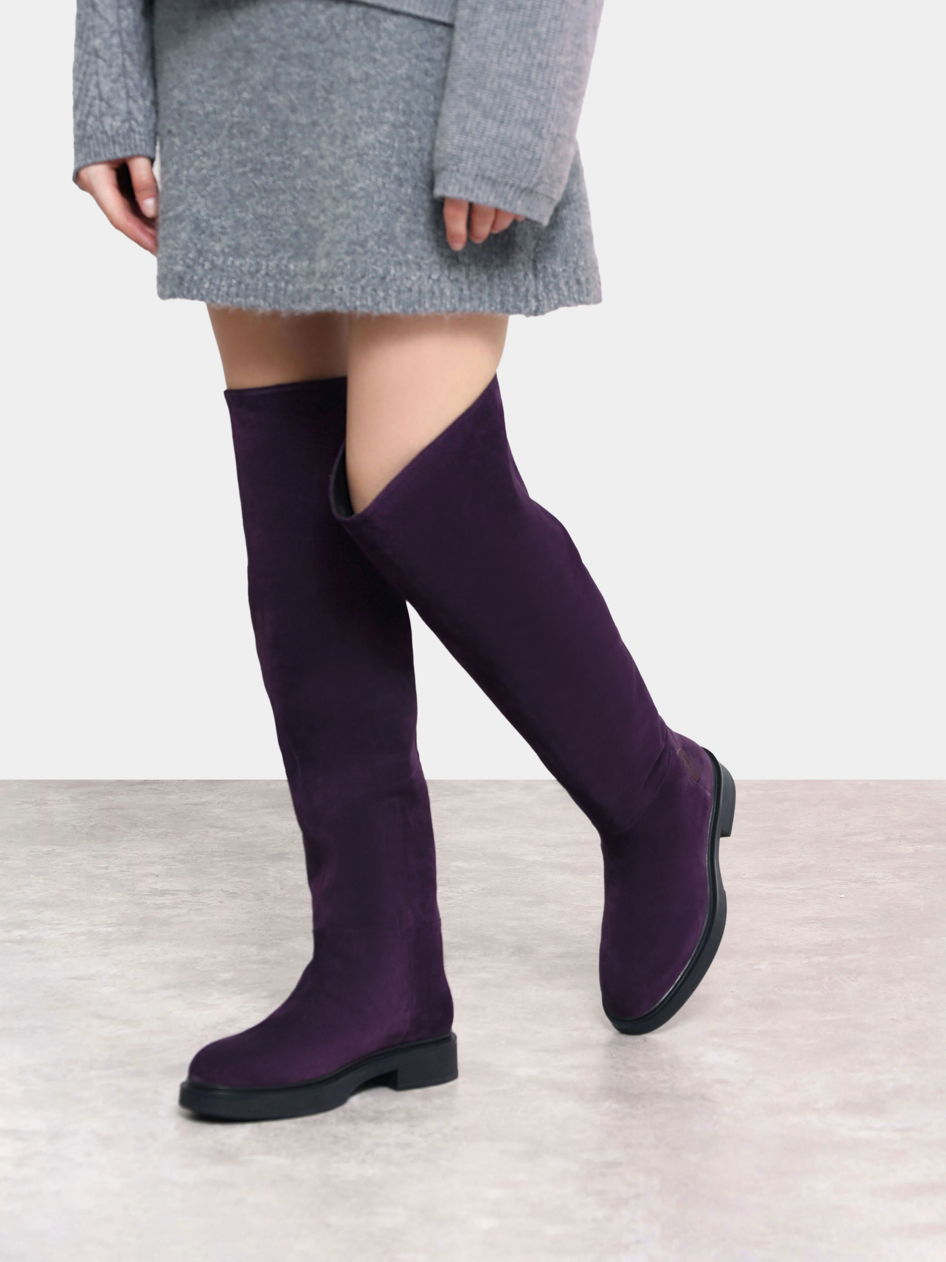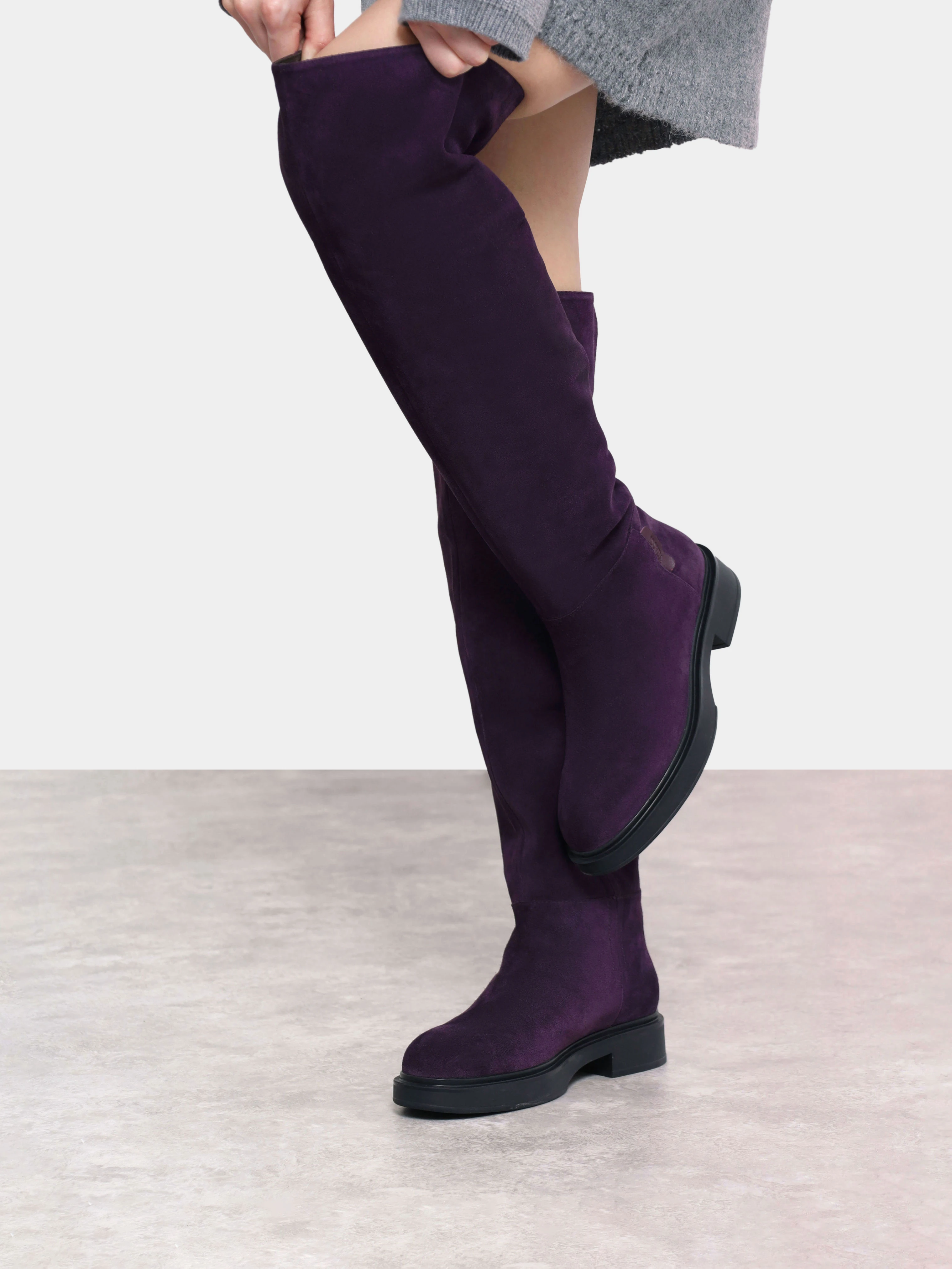 Ботфорты женские зимние, цвет бордовый, натуральный спилок