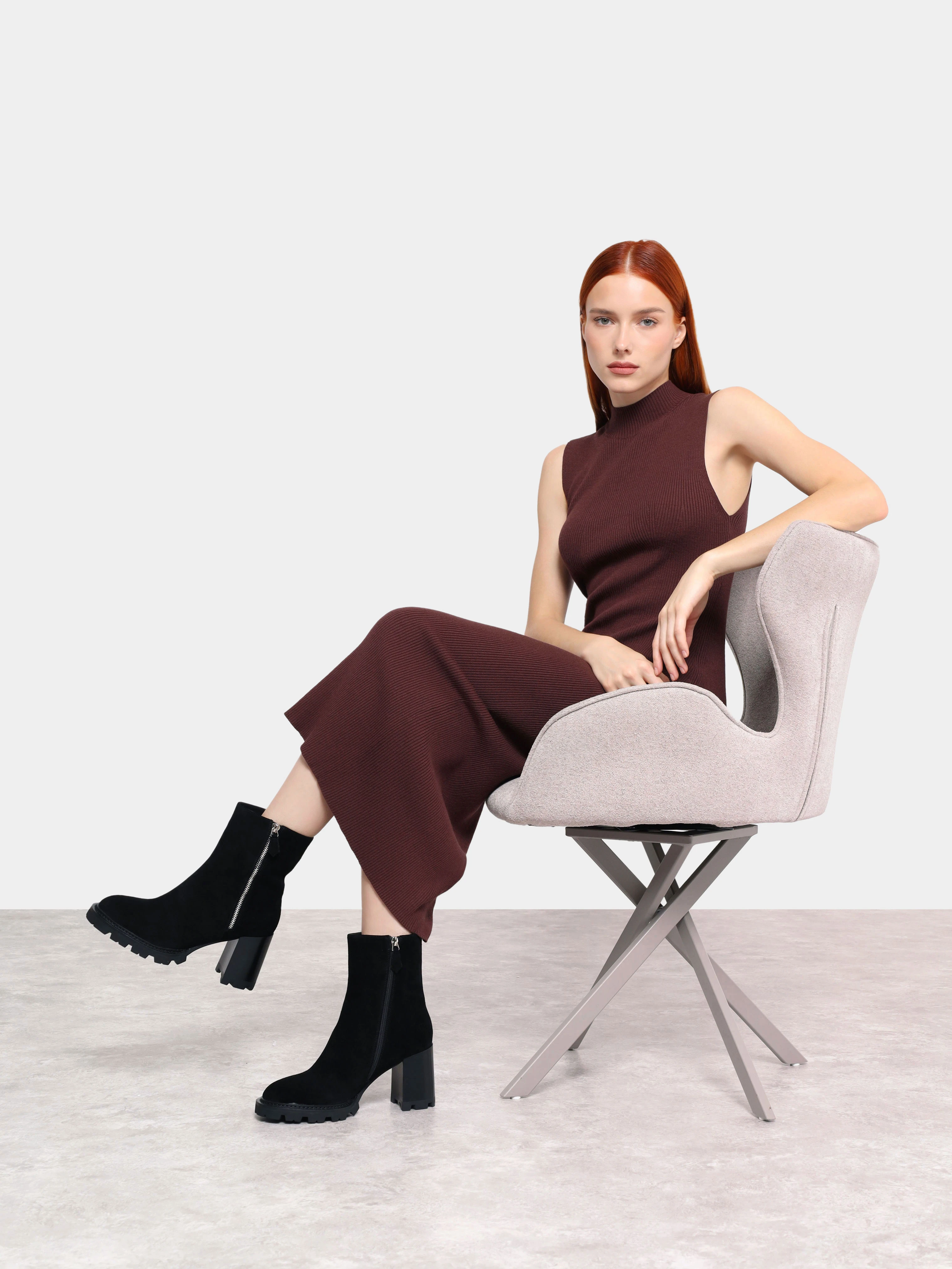 Полусапоги женские зимние, цвет черный, натуральный велюр