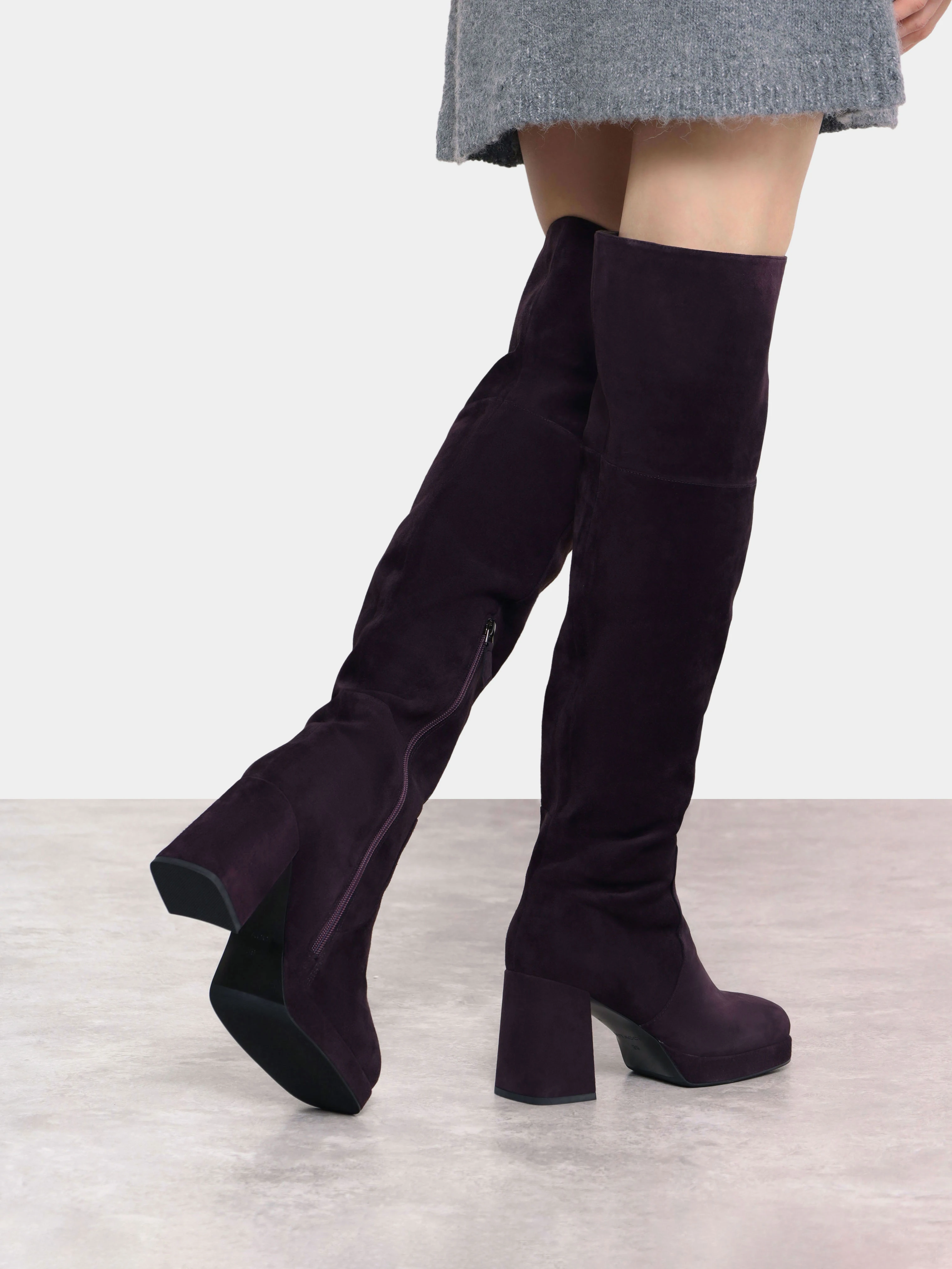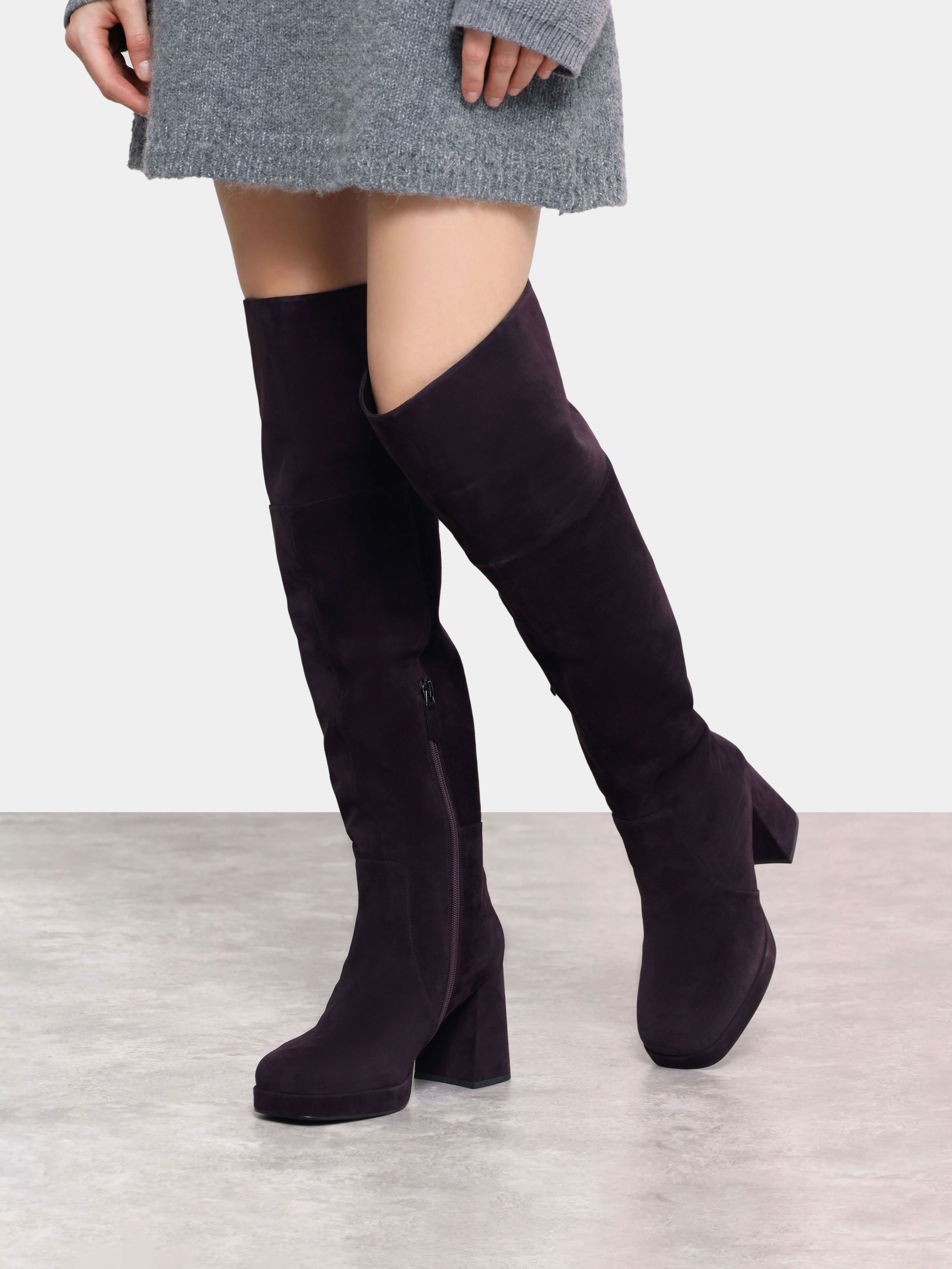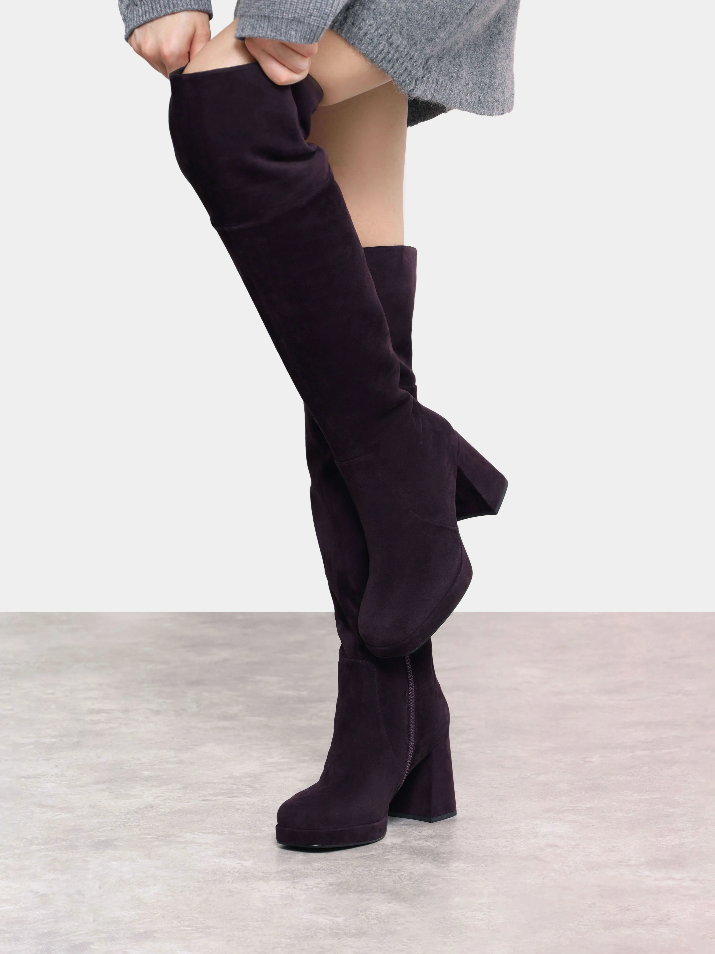 Сапоги женские зимние, цвет фиолетовый, натуральный велюр