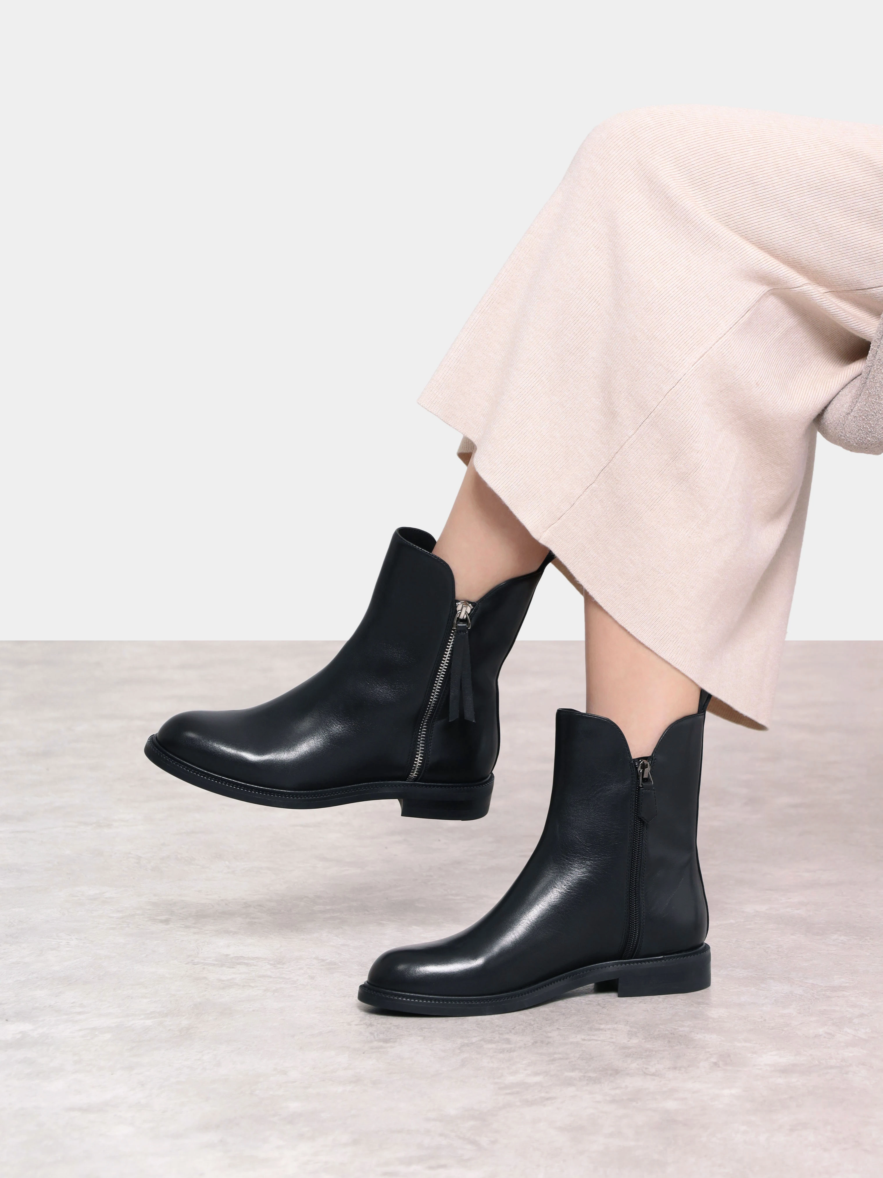 Полусапоги женские демисезонные, цвет черный, натуральная кожа