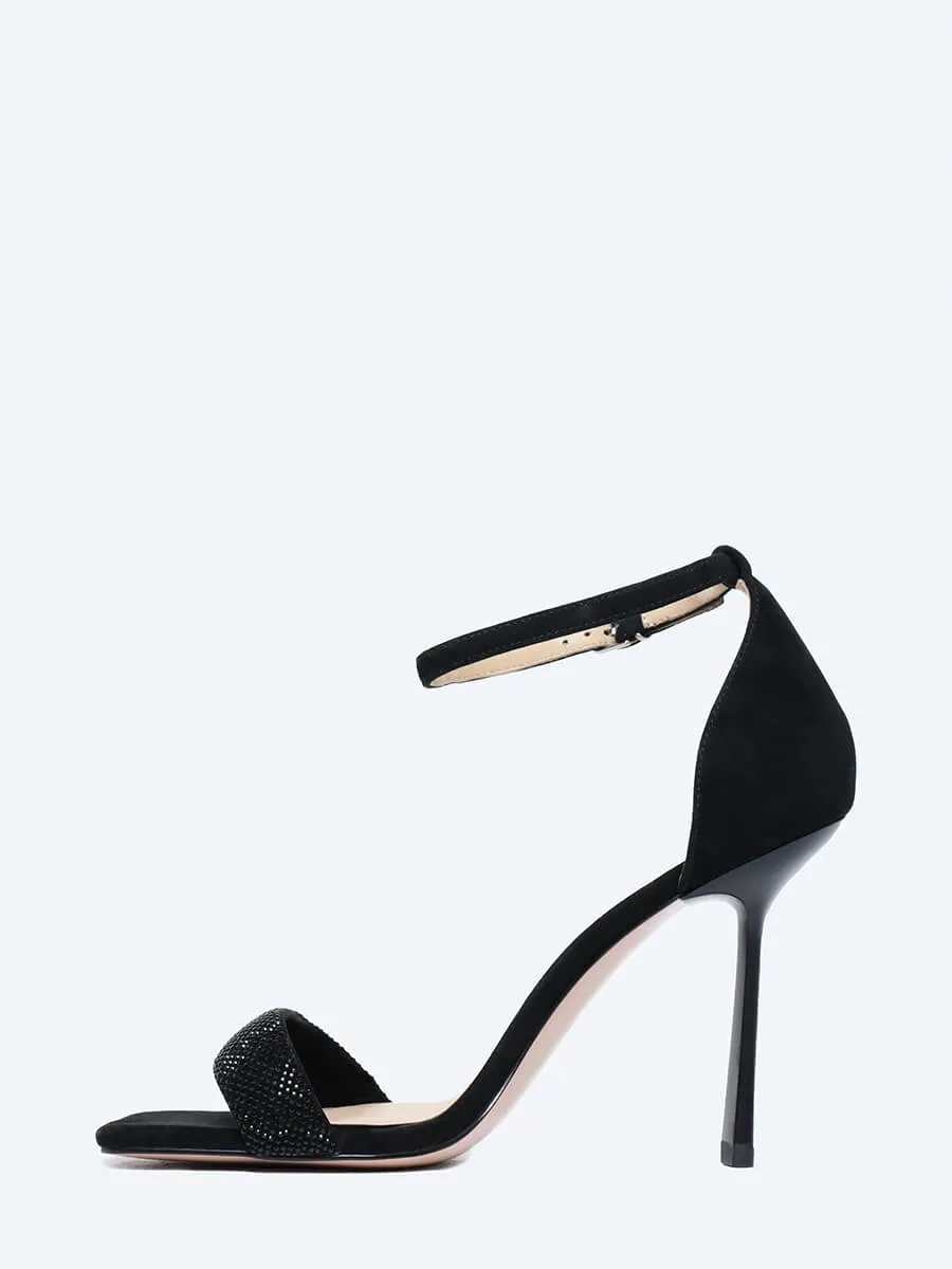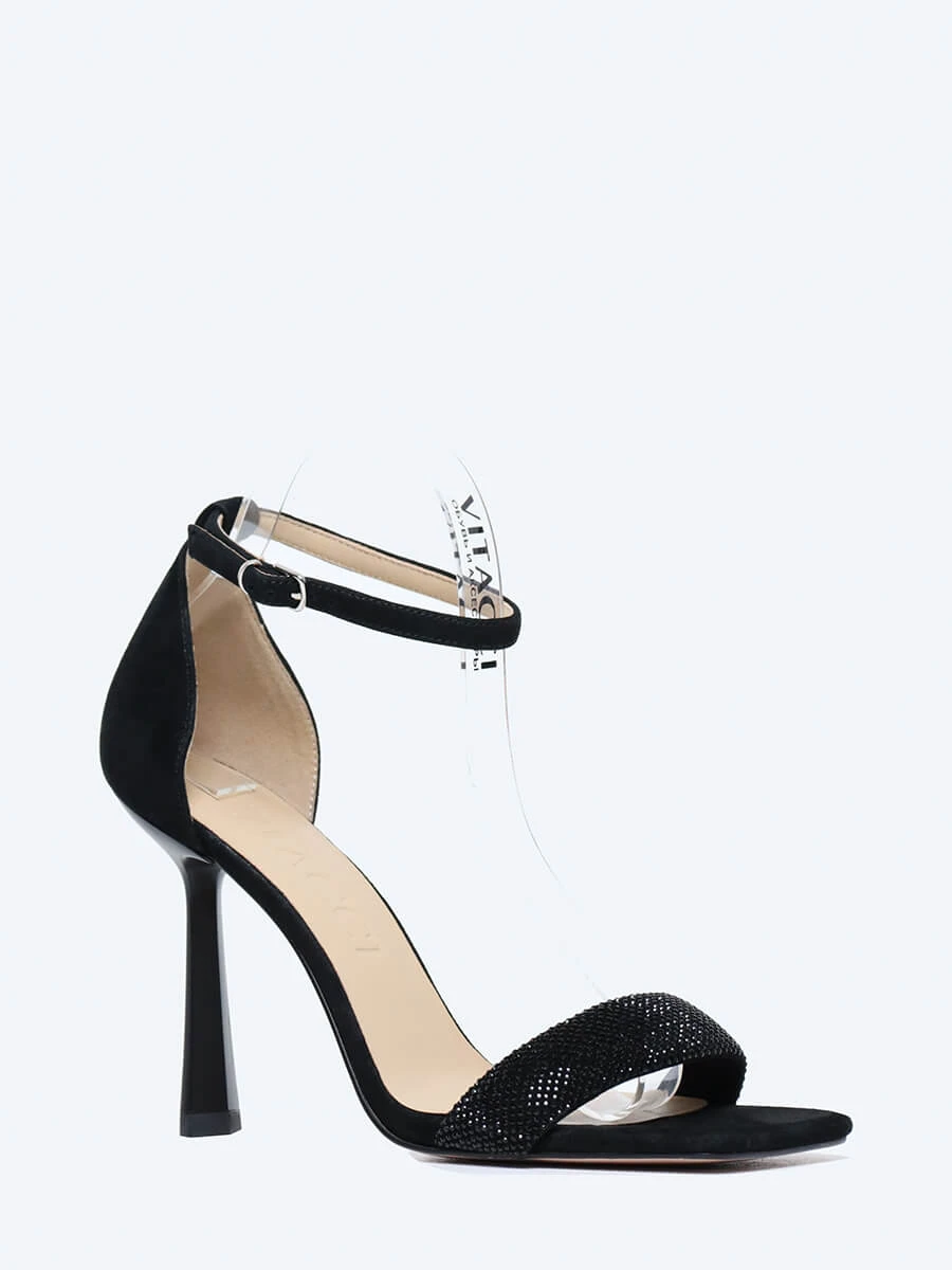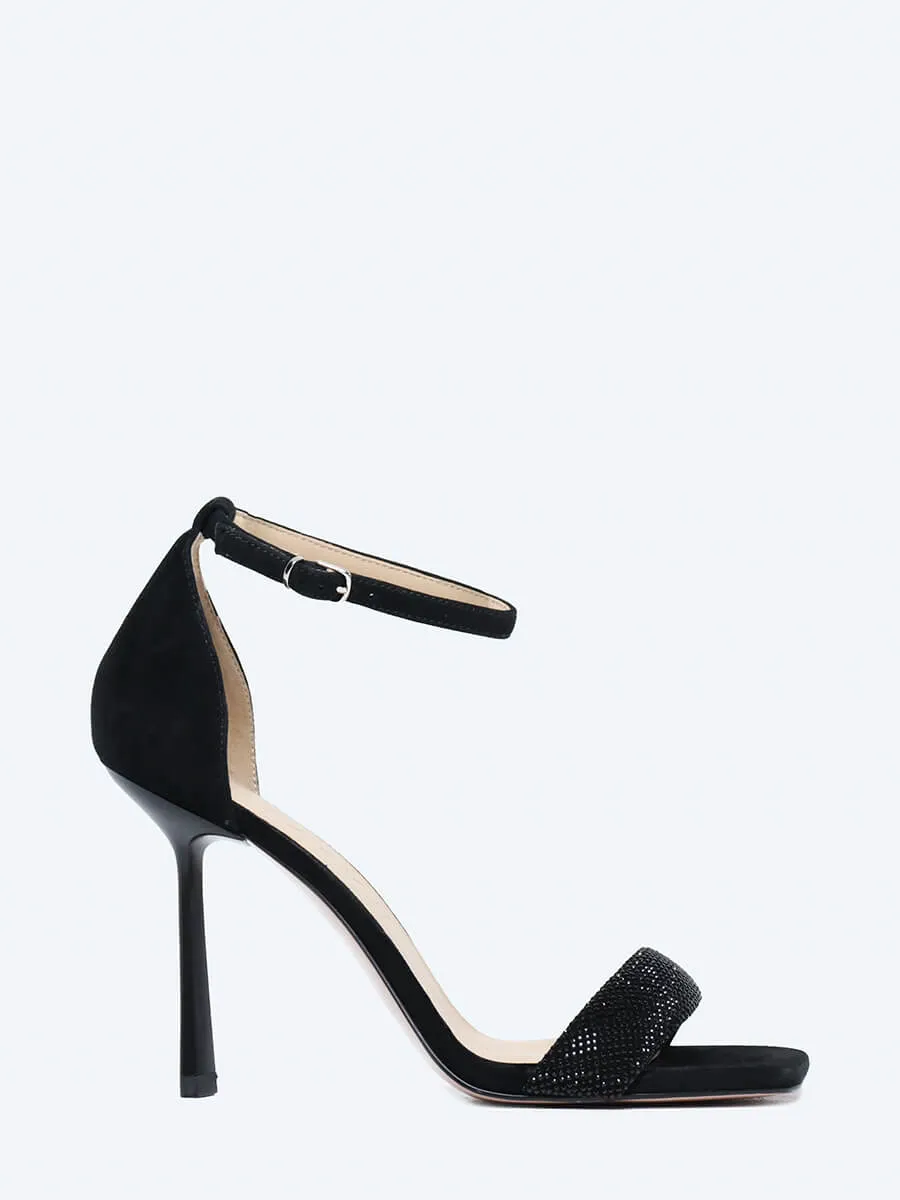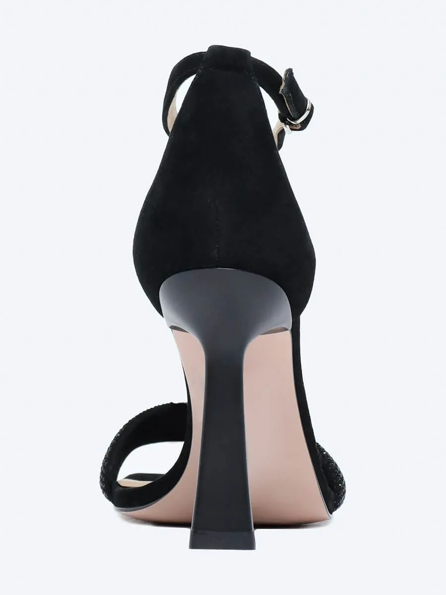 Босоножки женские летние, цвет черный, натуральный велюр 1730703 | 1