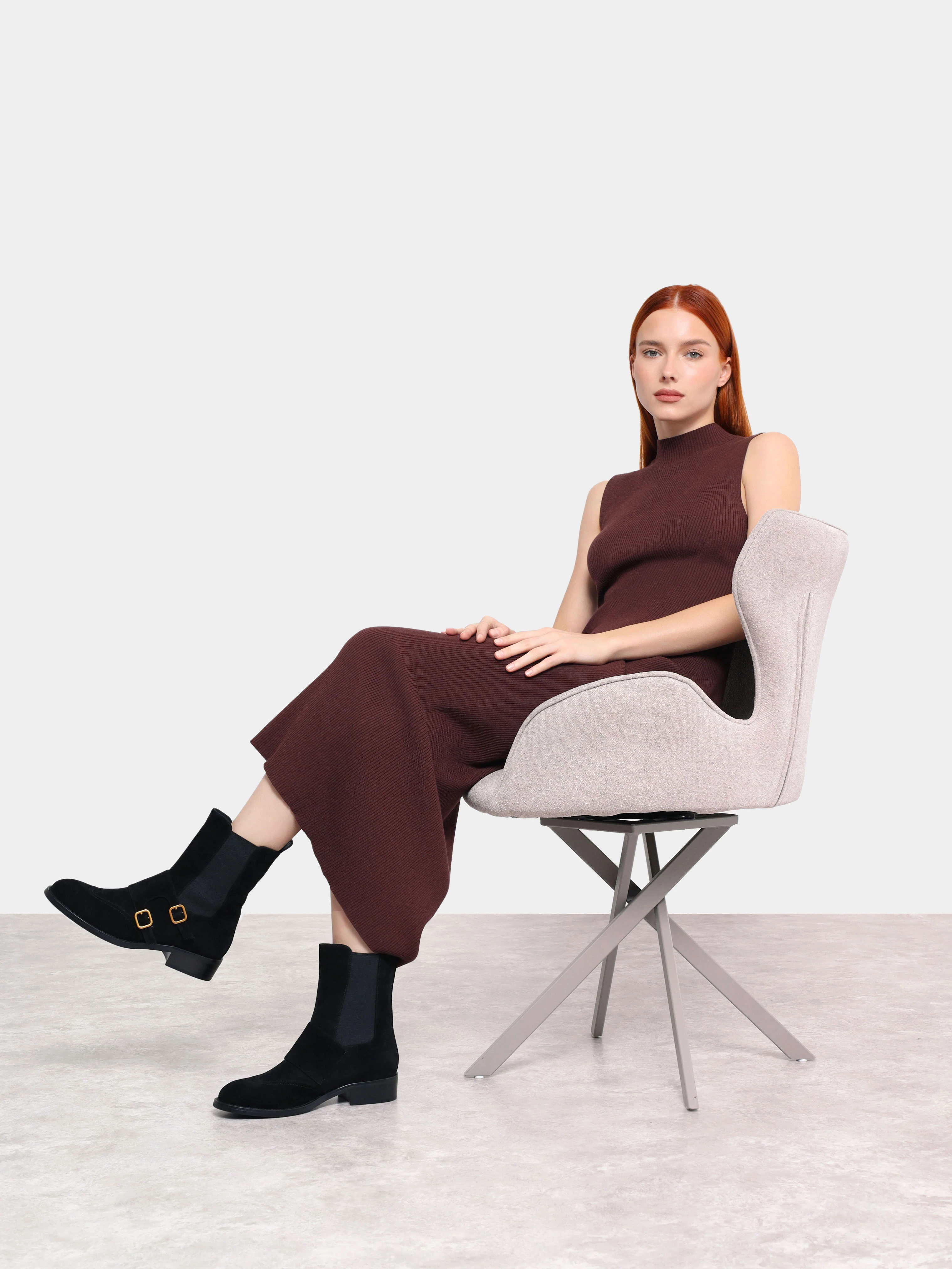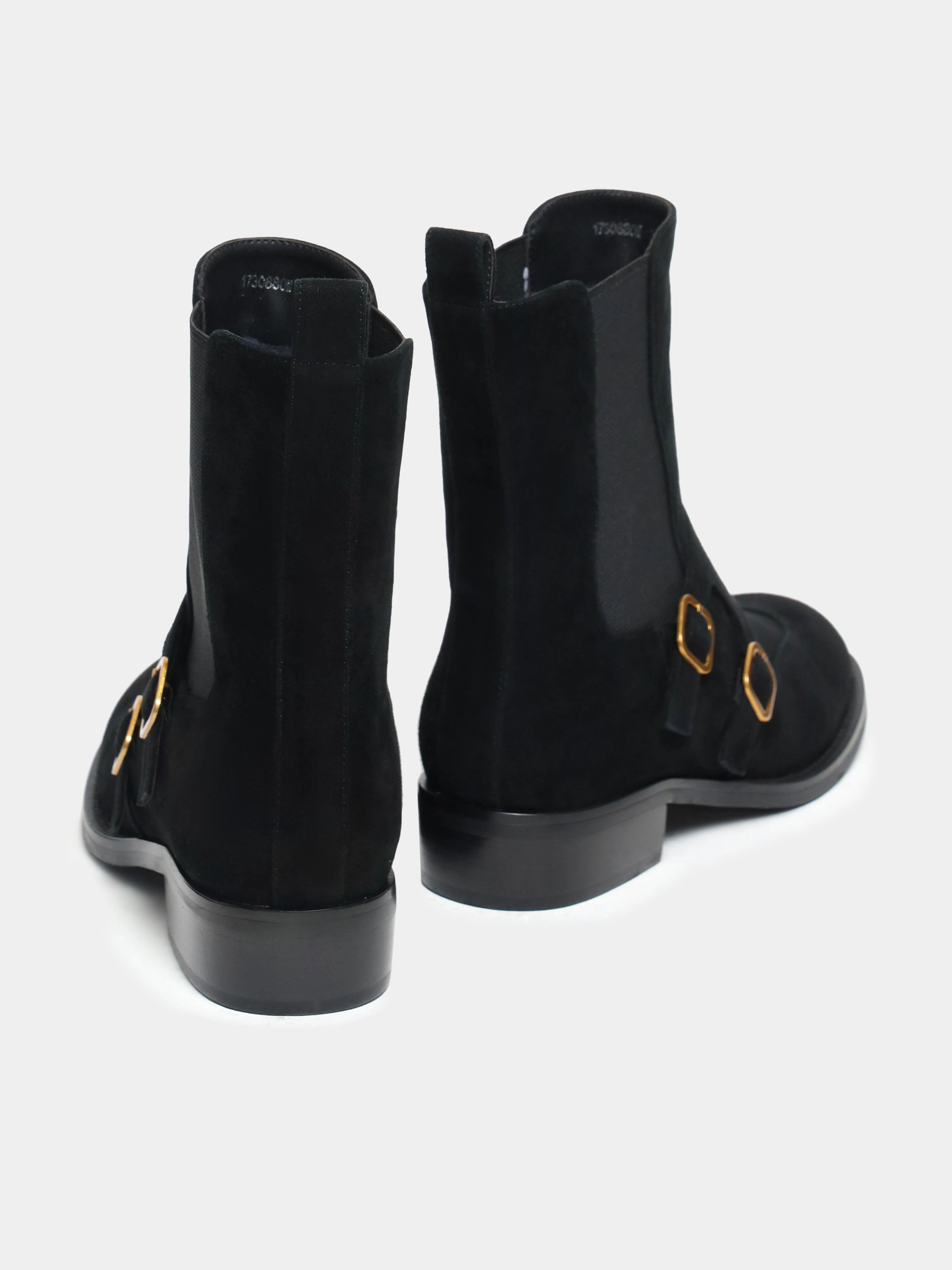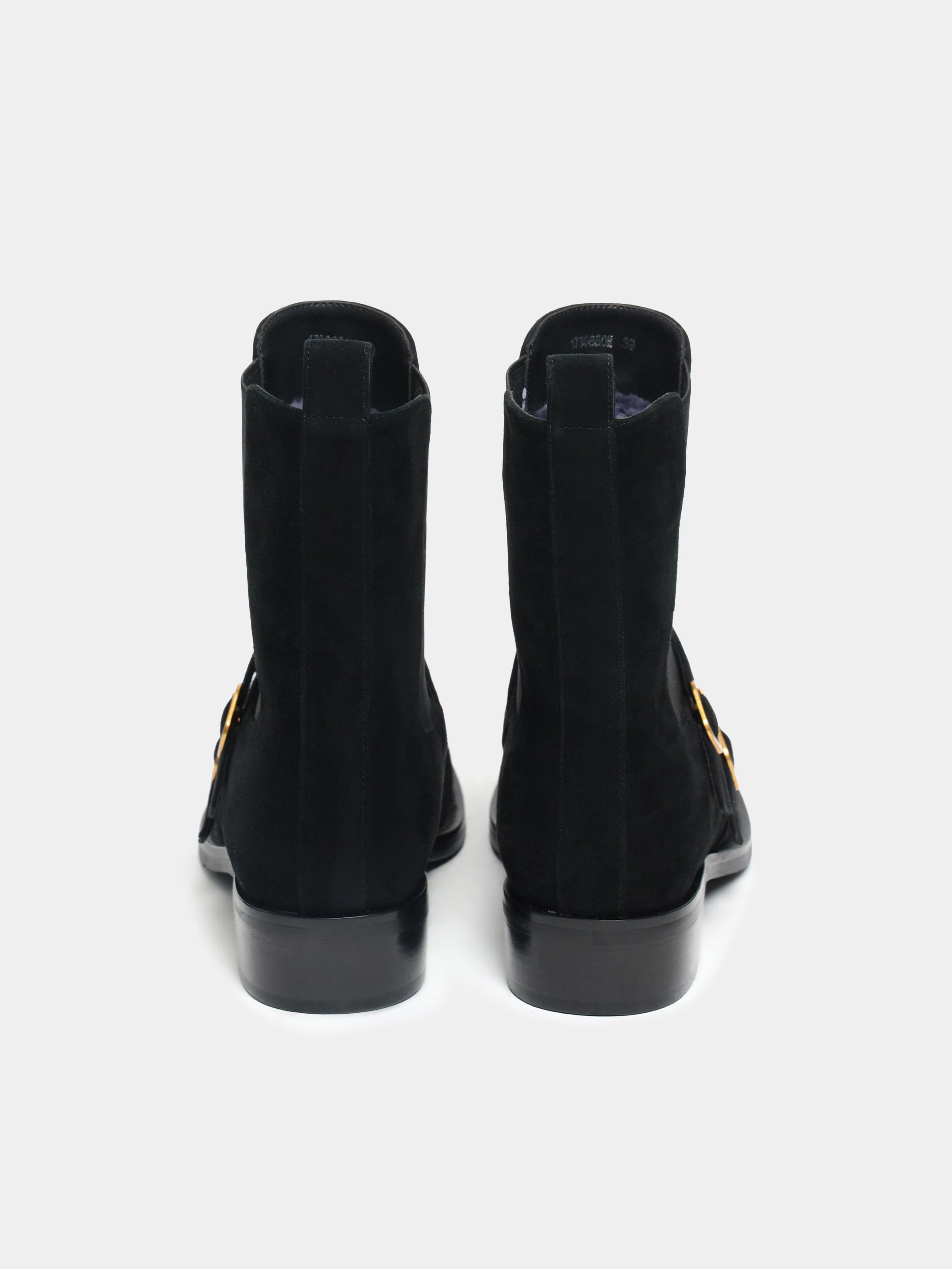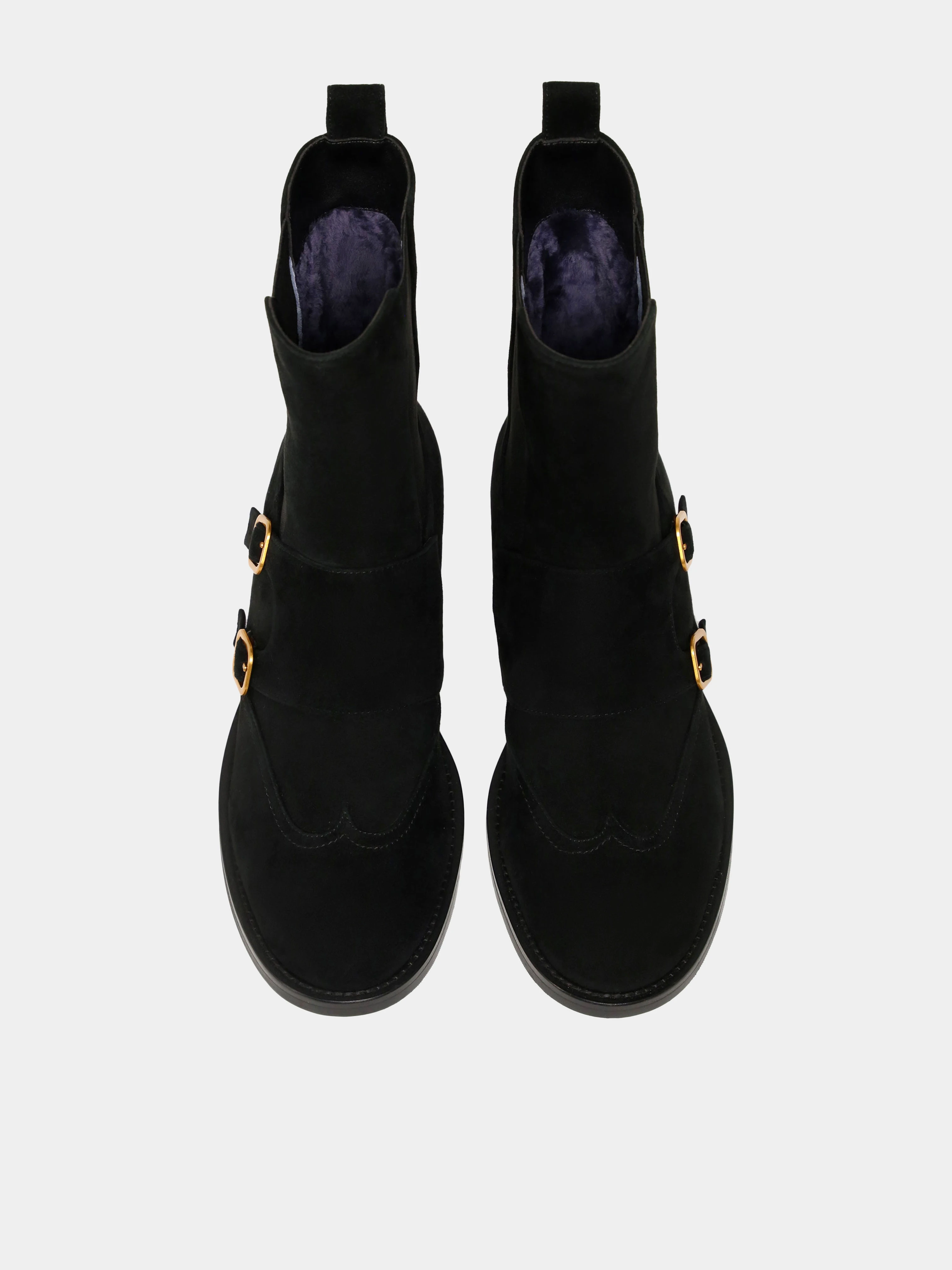Полусапоги женские зимние, цвет черный, натуральный велюр
