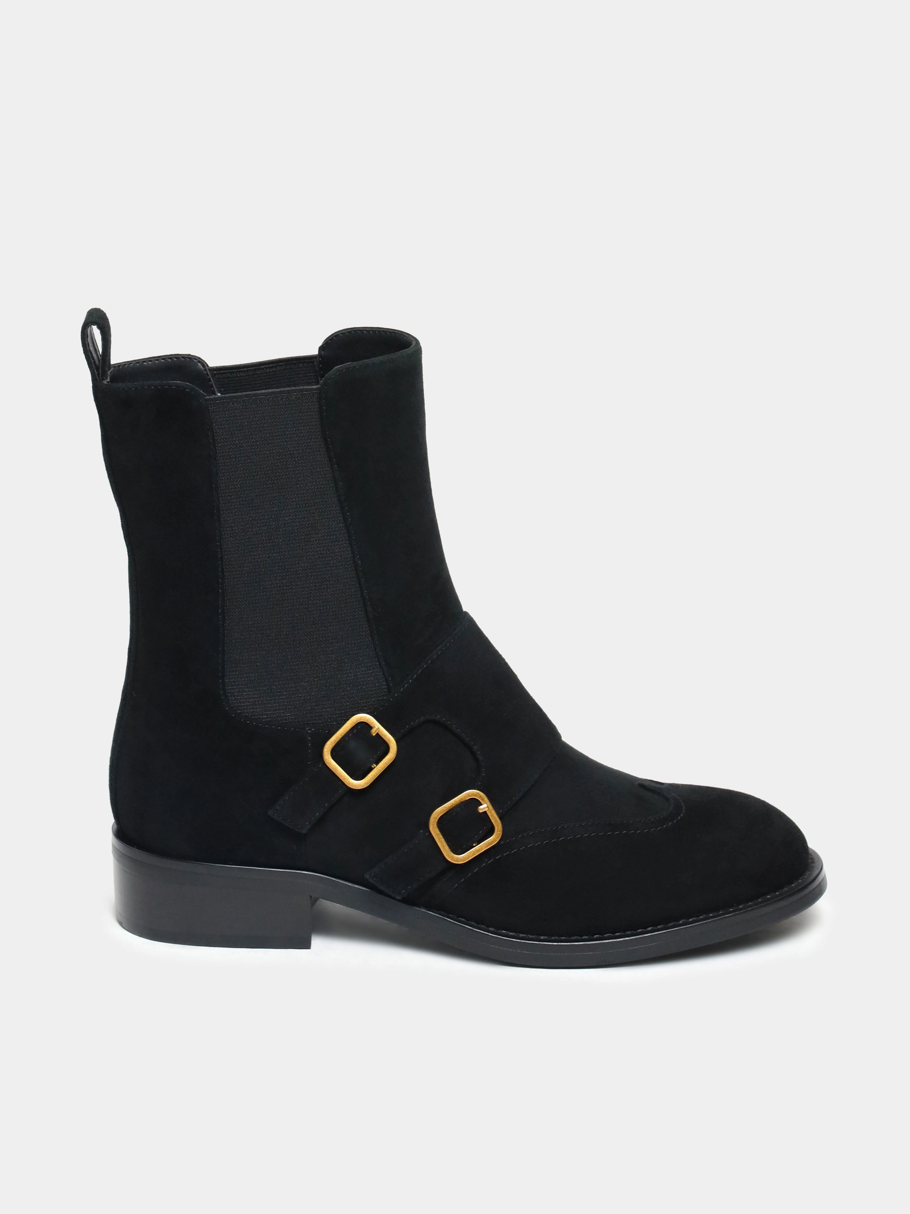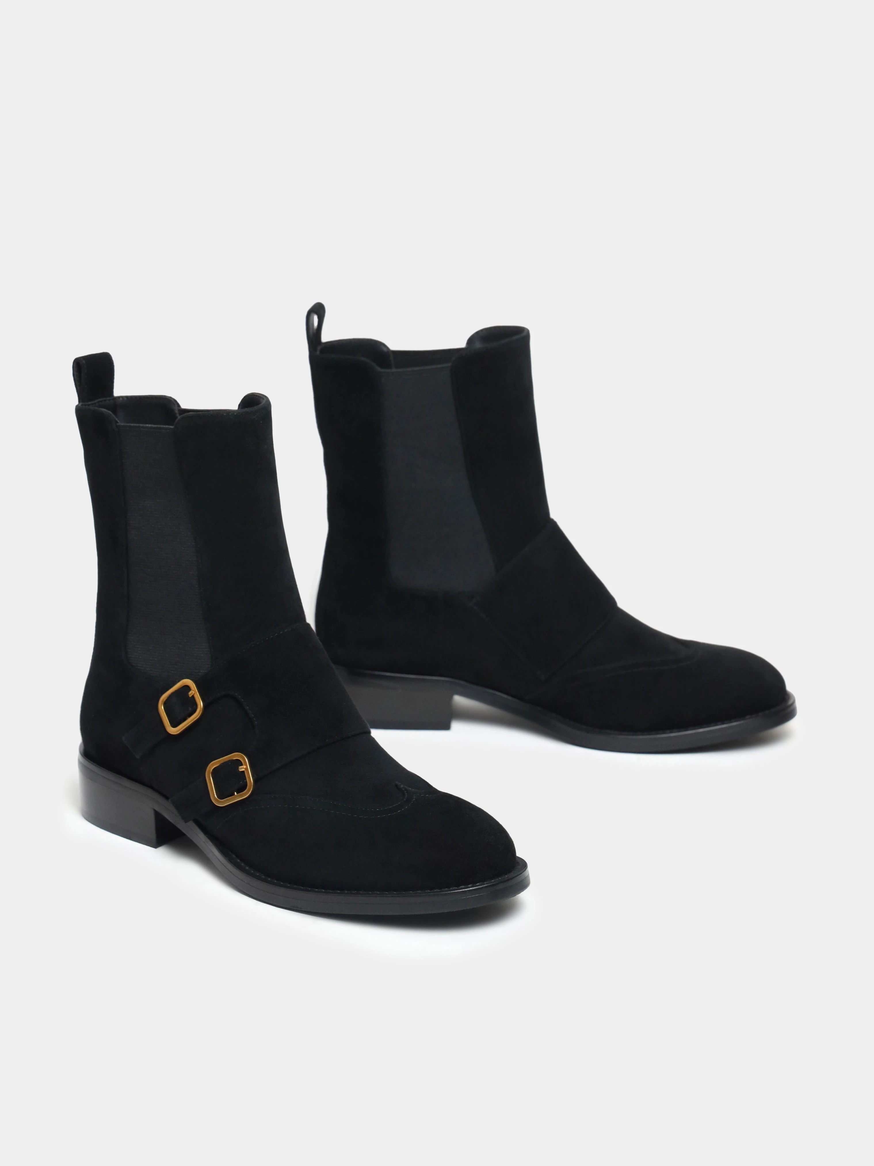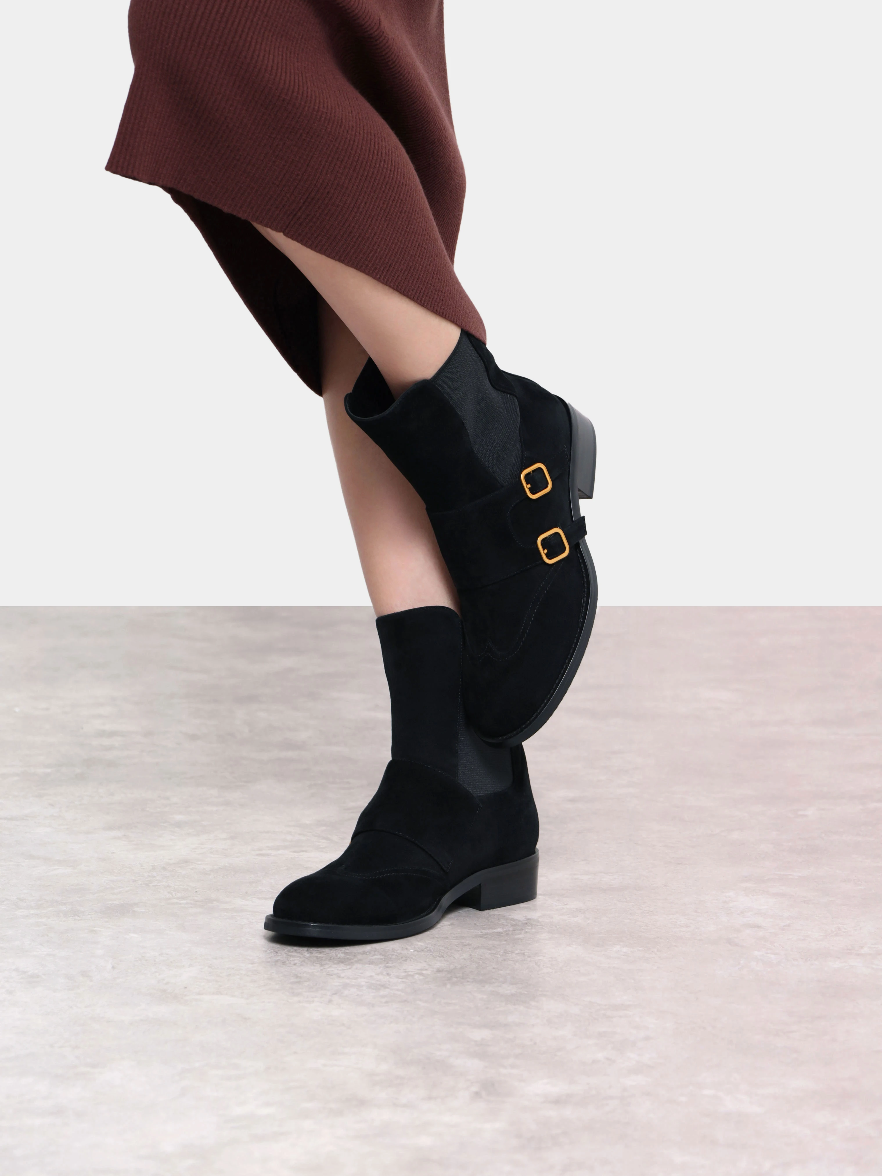 Полусапоги женские зимние, цвет черный, натуральный велюр