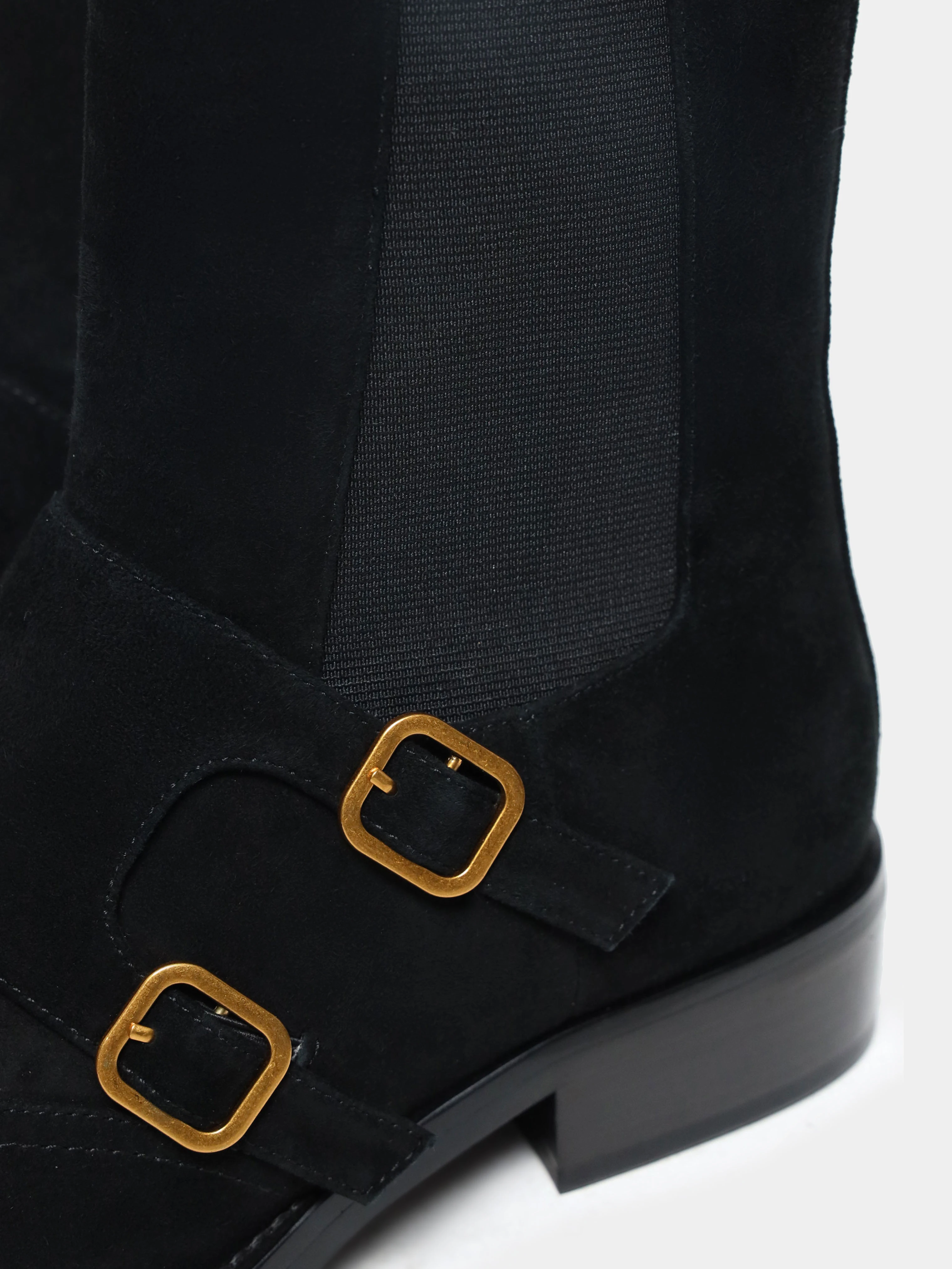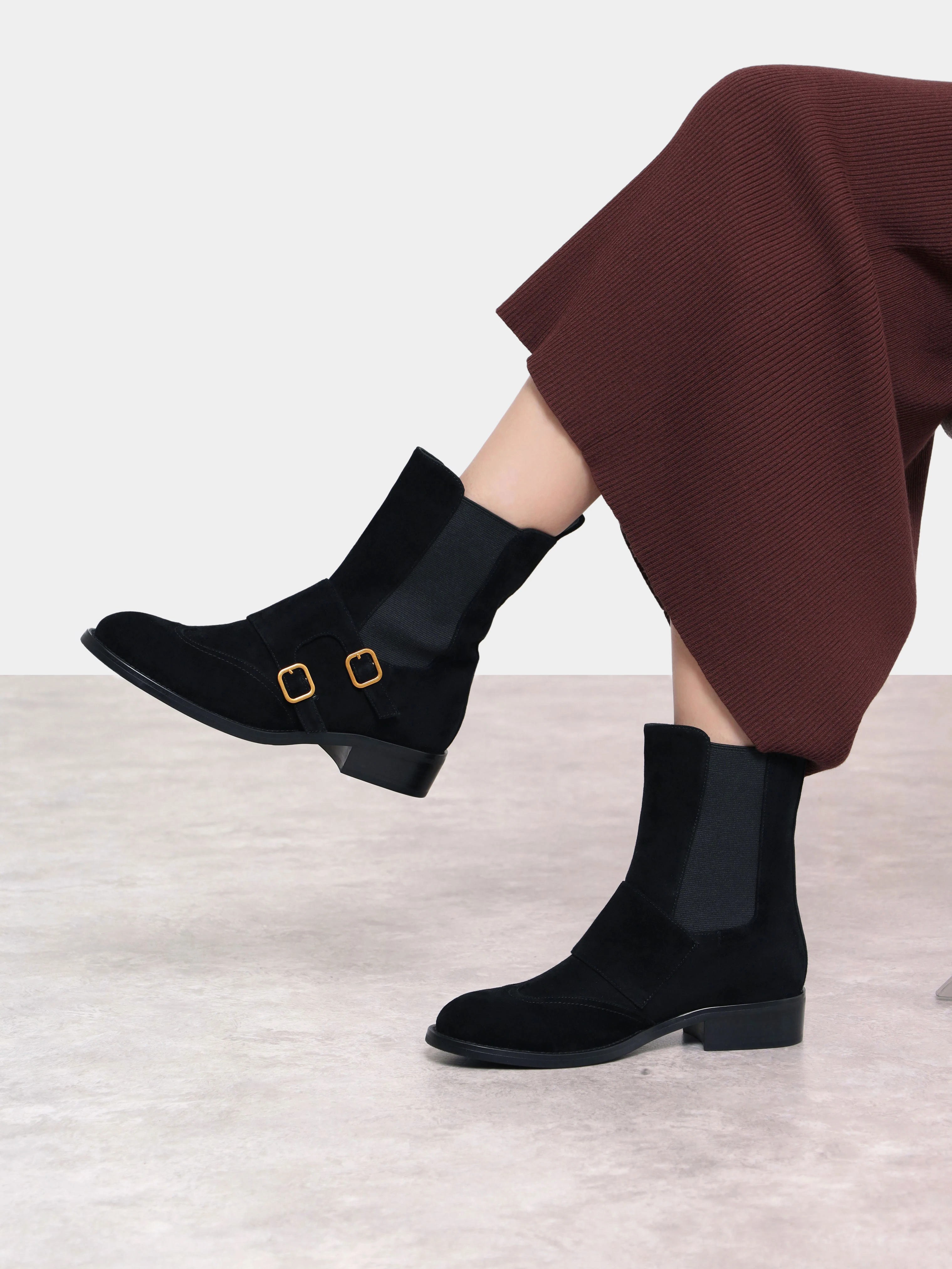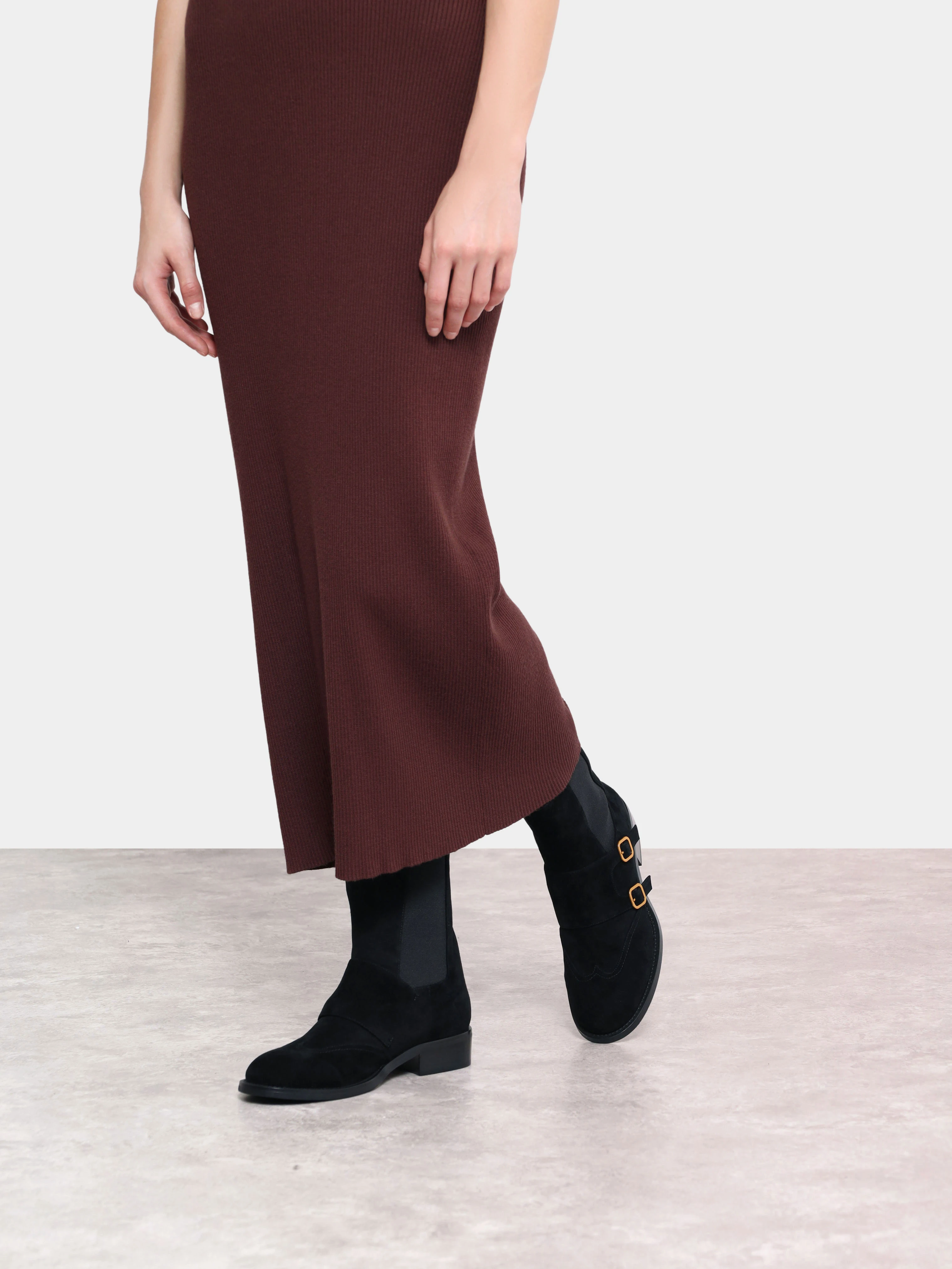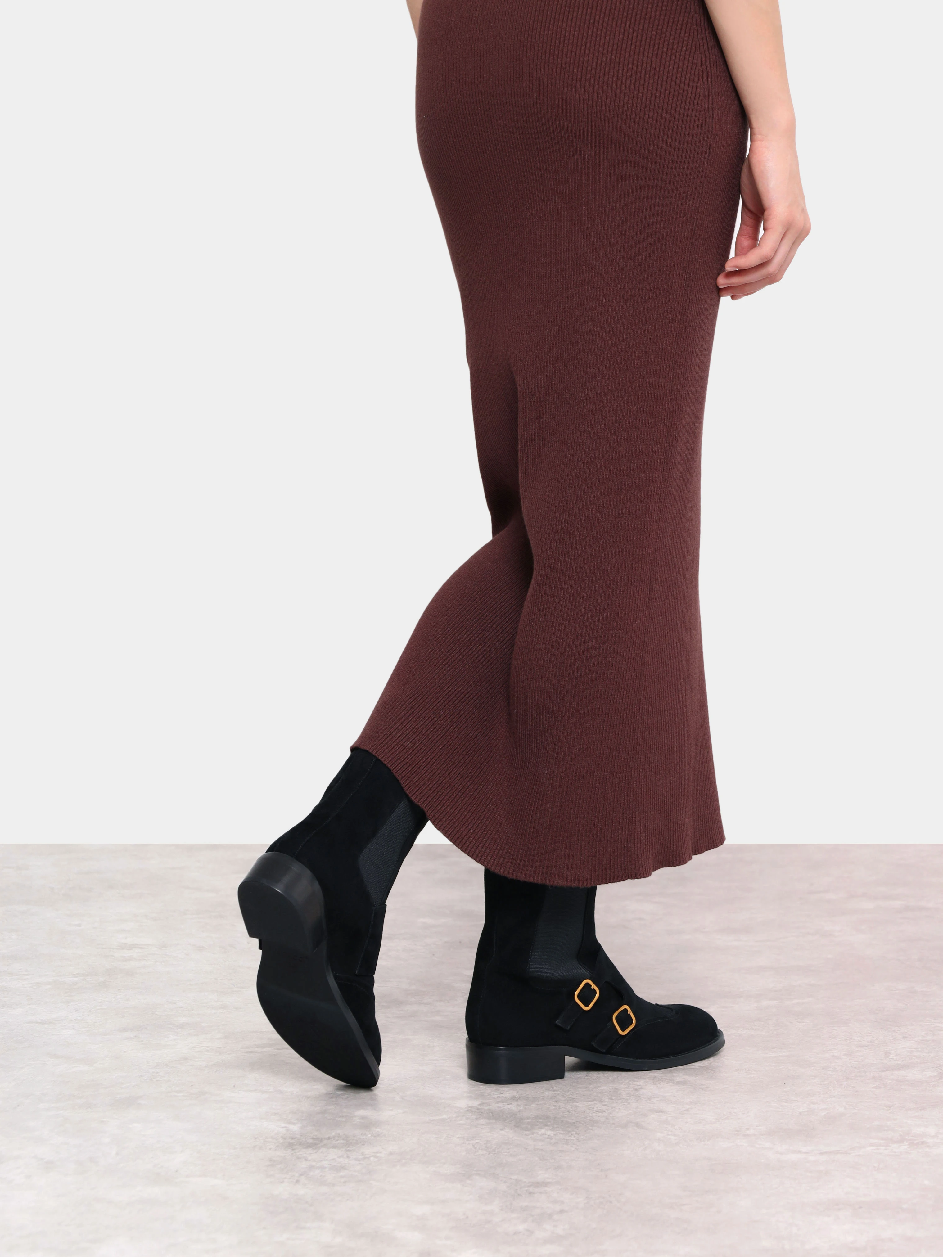 Полусапоги женские зимние, цвет черный, натуральный велюр