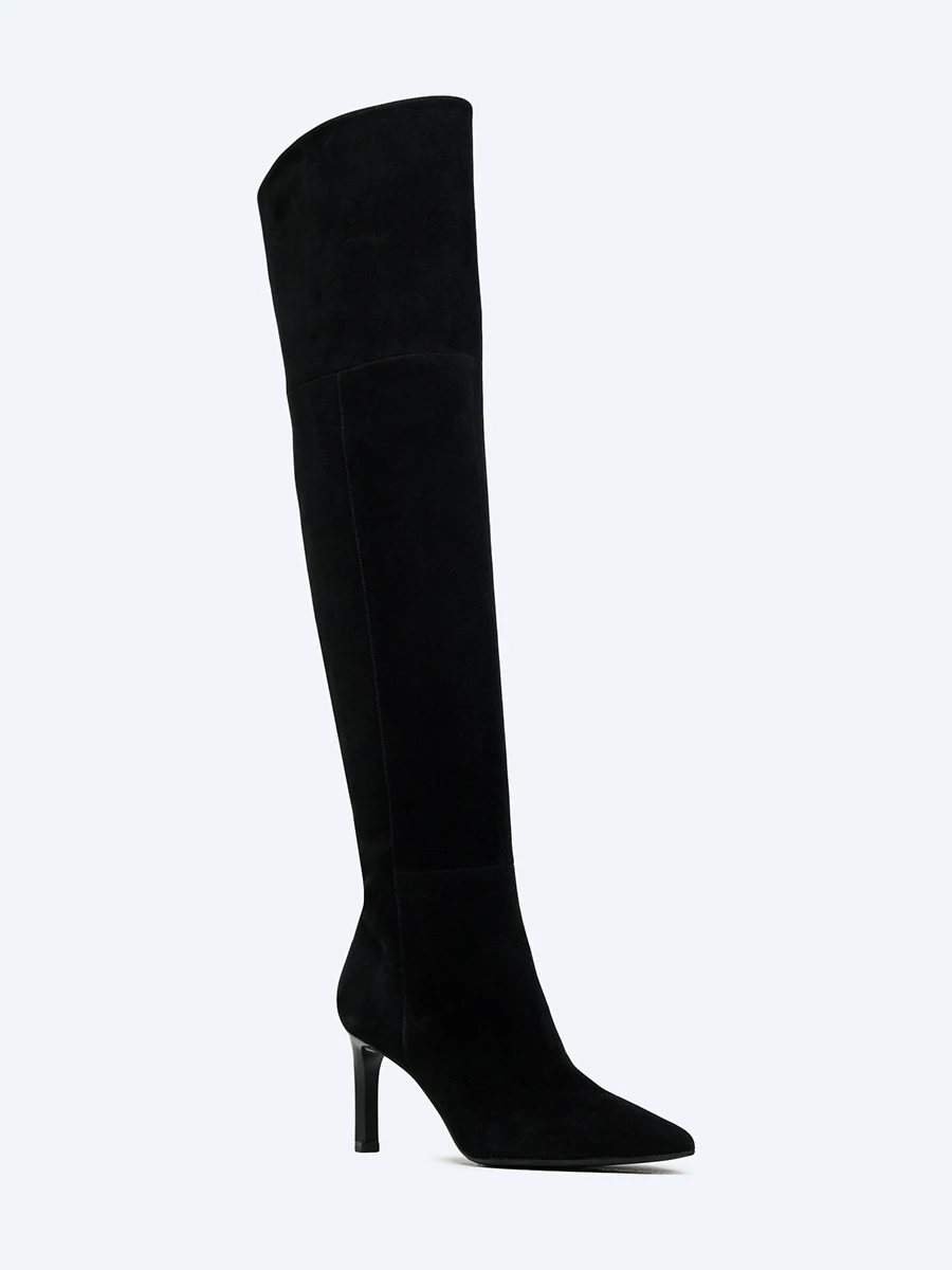 Ботфорты женские демисезонные, цвет черный, натуральный велюр