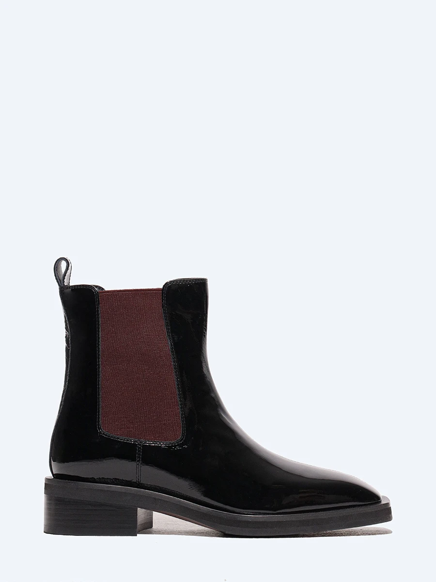 Полусапоги женские демисезонные, цвет черный, натуральная лаковая кожа