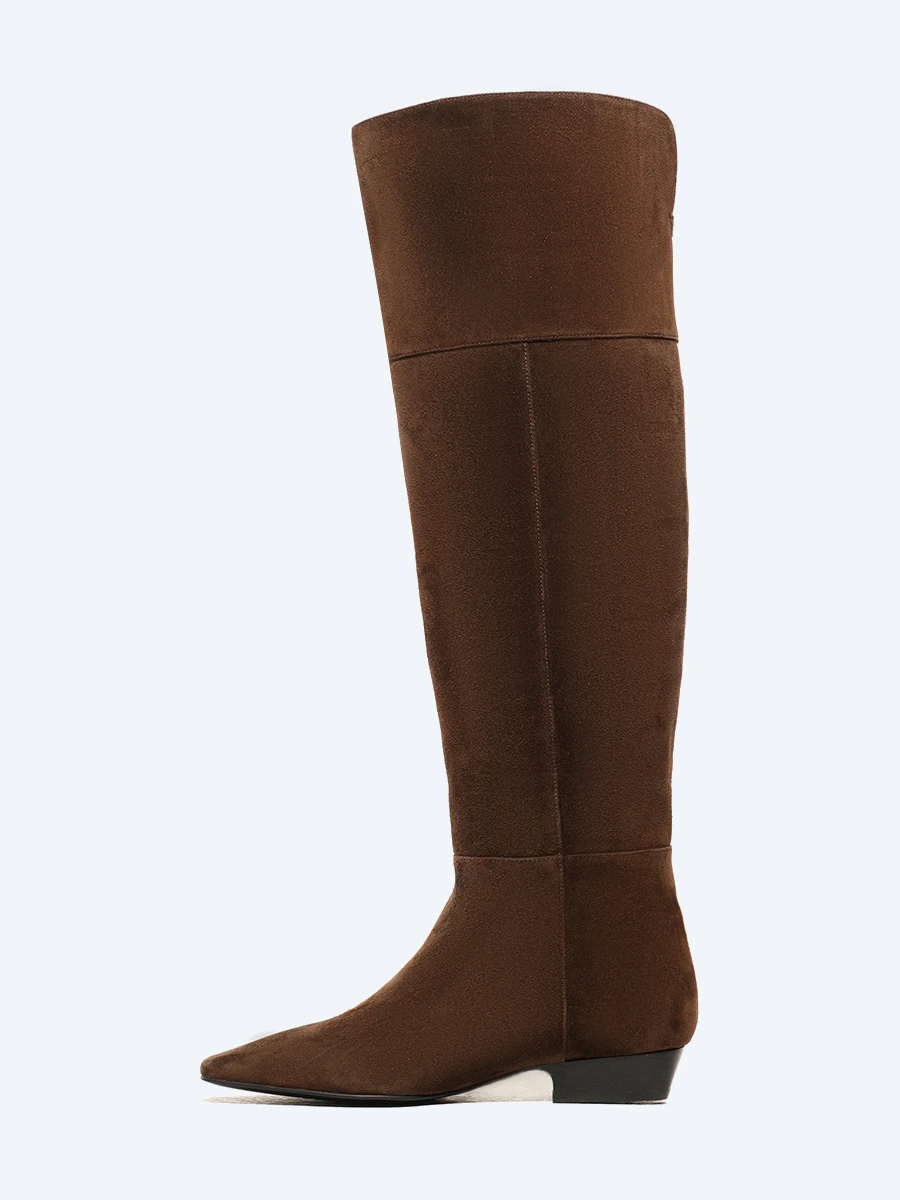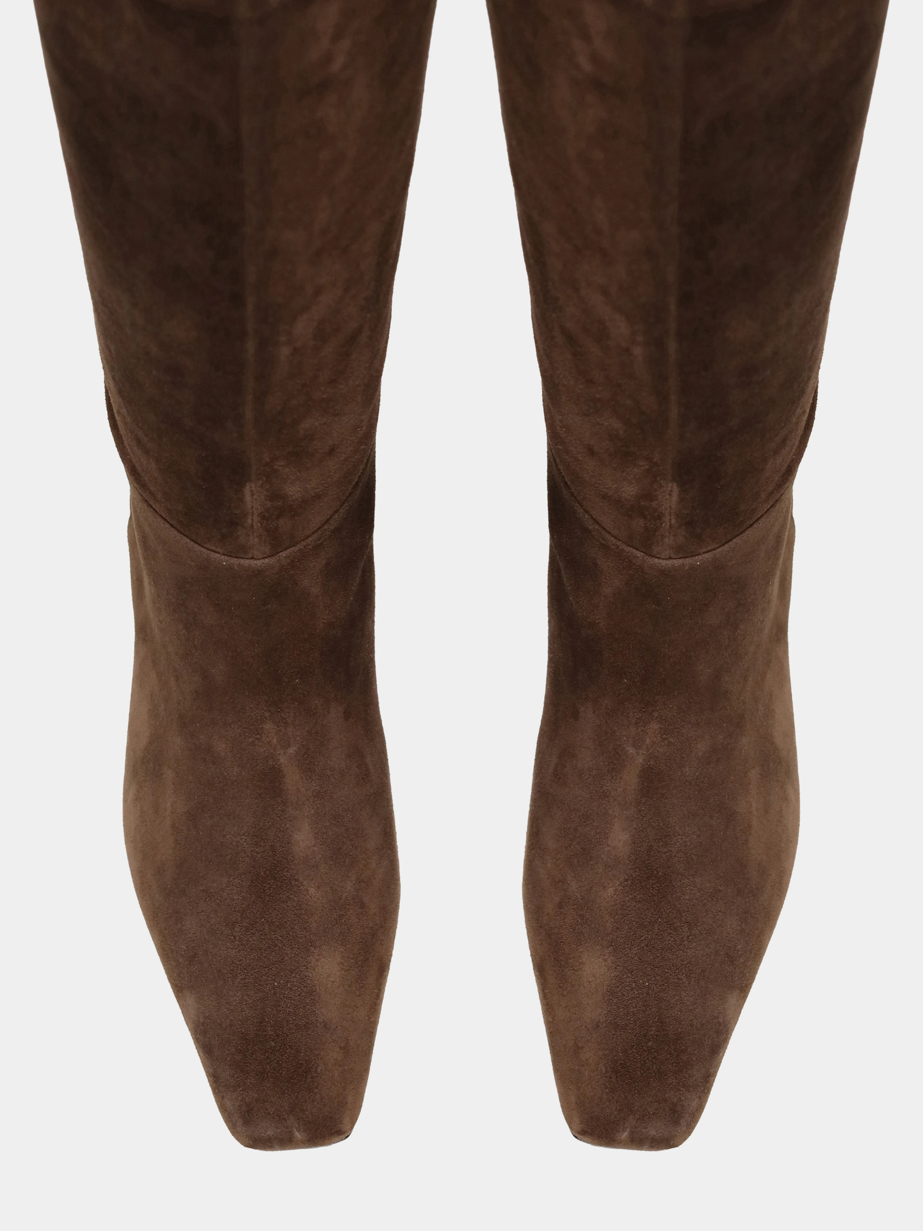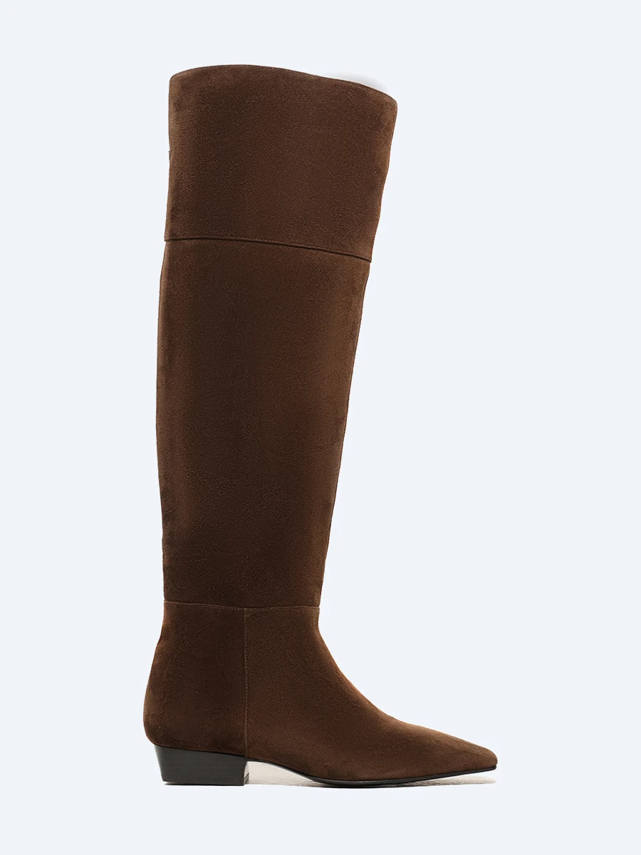 Ботфорты женские демисезонные, цвет коричневый, натуральный велюр