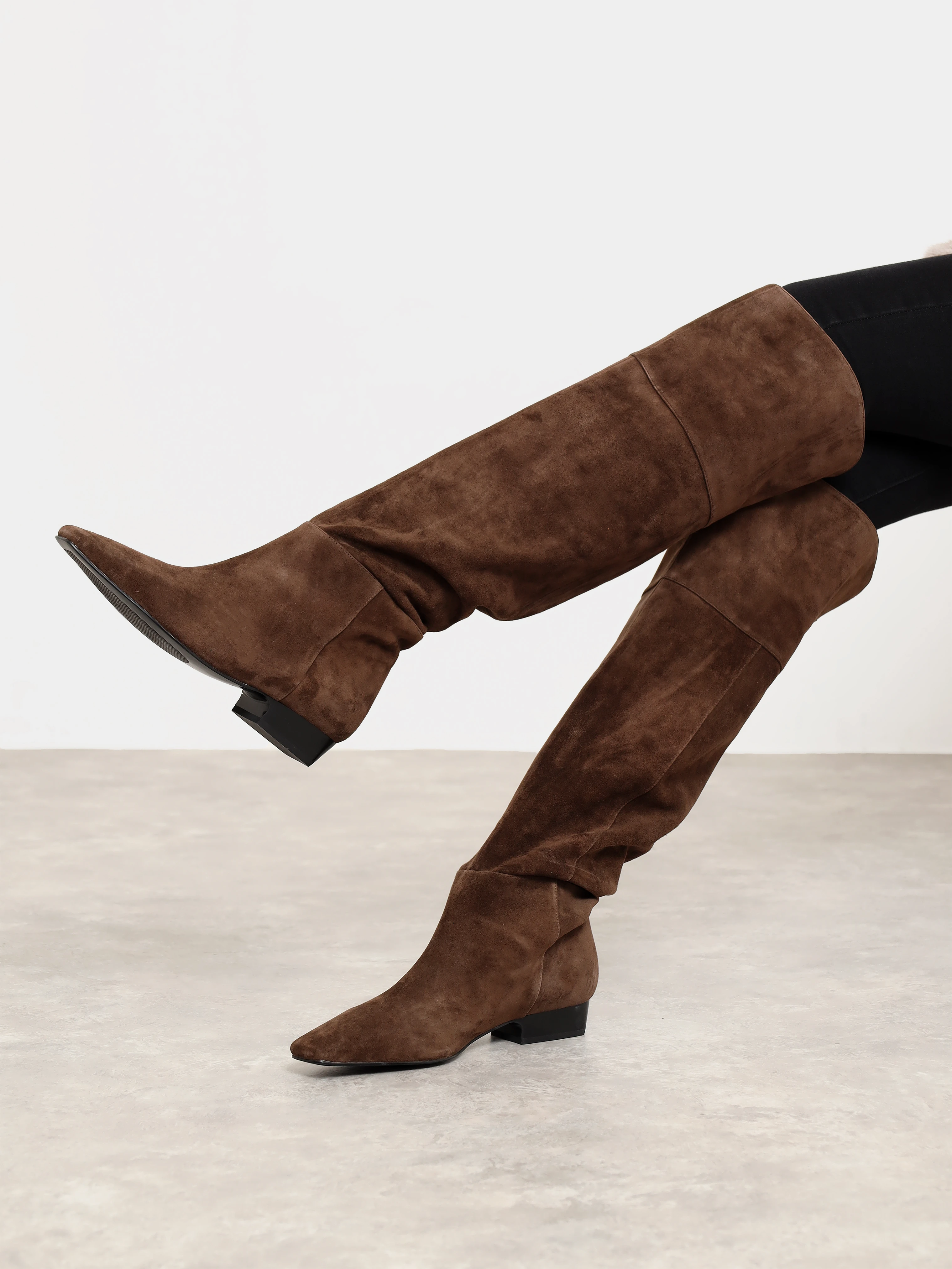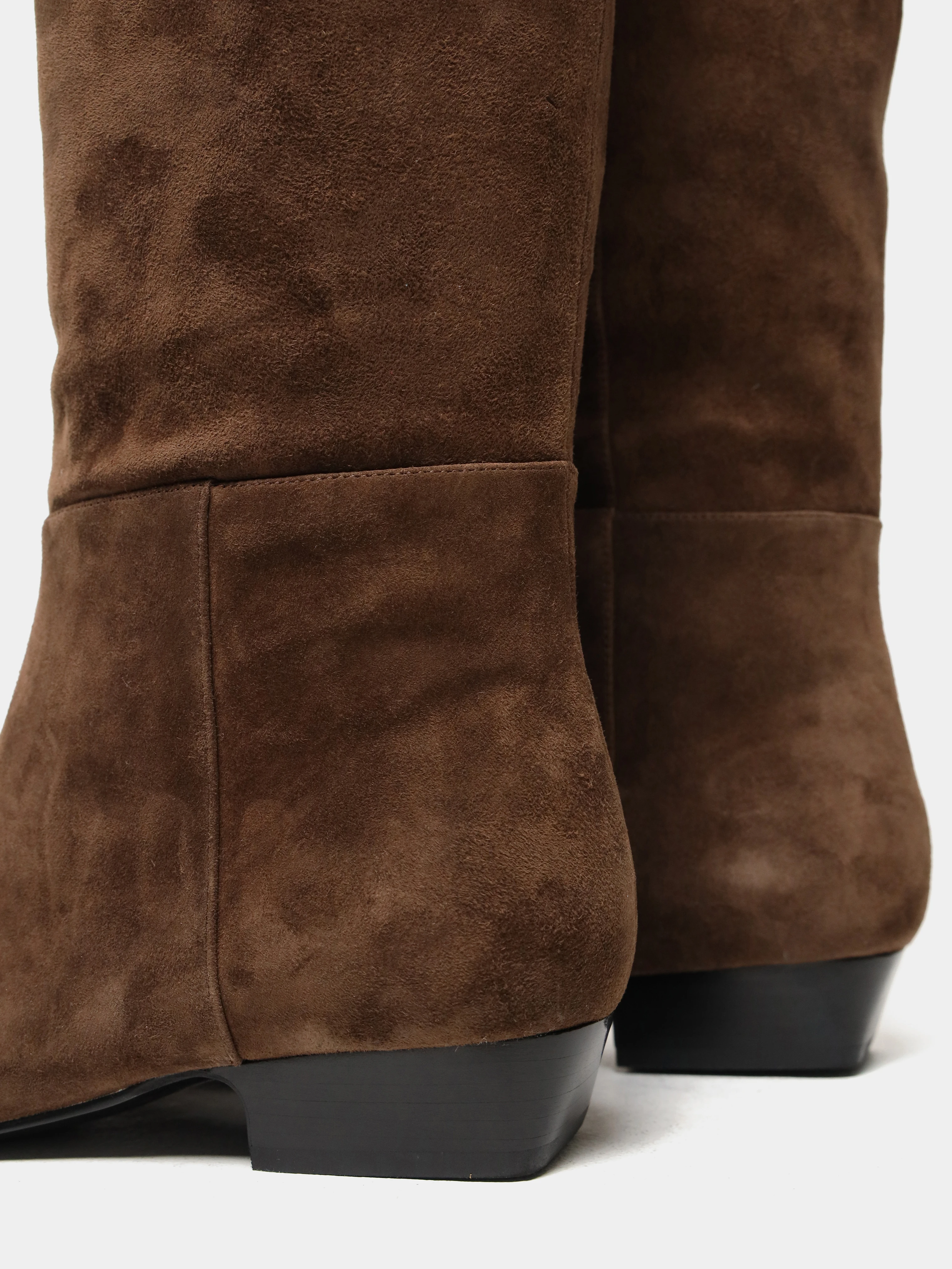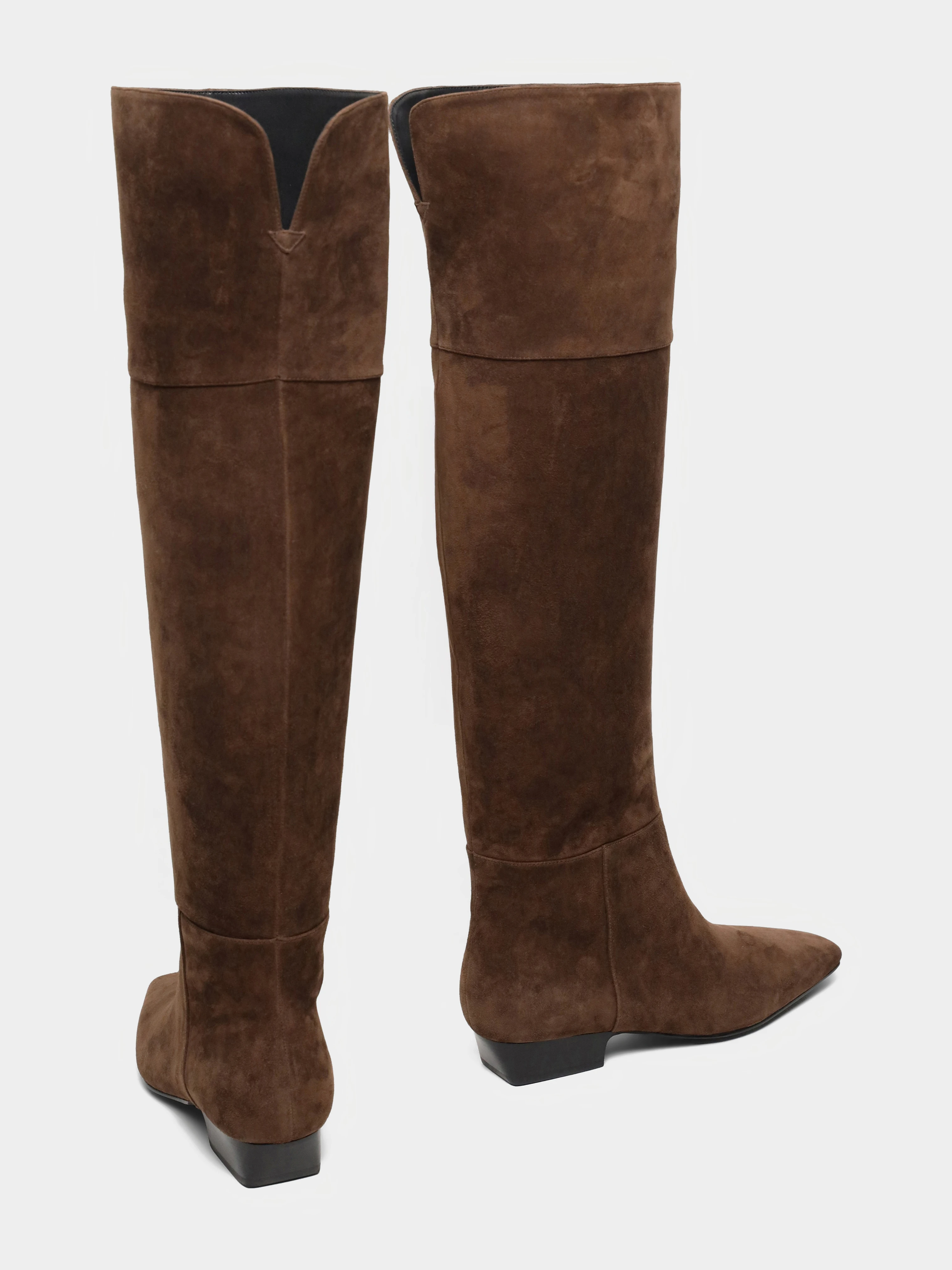 Ботфорты женские демисезонные, цвет коричневый, натуральный велюр