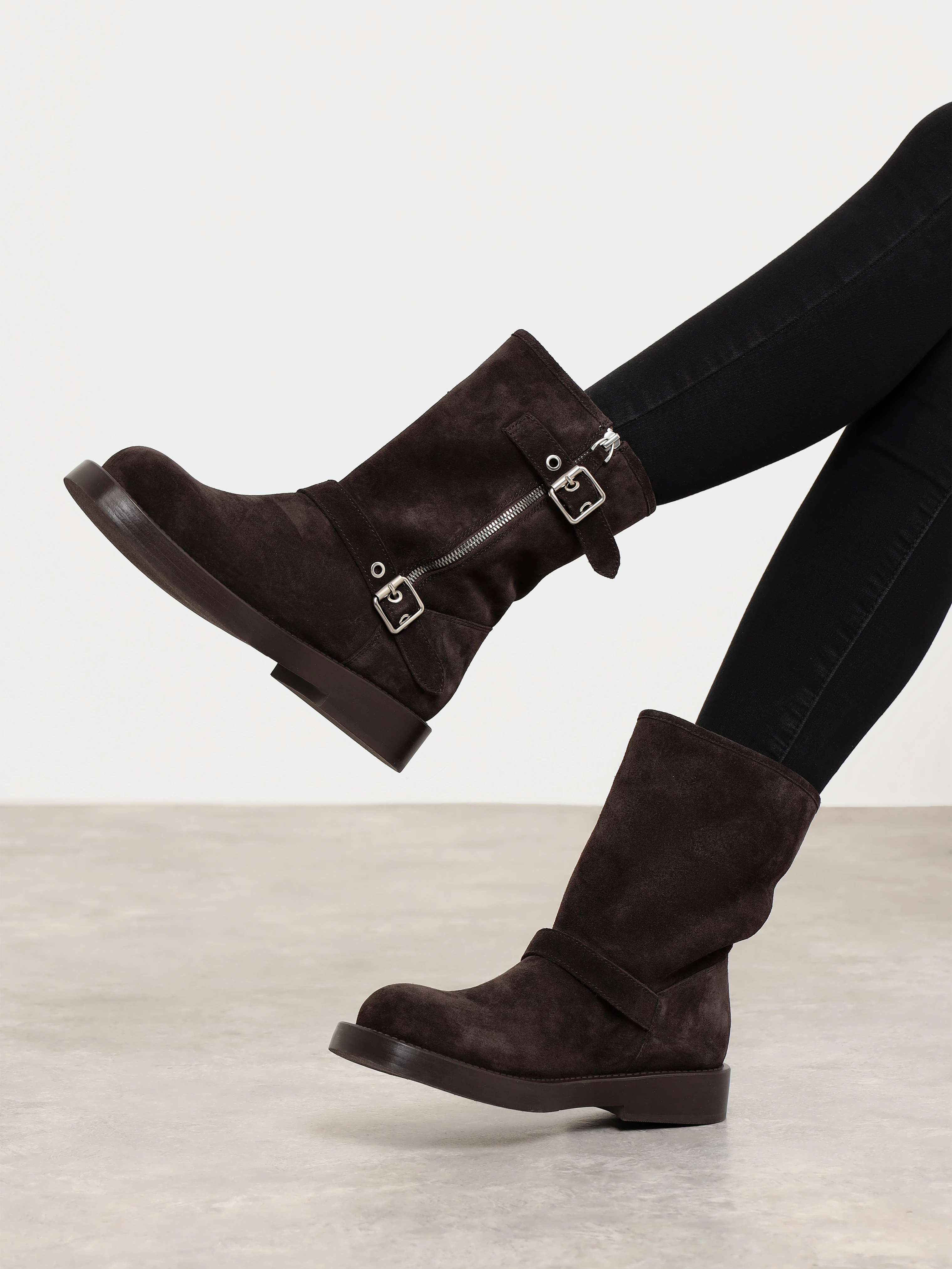 Полусапоги женские зимние, цвет коричневый, натуральный спилок