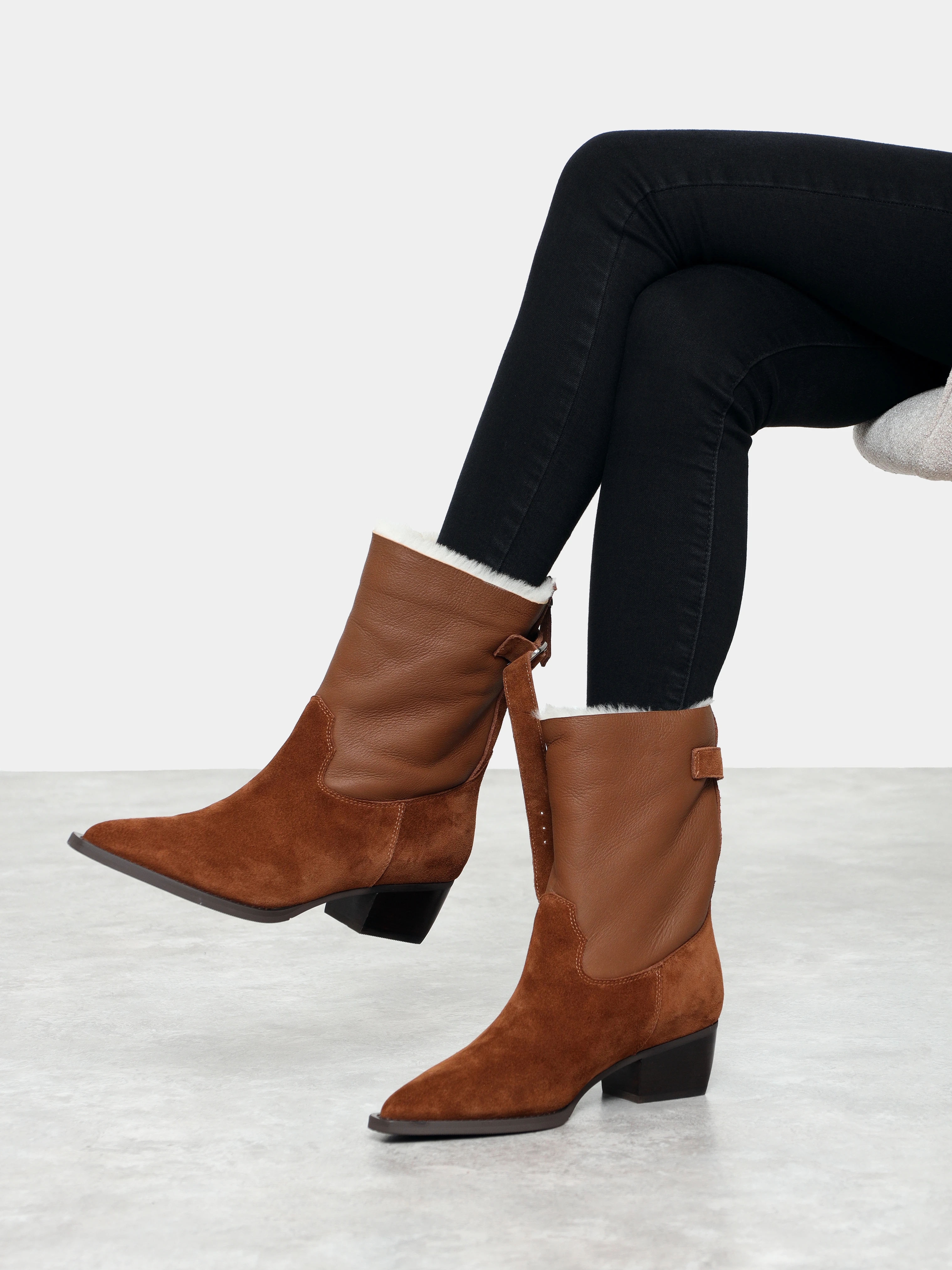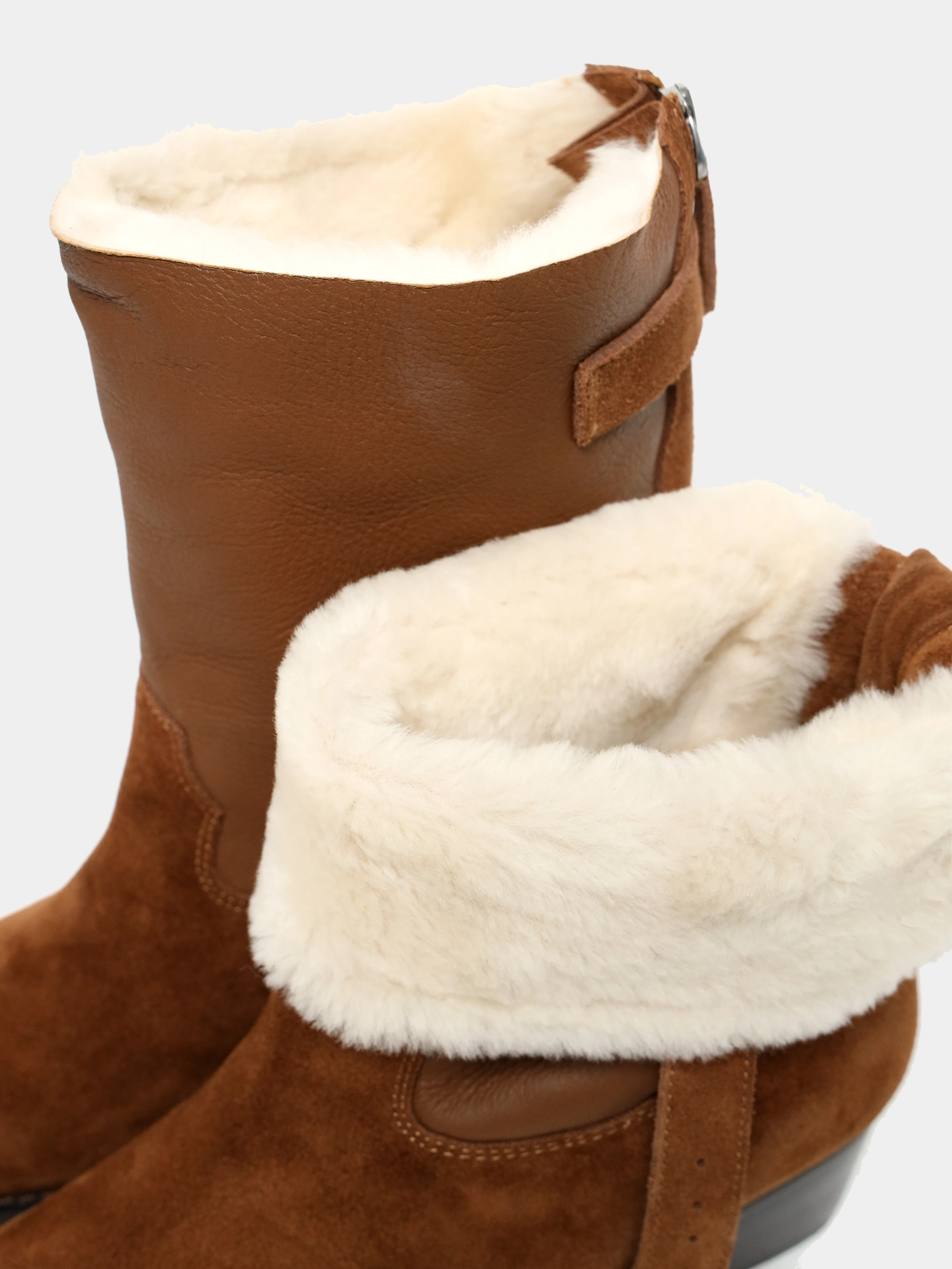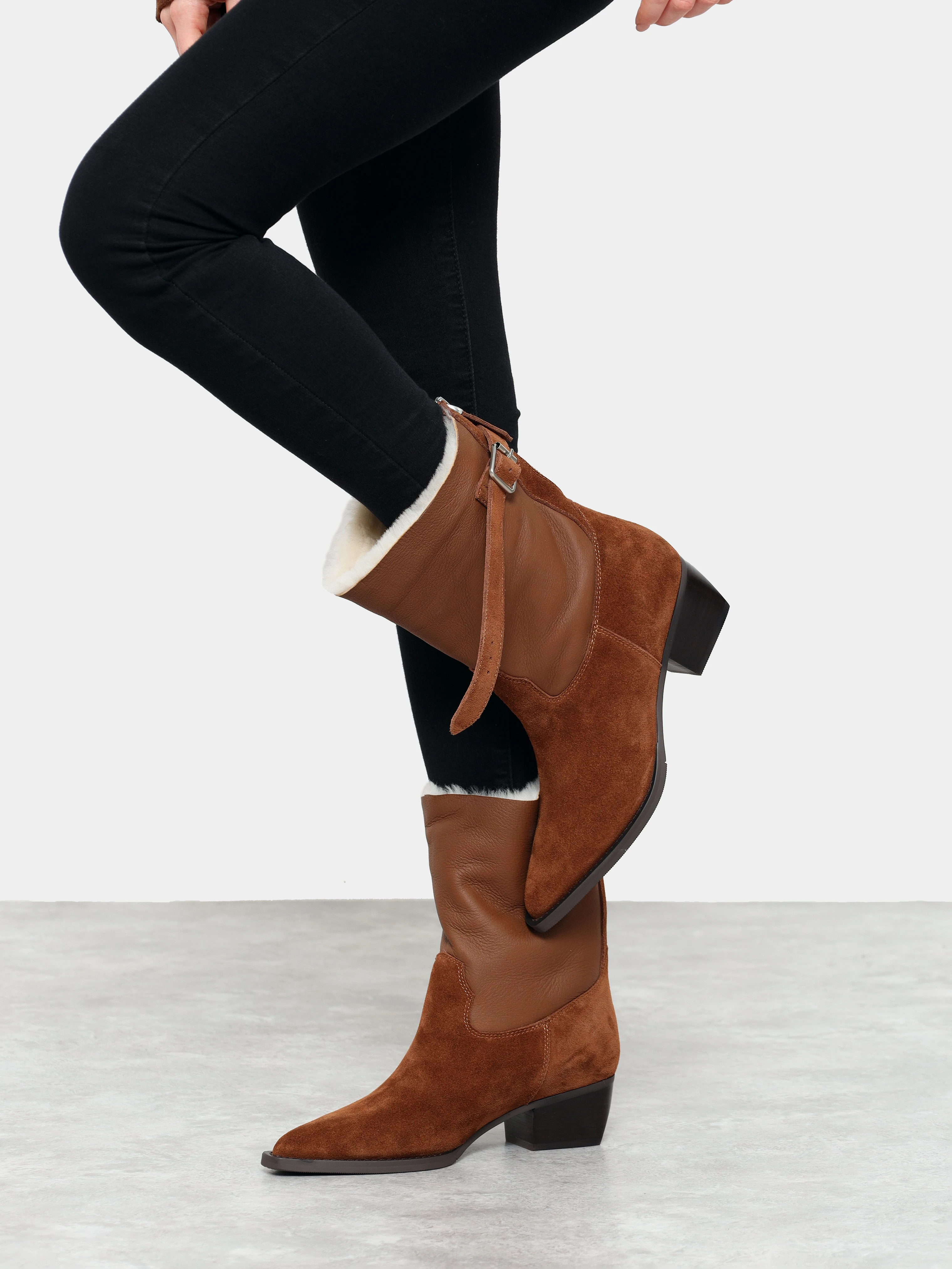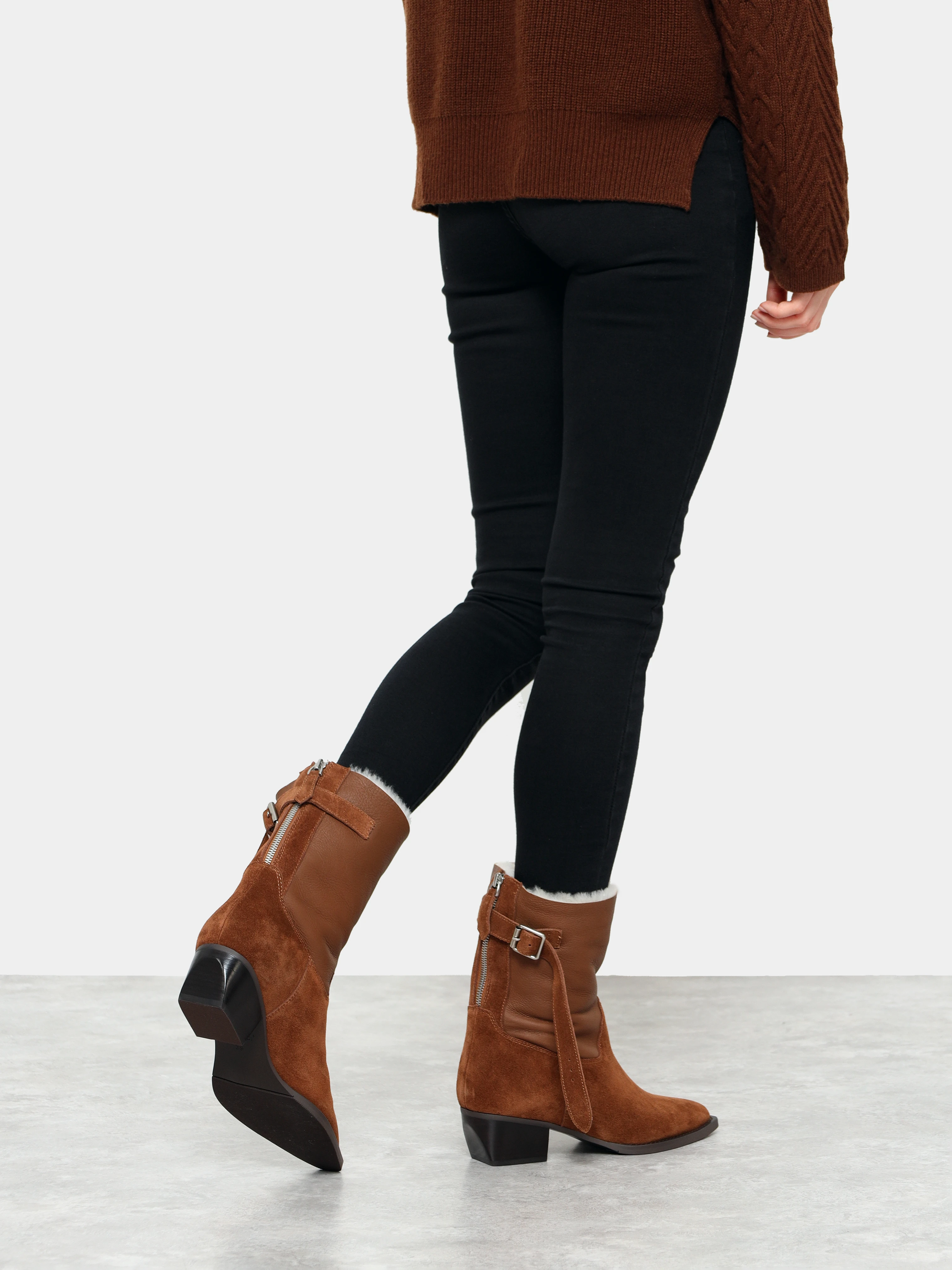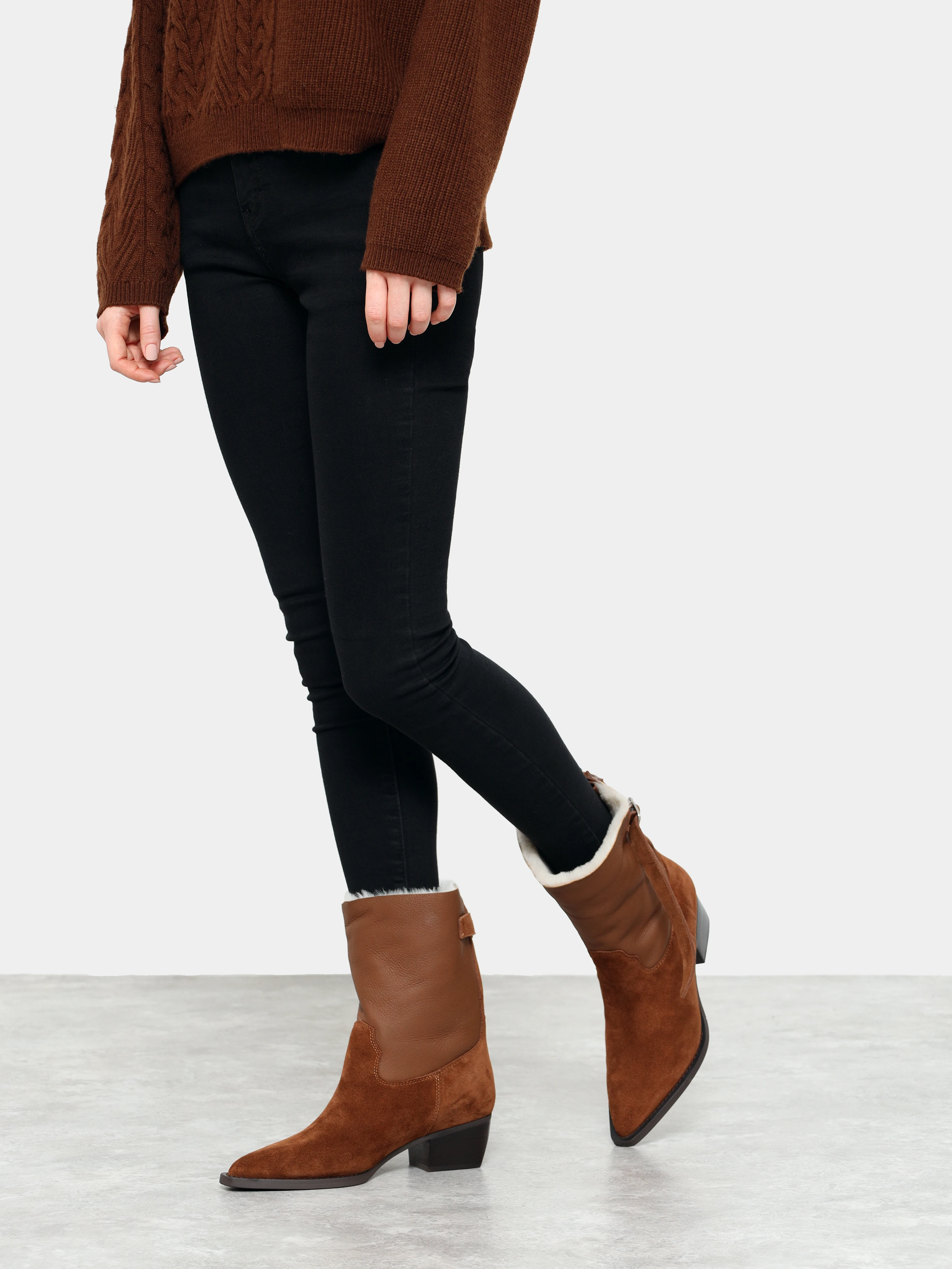 Полусапоги женские зимние, цвет рыжий, натуральный спилок