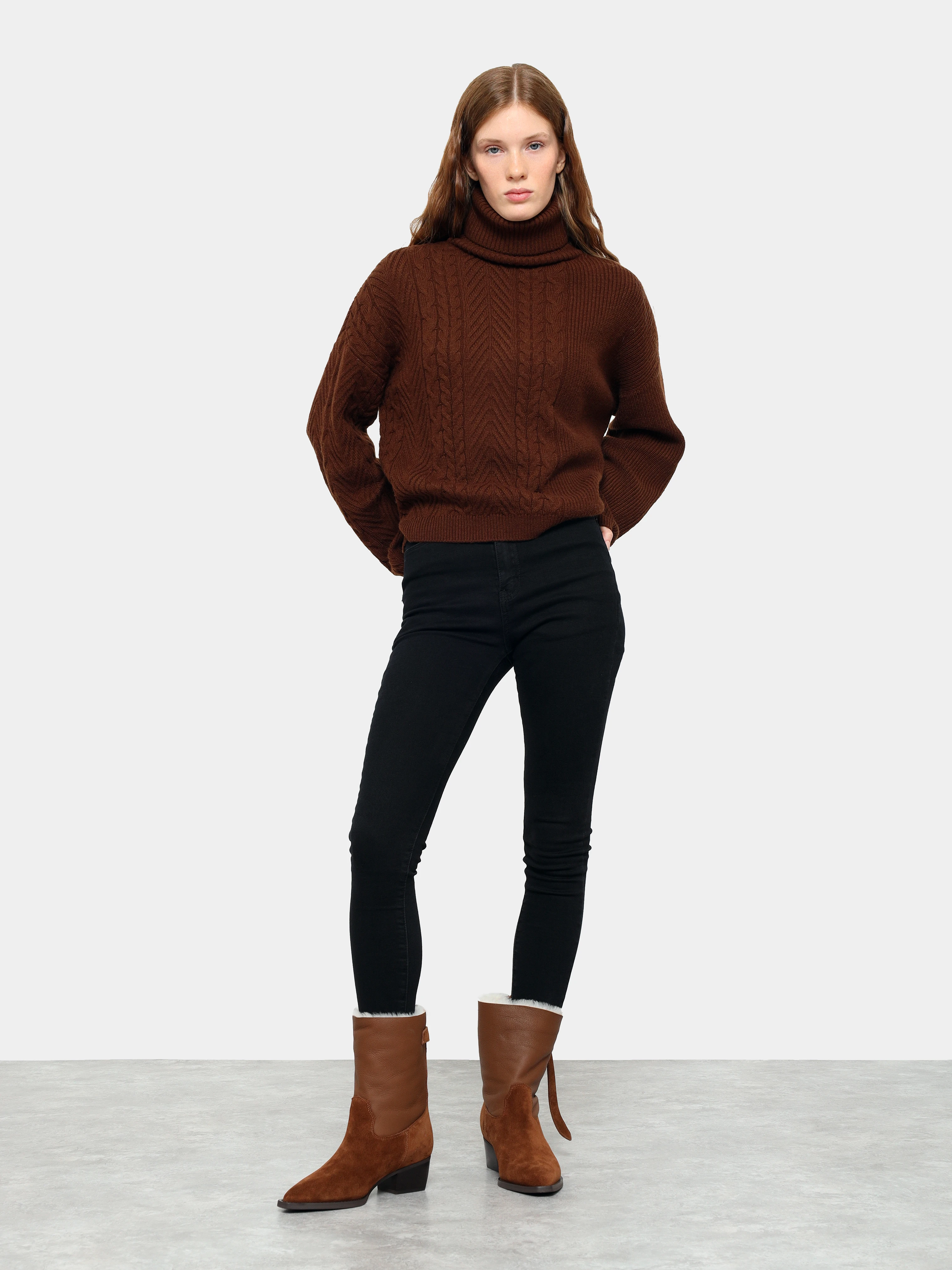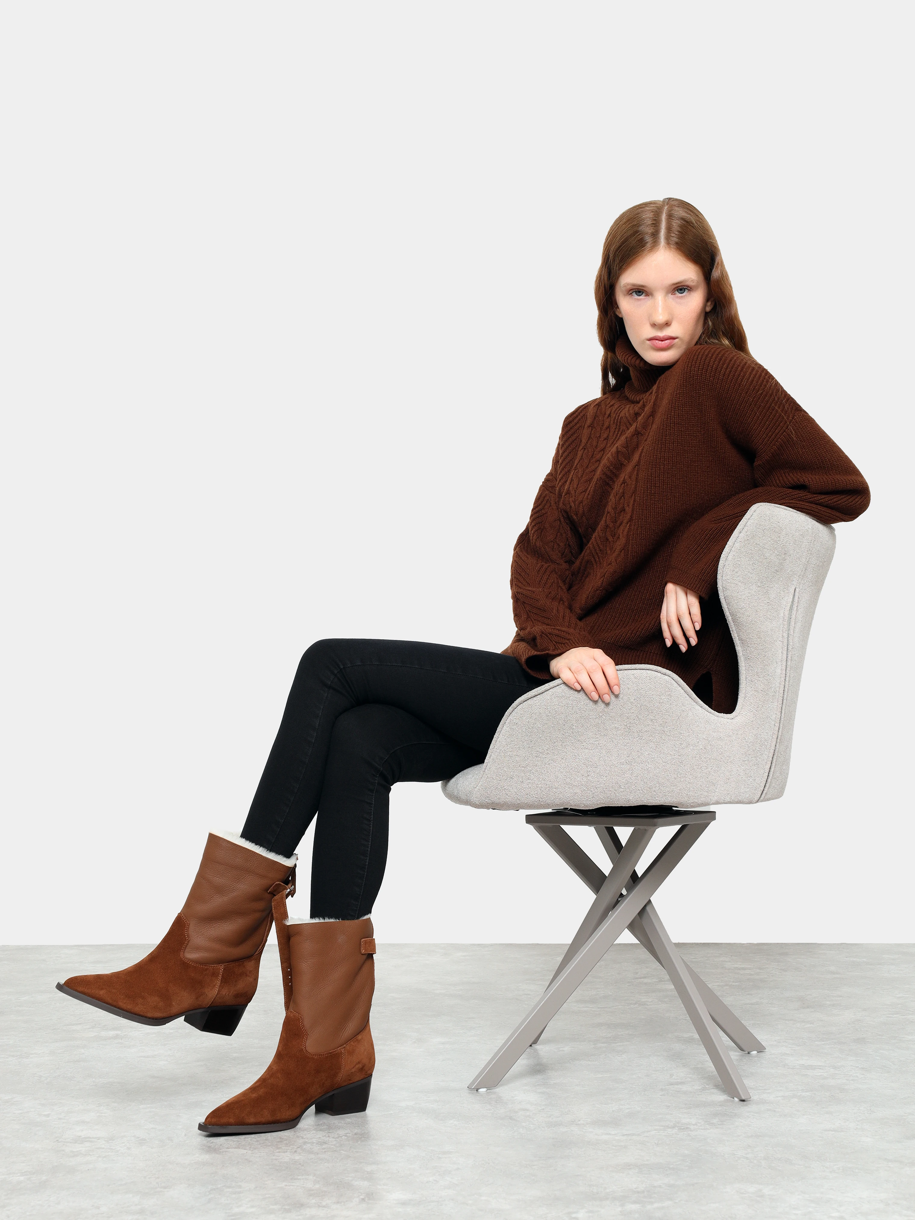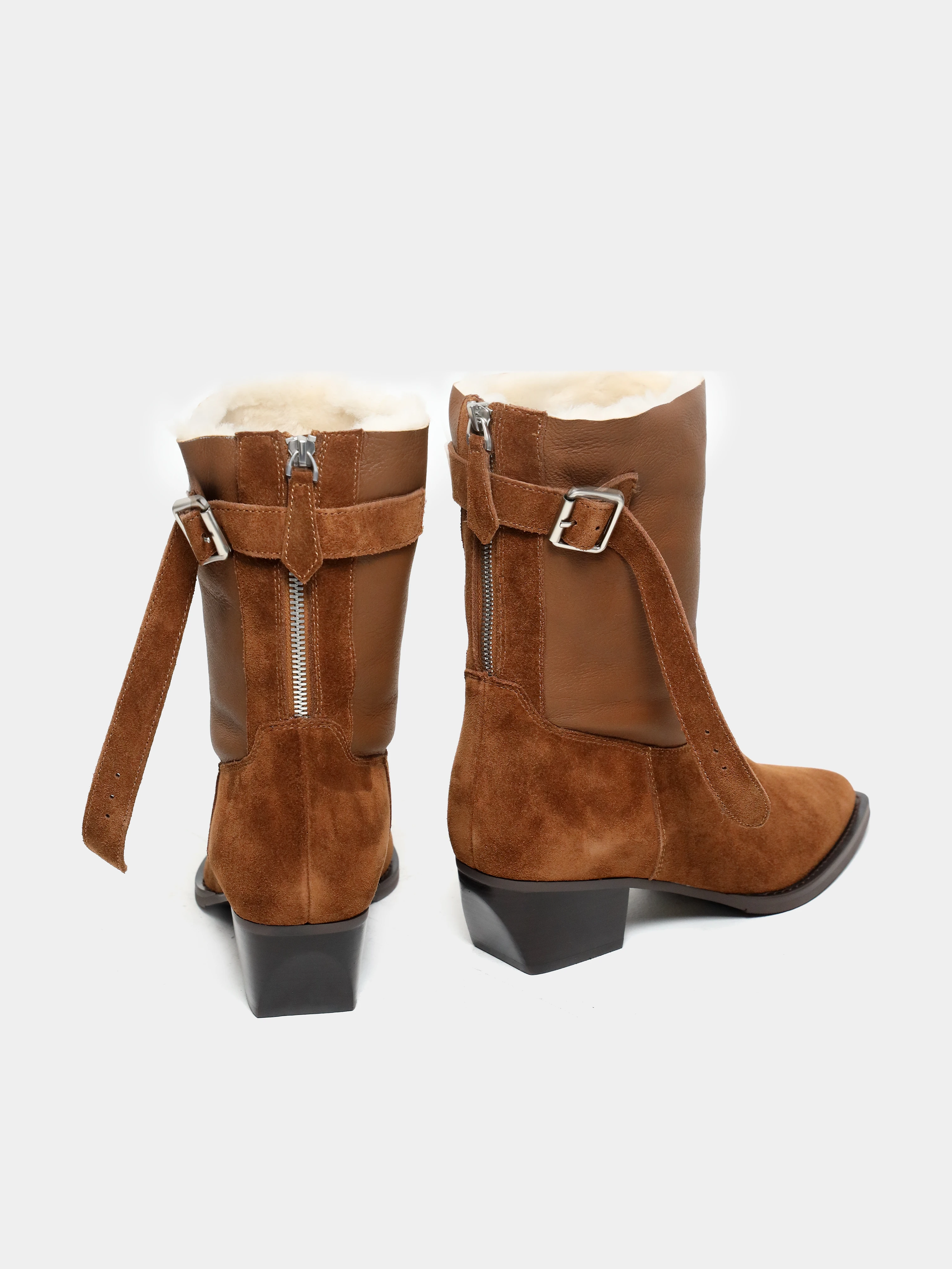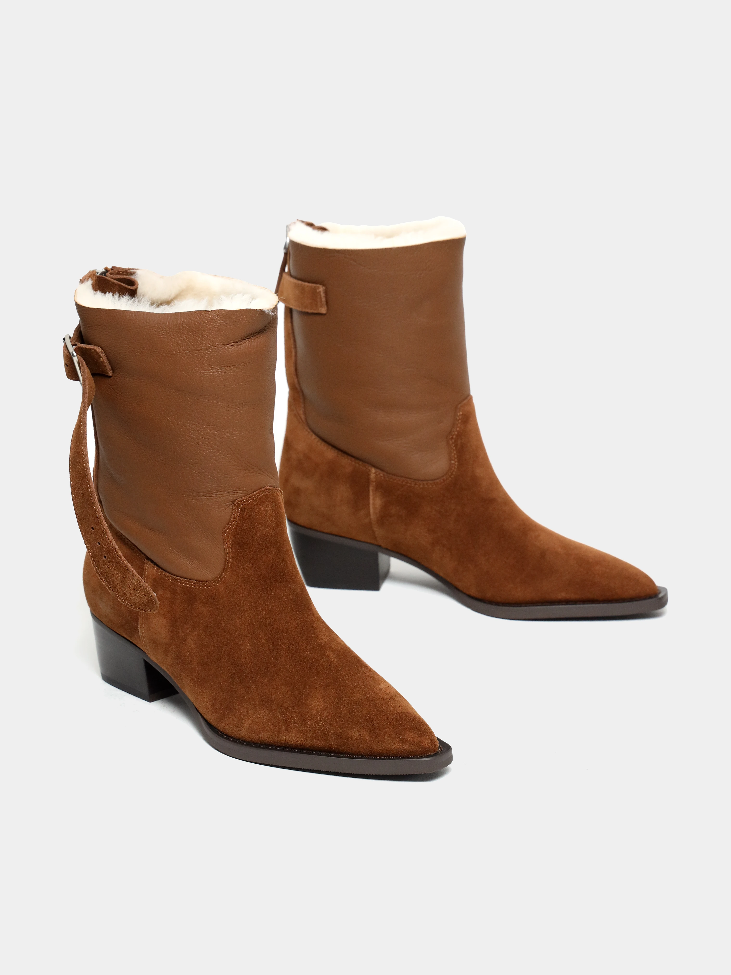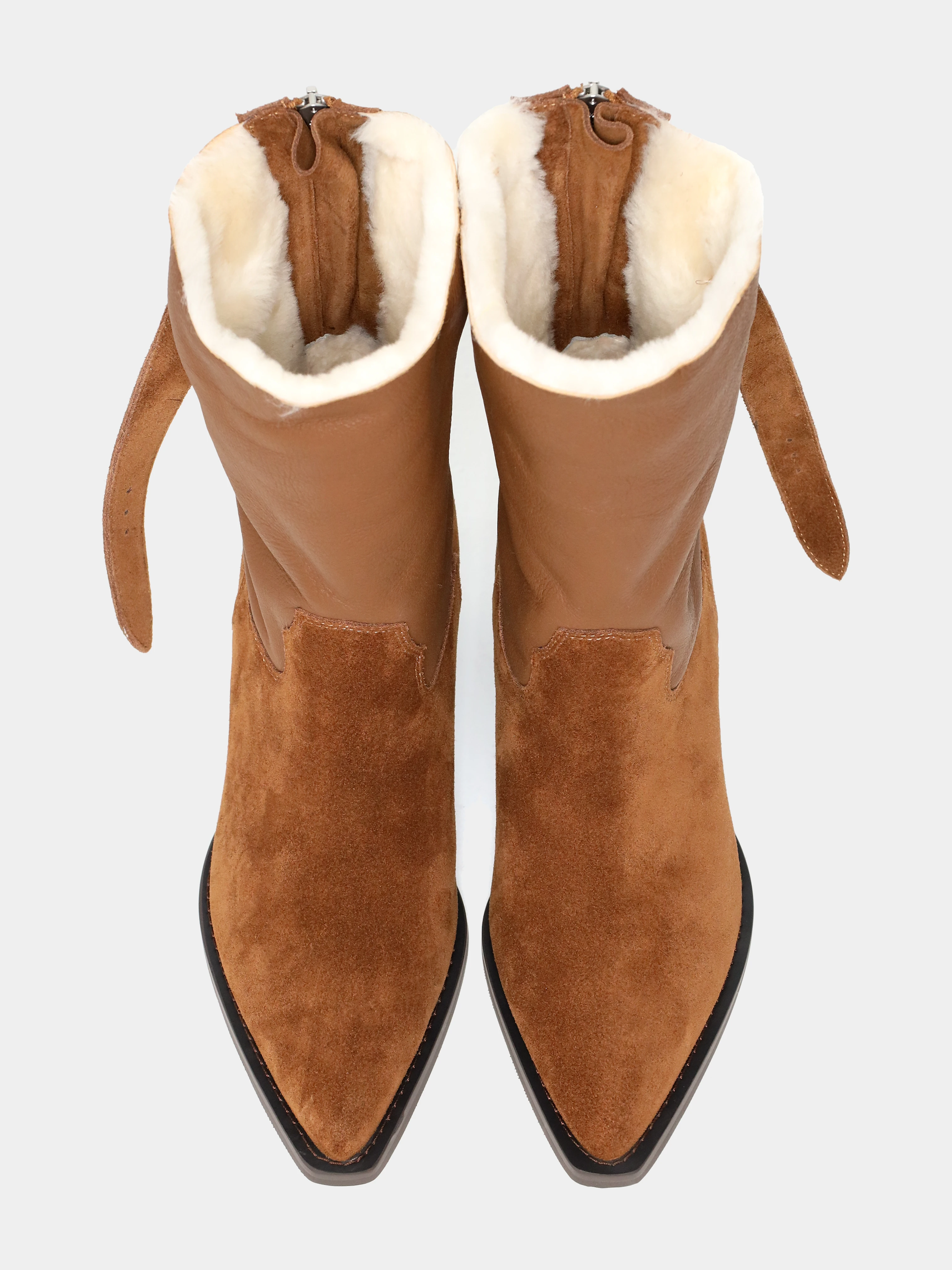 Полусапоги женские зимние, цвет рыжий, натуральный спилок