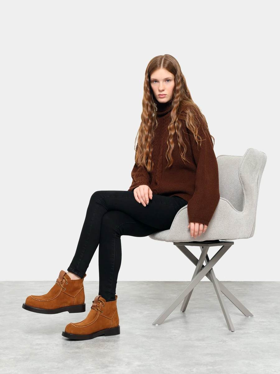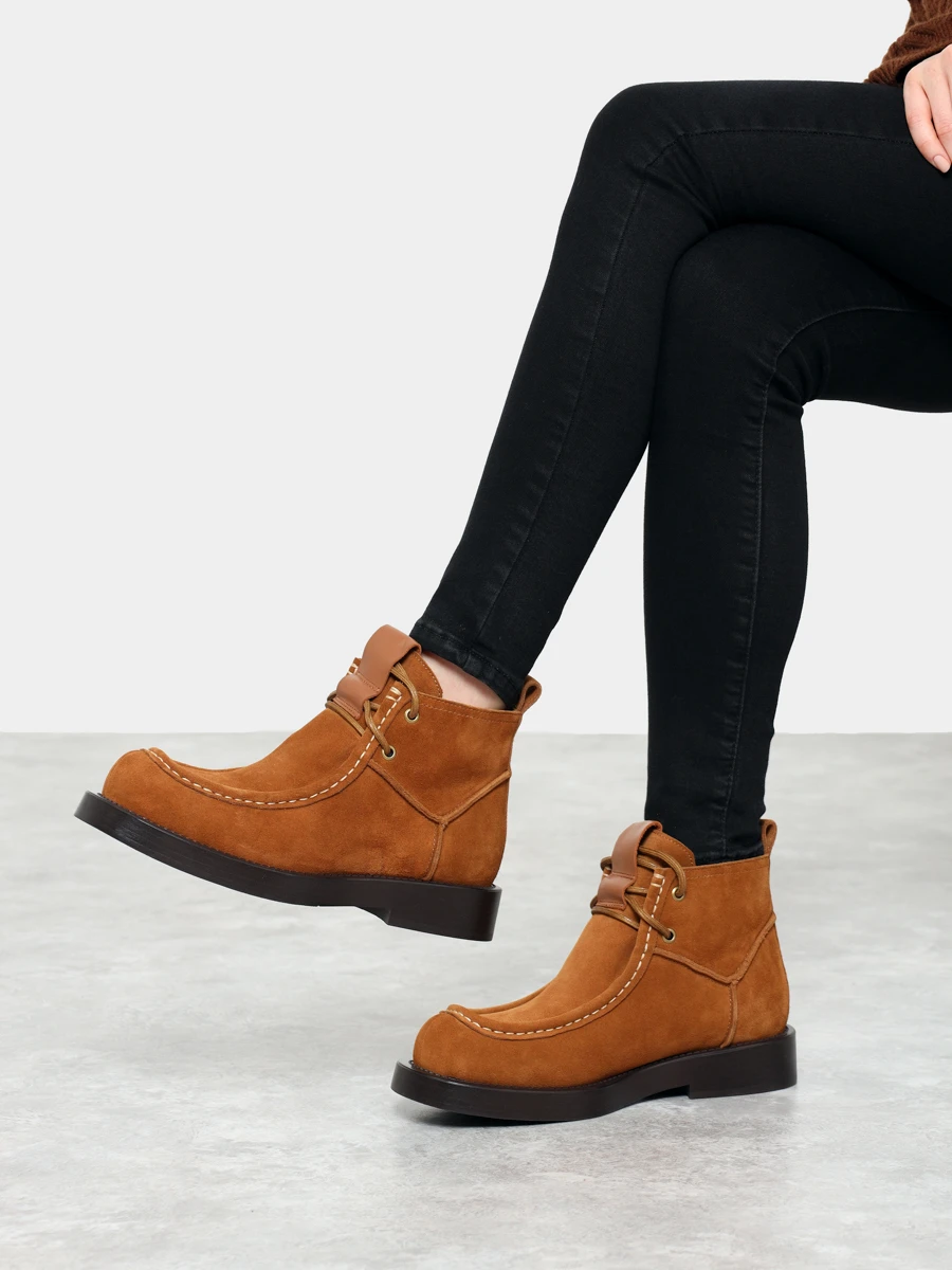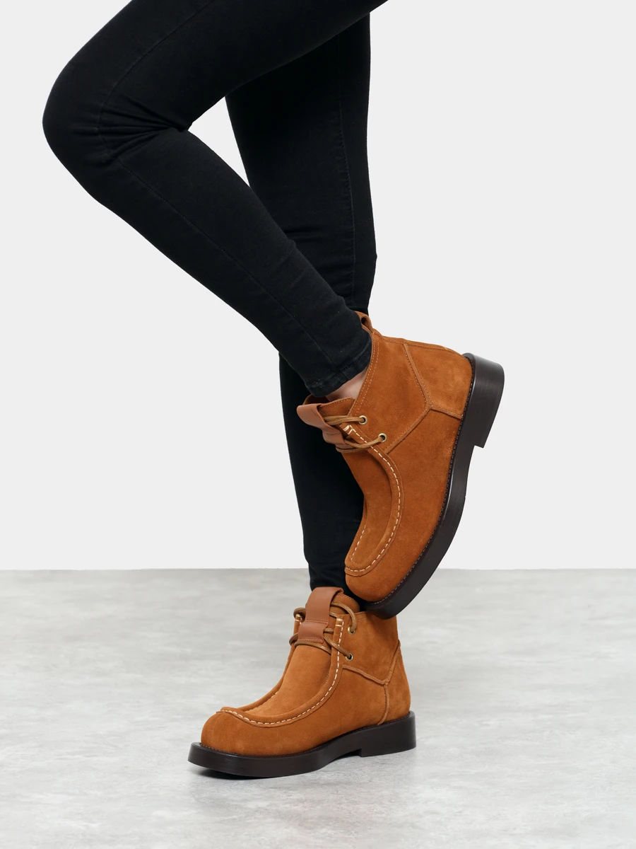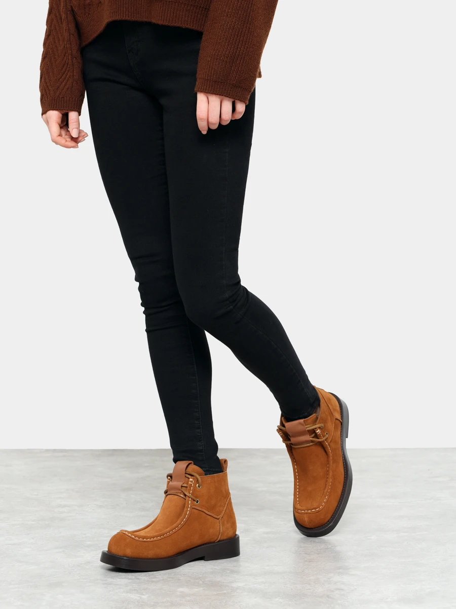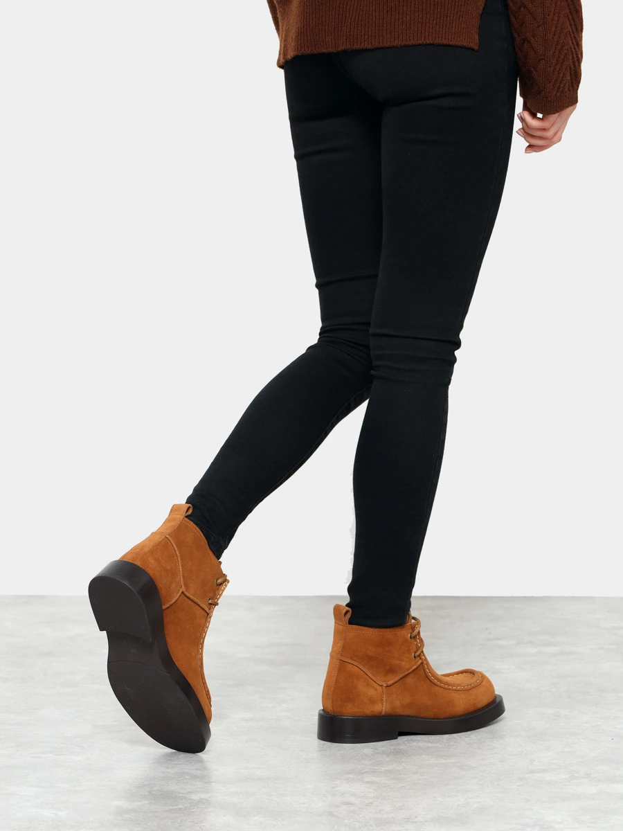 Ботинки женские демисезонные, цвет рыжий, натуральный спилок