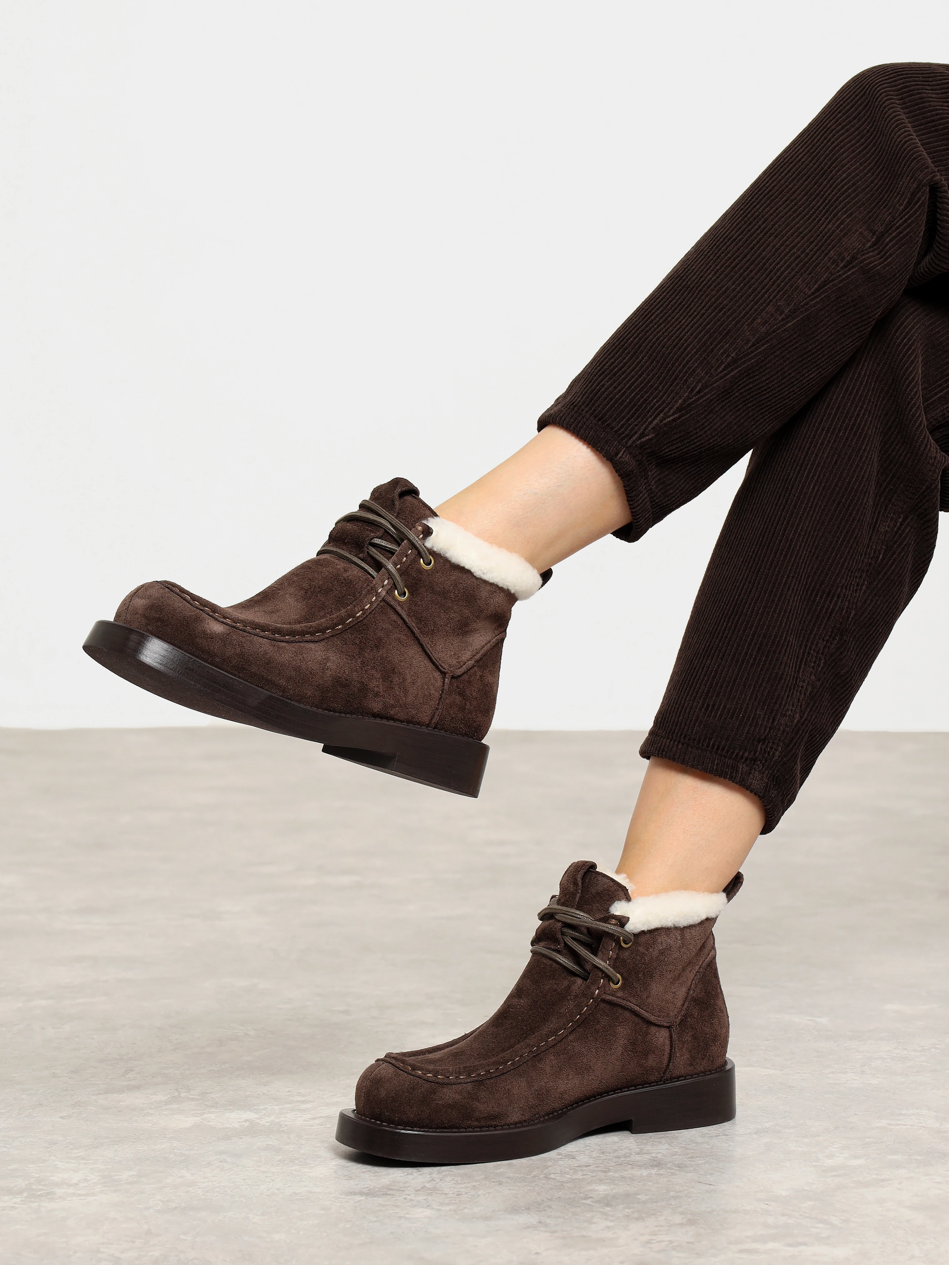 Ботинки женские зимние, цвет коричневый, натуральный спилок