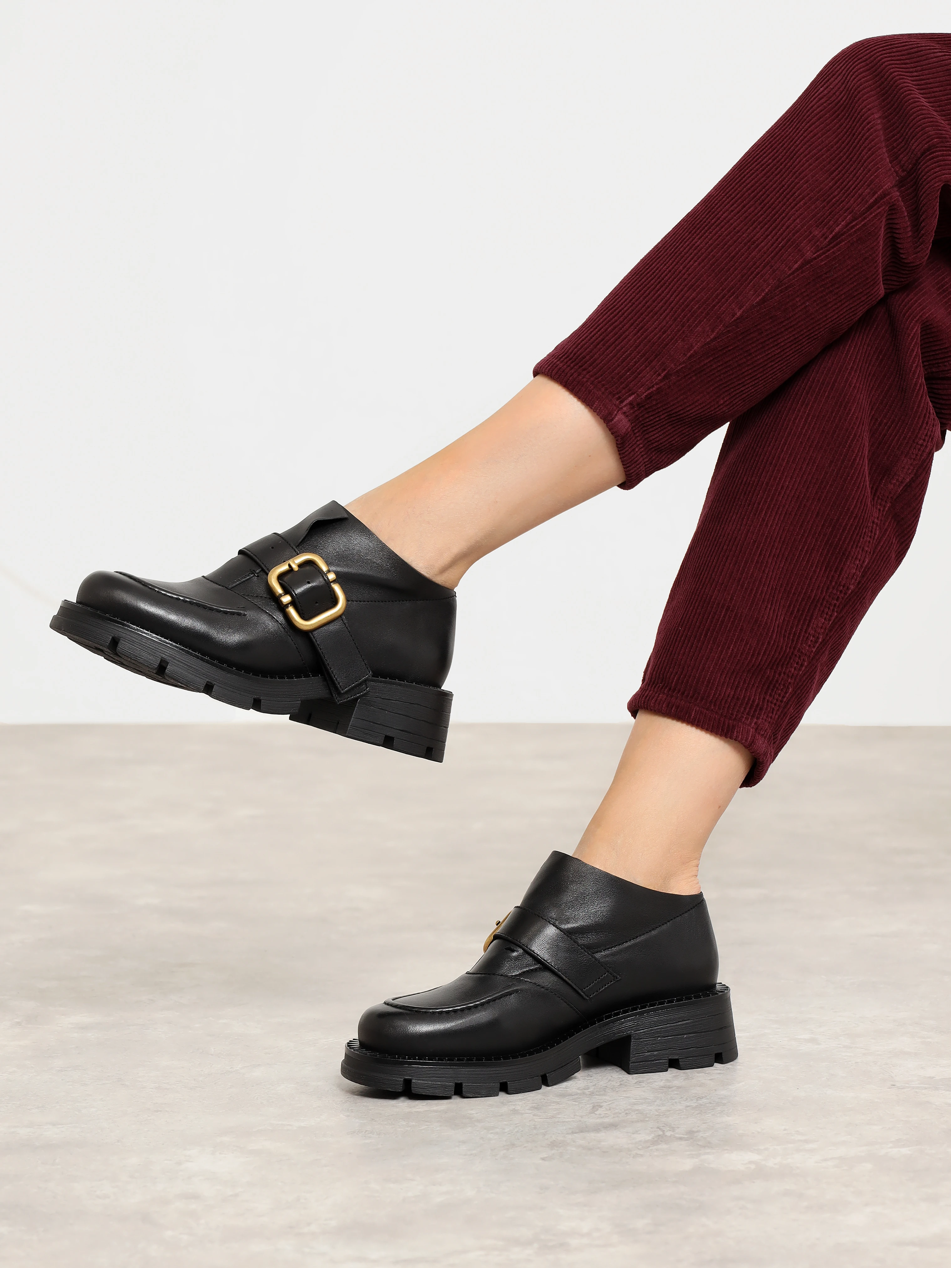 Полуботинки женские всесезонные, цвет черный, натуральная кожа