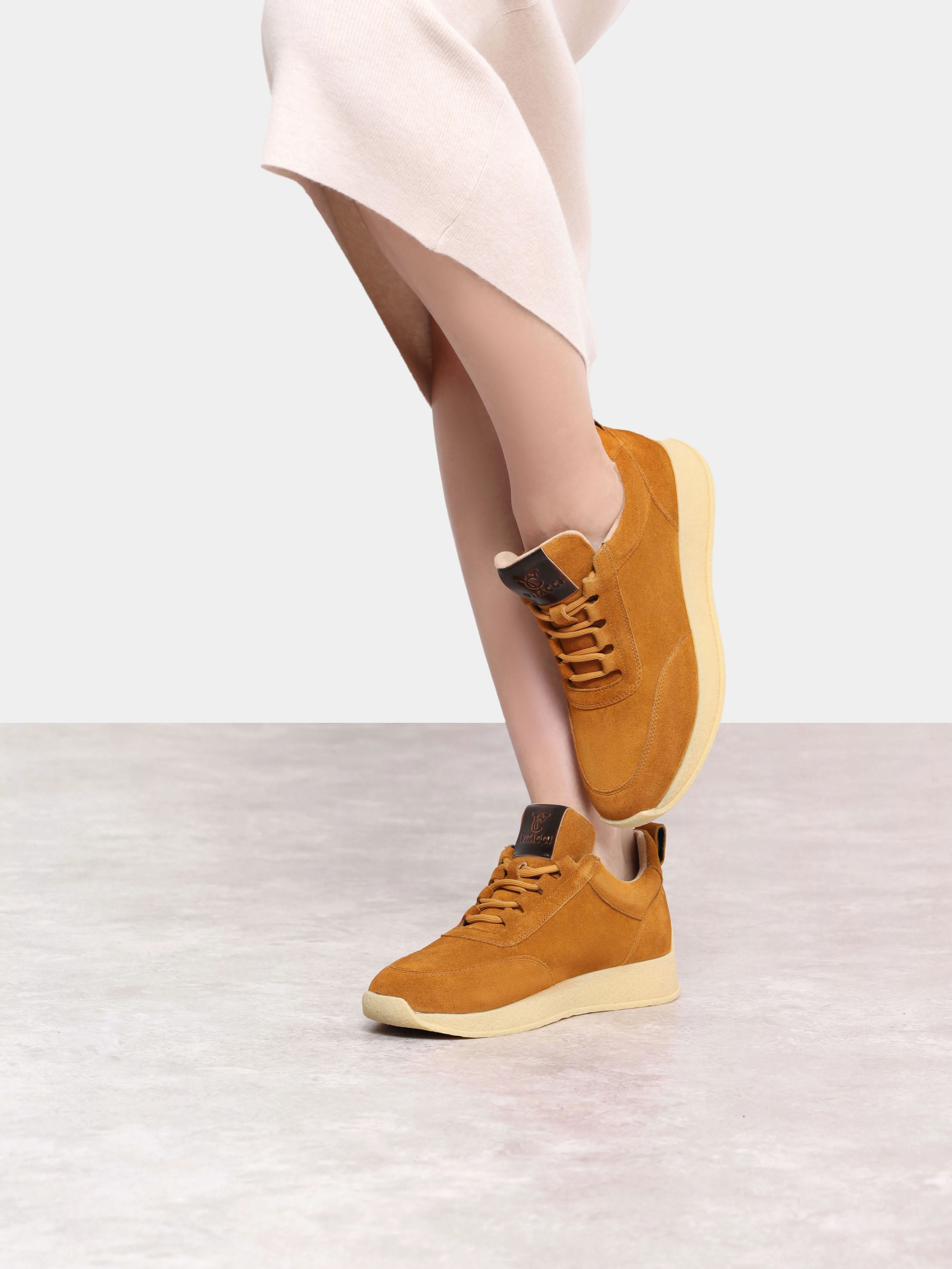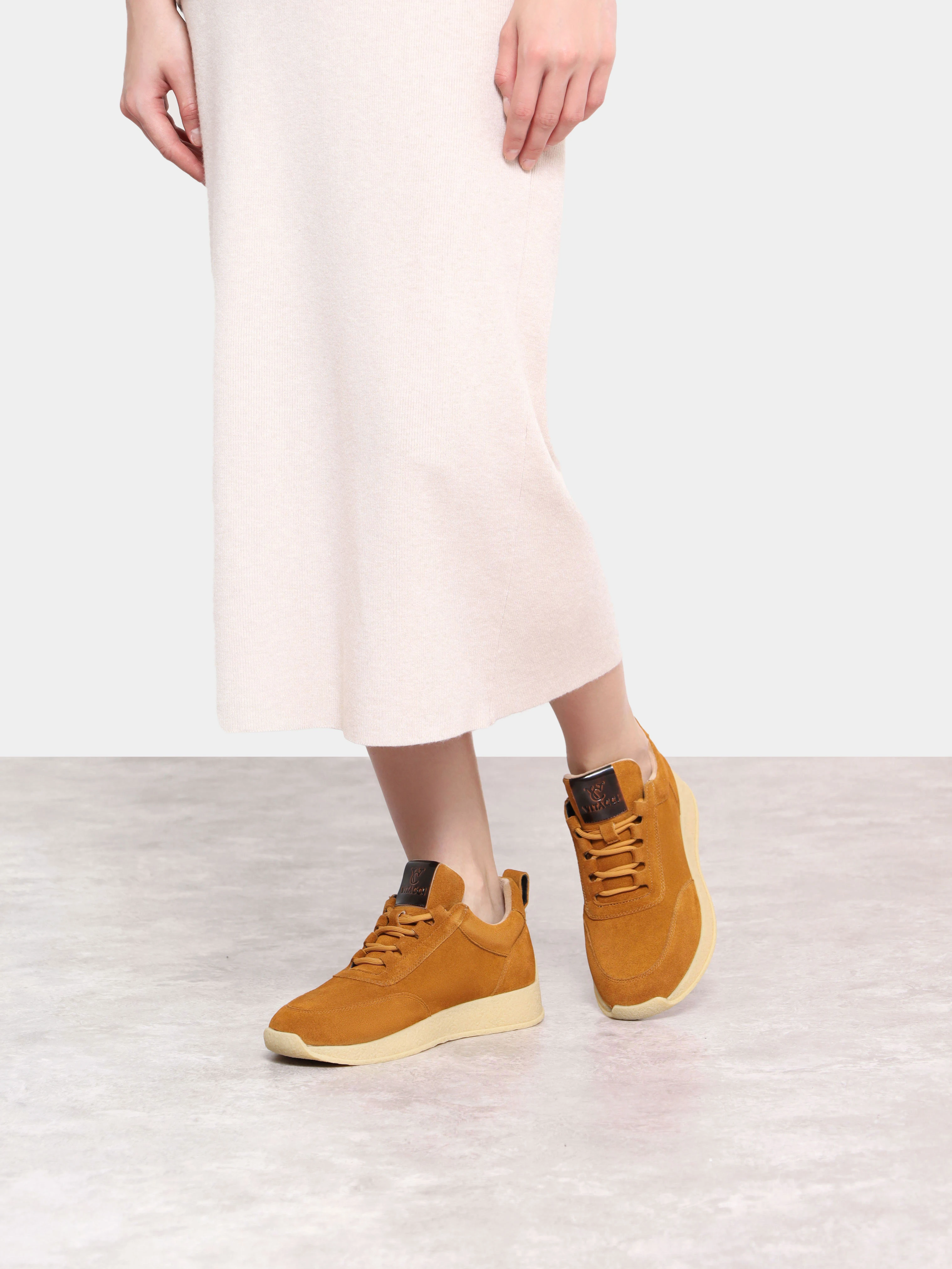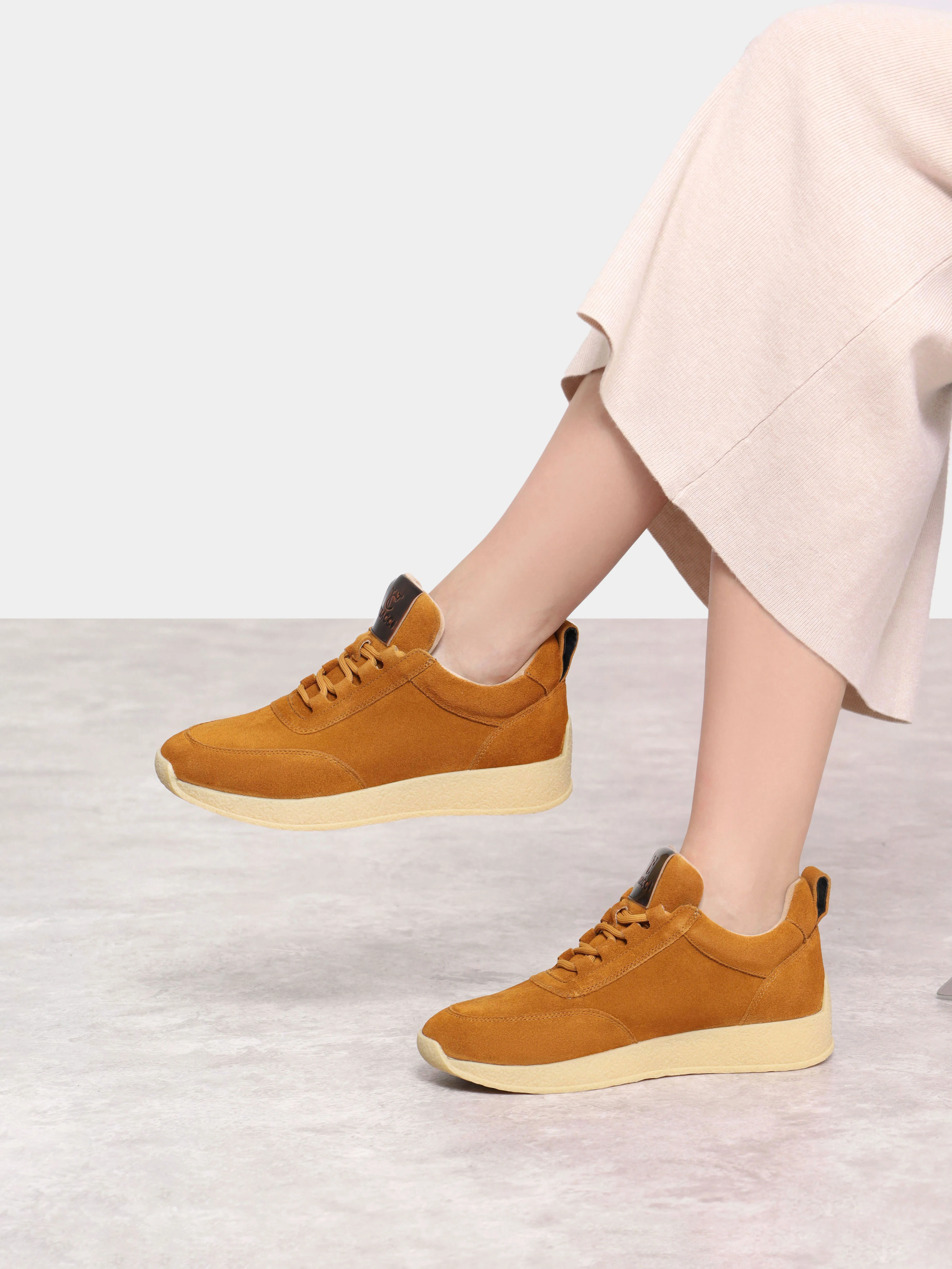 Кроссовки женские демисезонные, цвет оранжевый, натуральный спилок