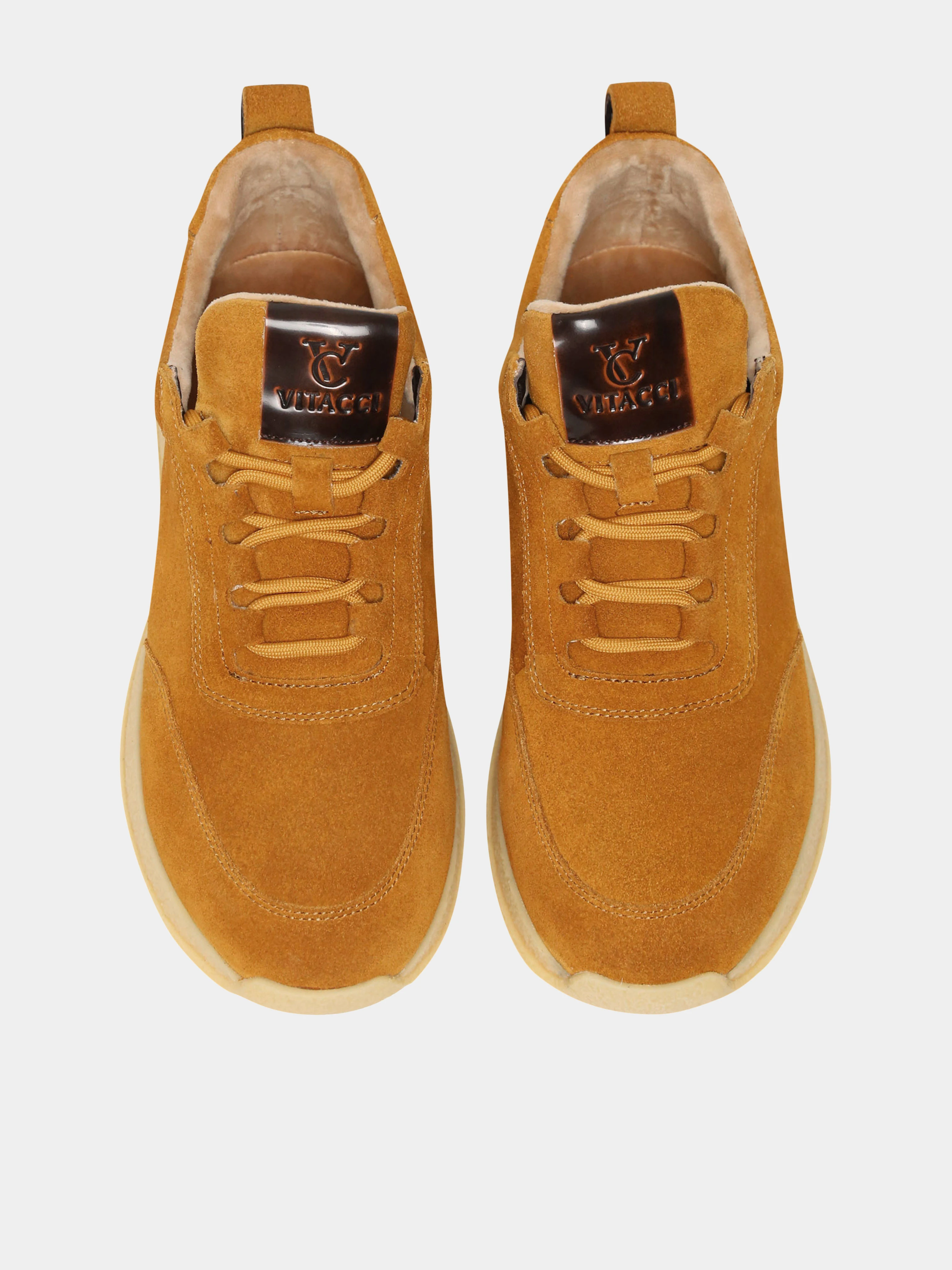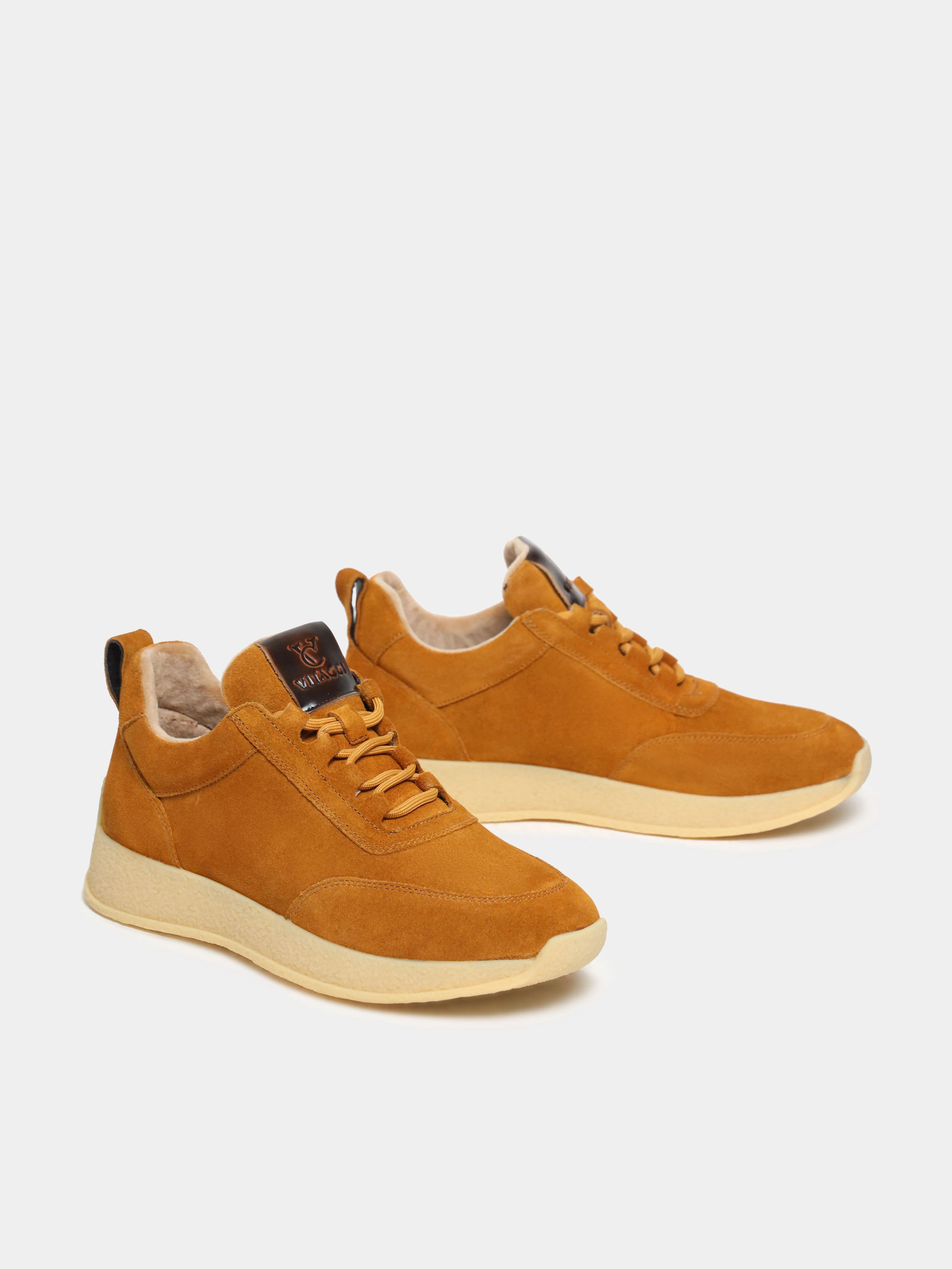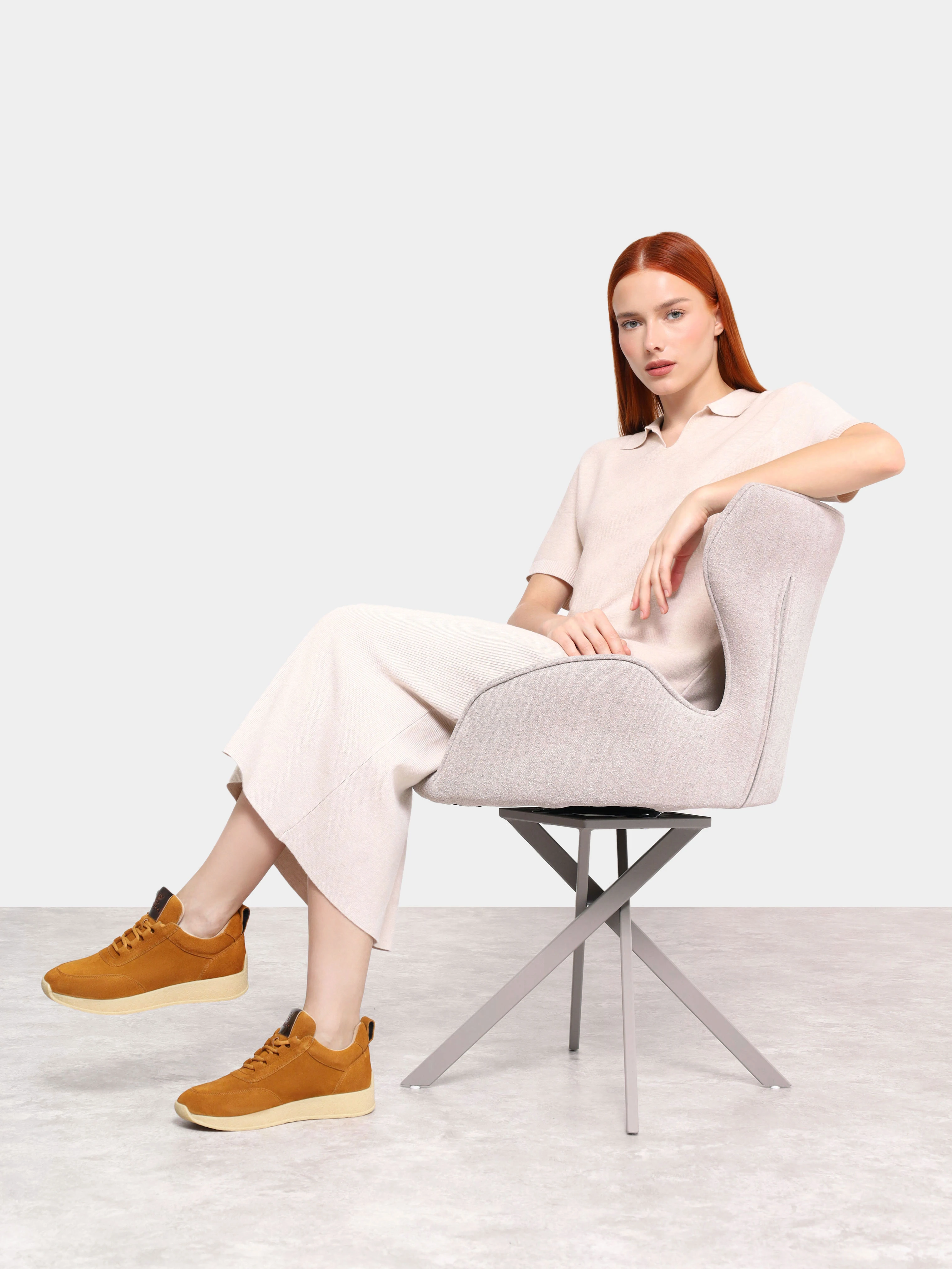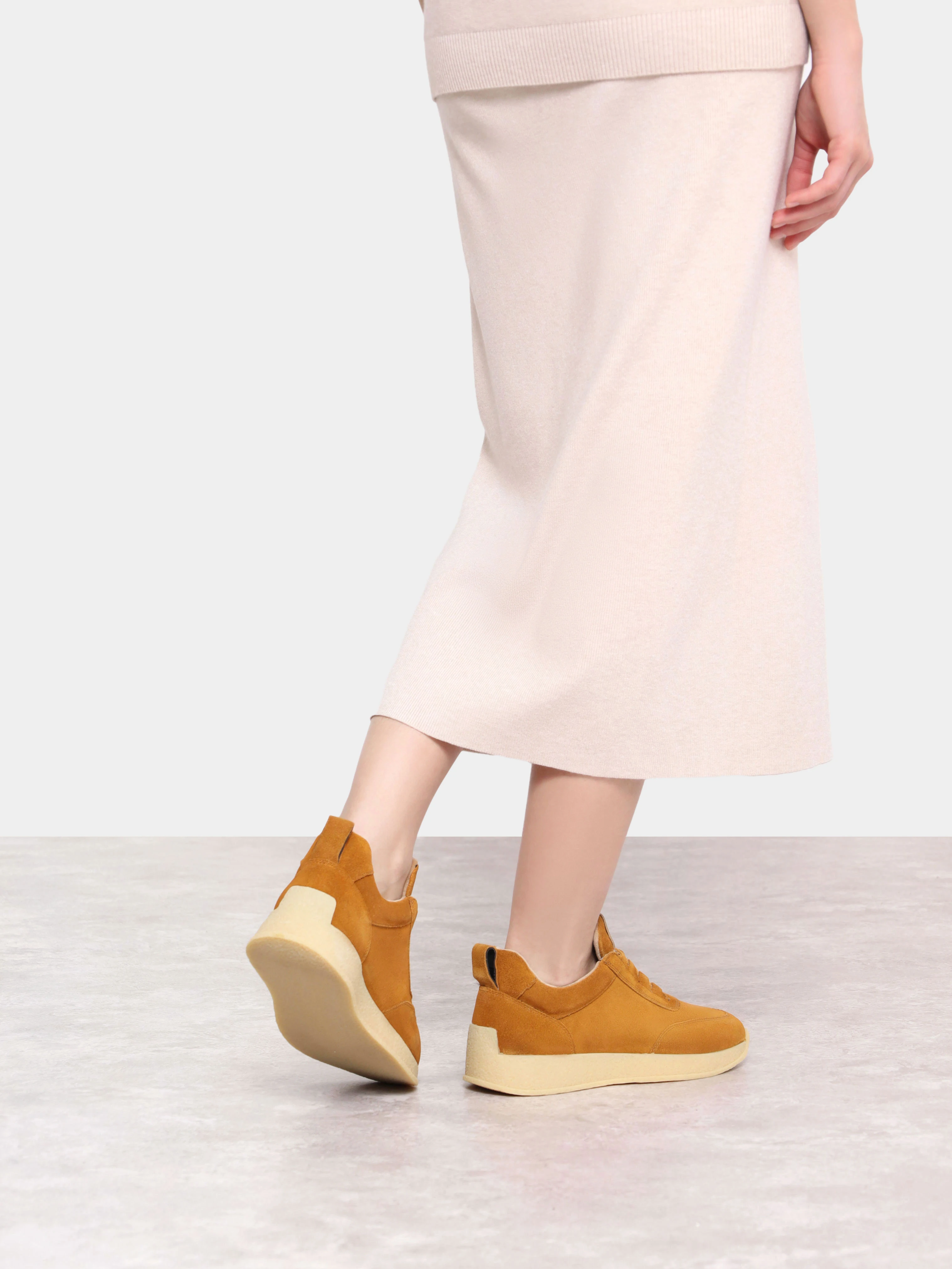 Кроссовки женские демисезонные, цвет оранжевый, натуральный спилок
