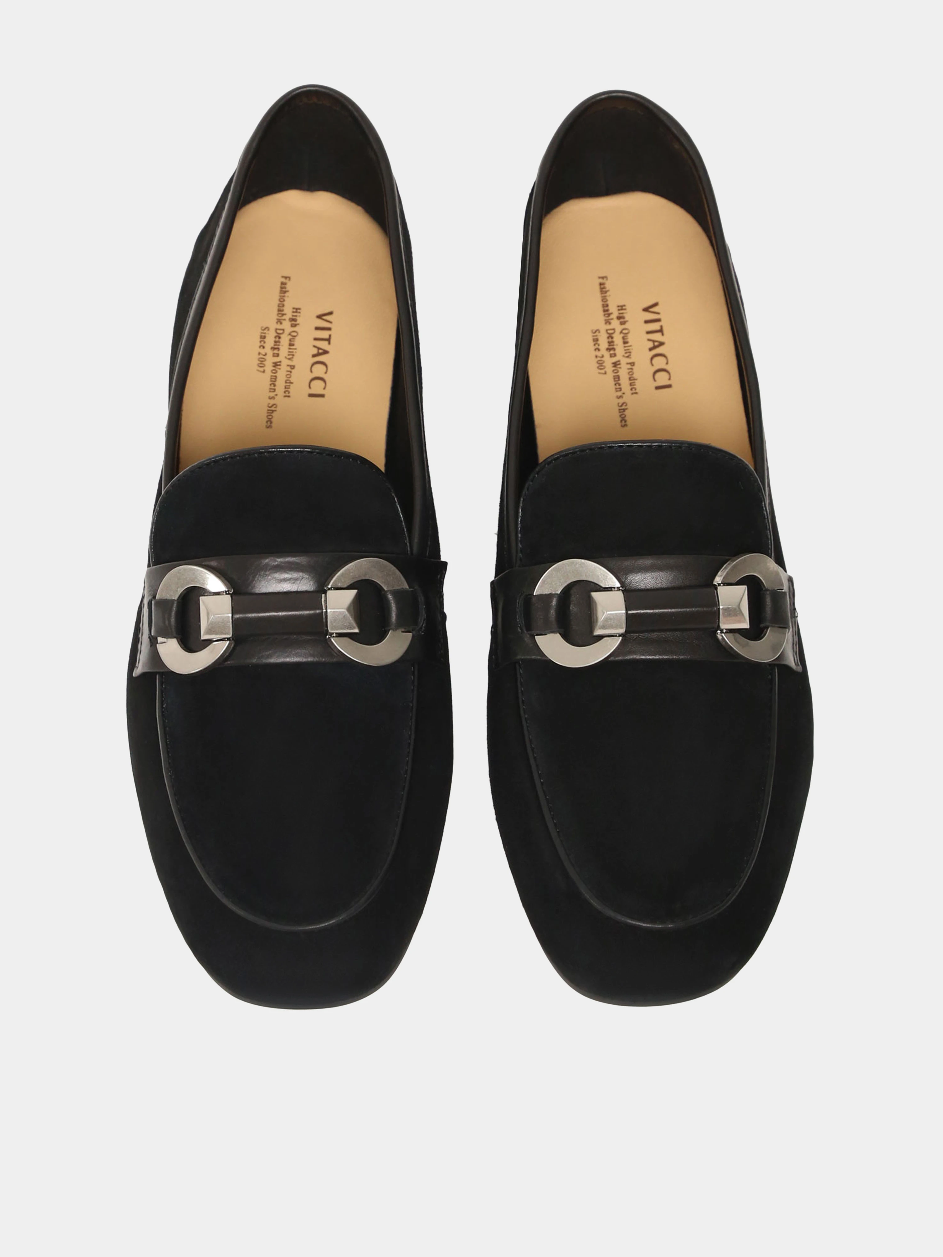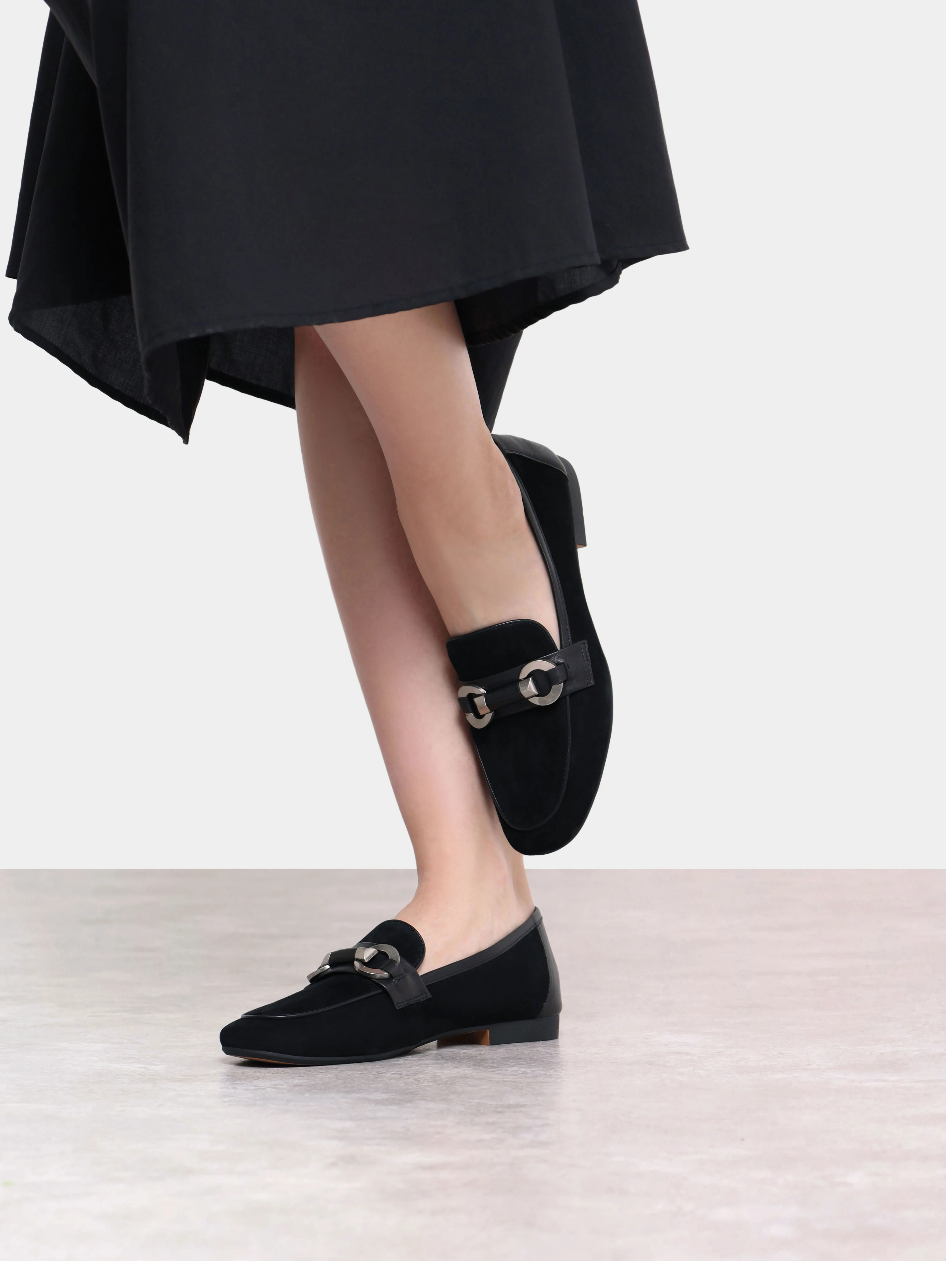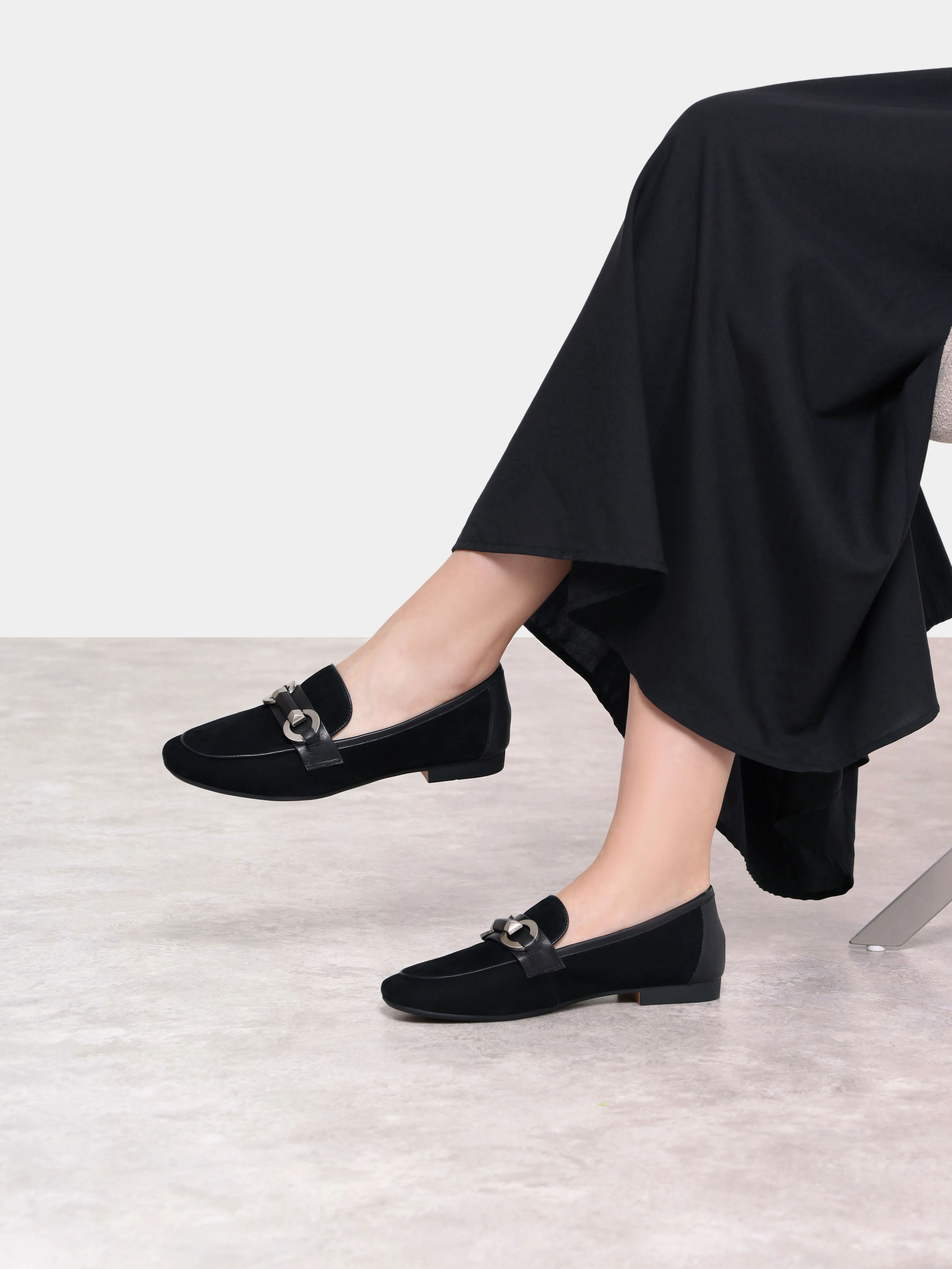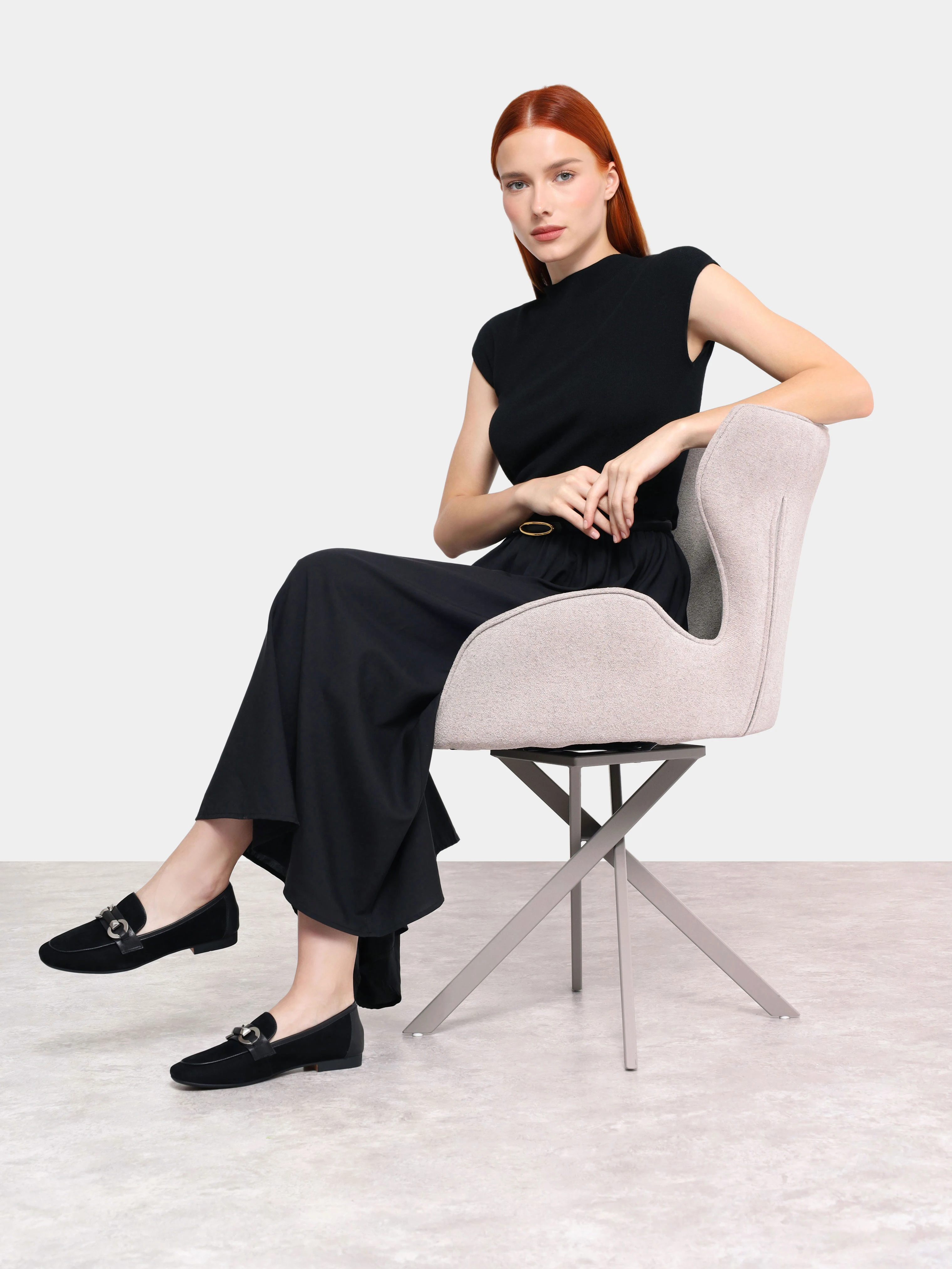 Лоферы женские всесезонные, цвет черный, натуральный велюр