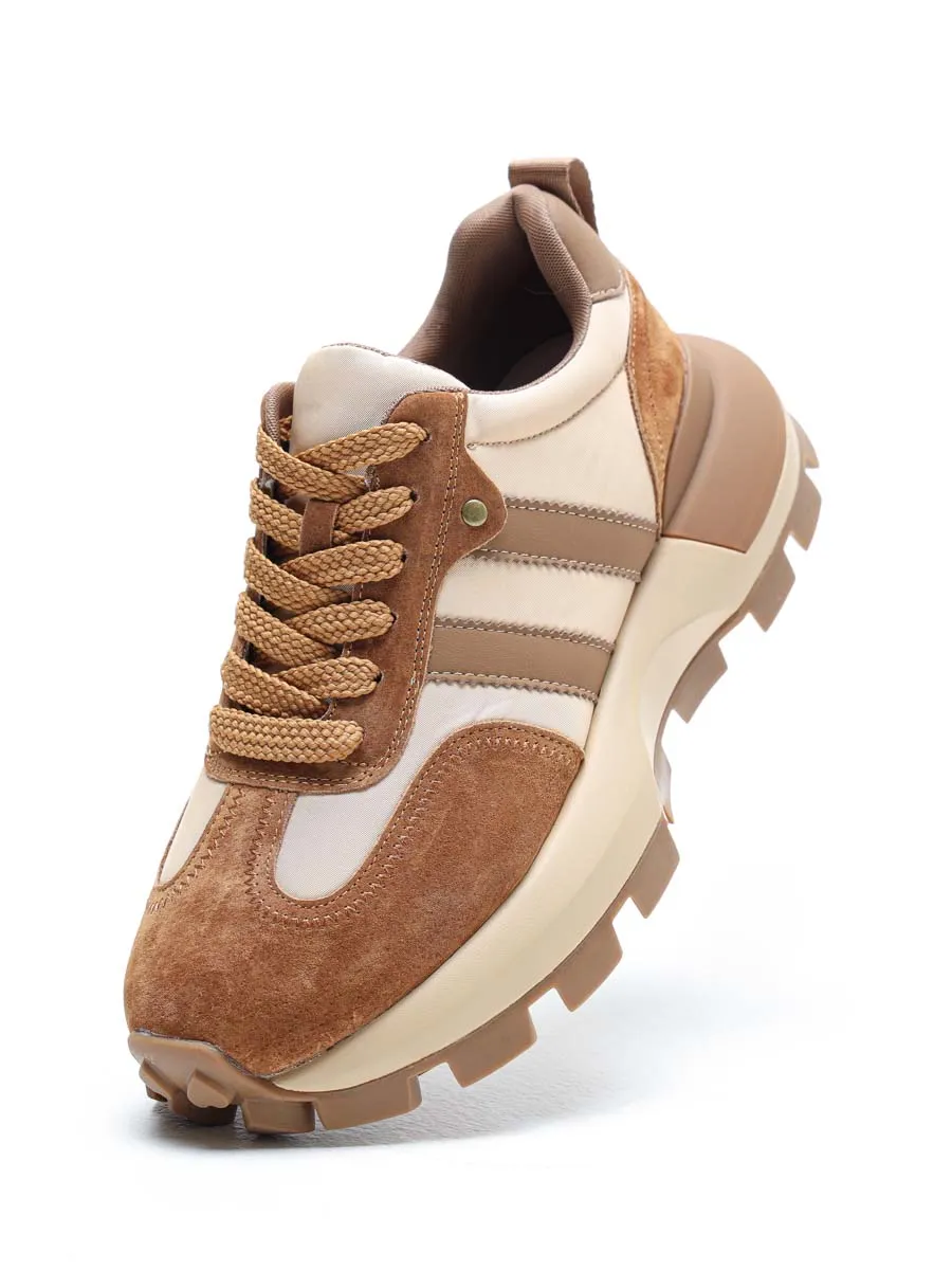 Кроссовки женские демисезонные, цвет рыжий, натуральный велюр/текстиль