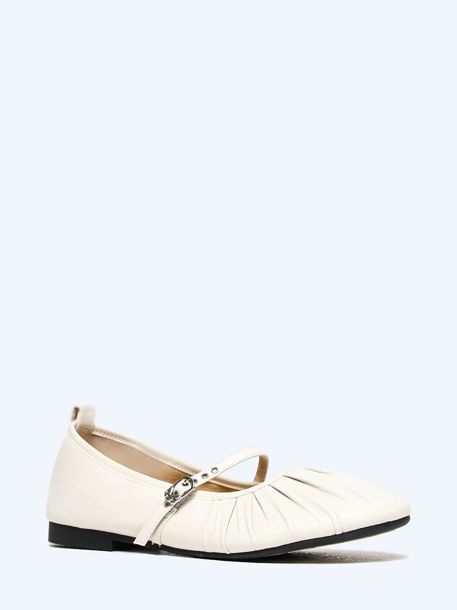 Балетки женские летние, цвет молочный, натуральная кожа