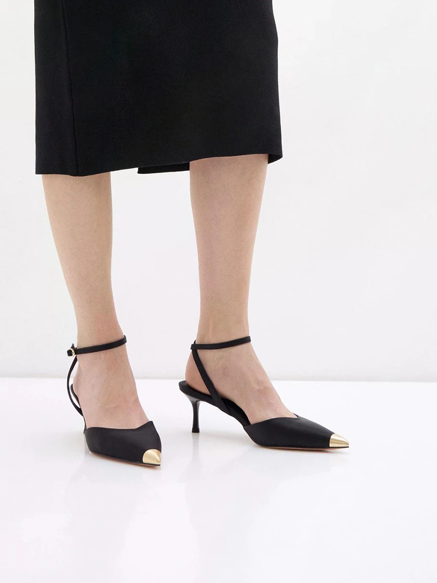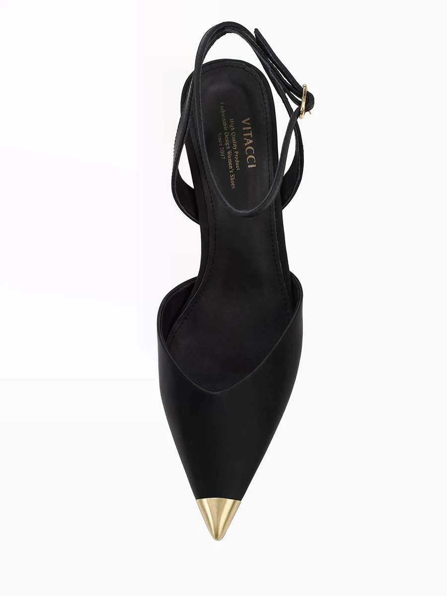 Туфли женские летние, цвет черный, натуральная кожа