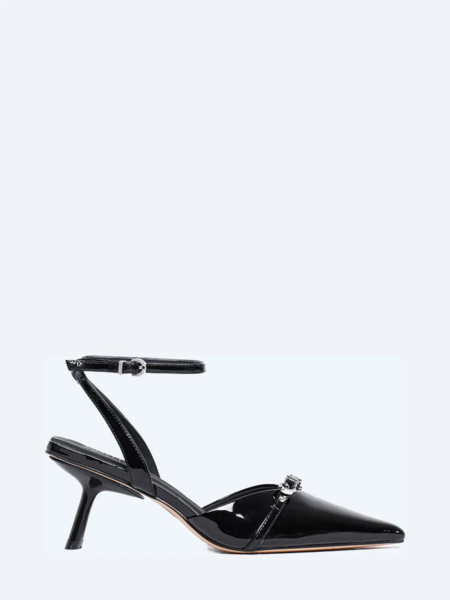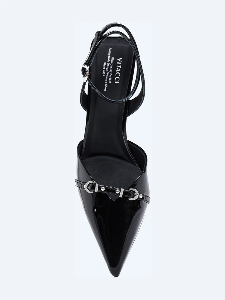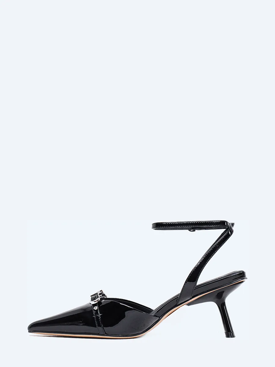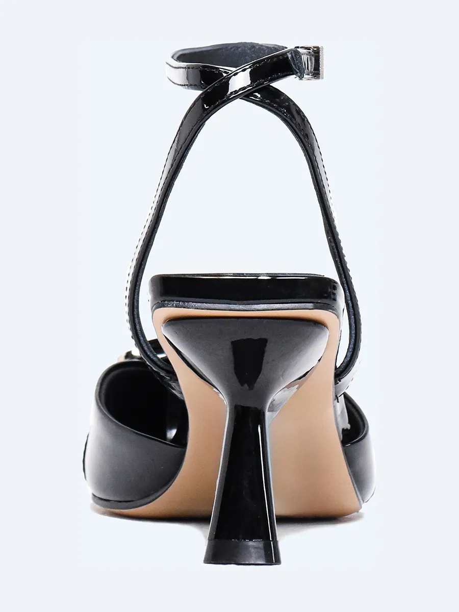 Туфли женские летние, цвет черный, натуральная лаковая кожа