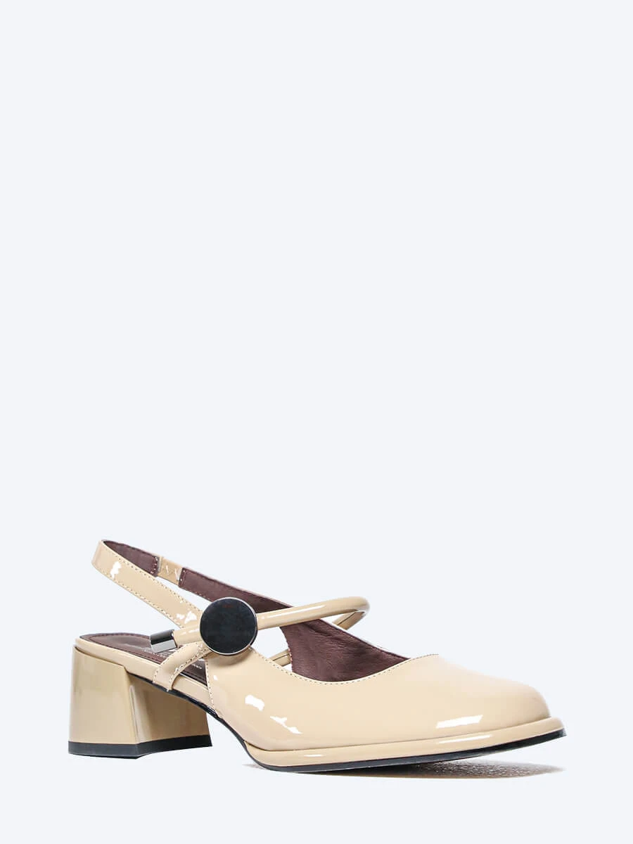 Туфли женские летние, цвет бежевый, натуральная лаковая кожа