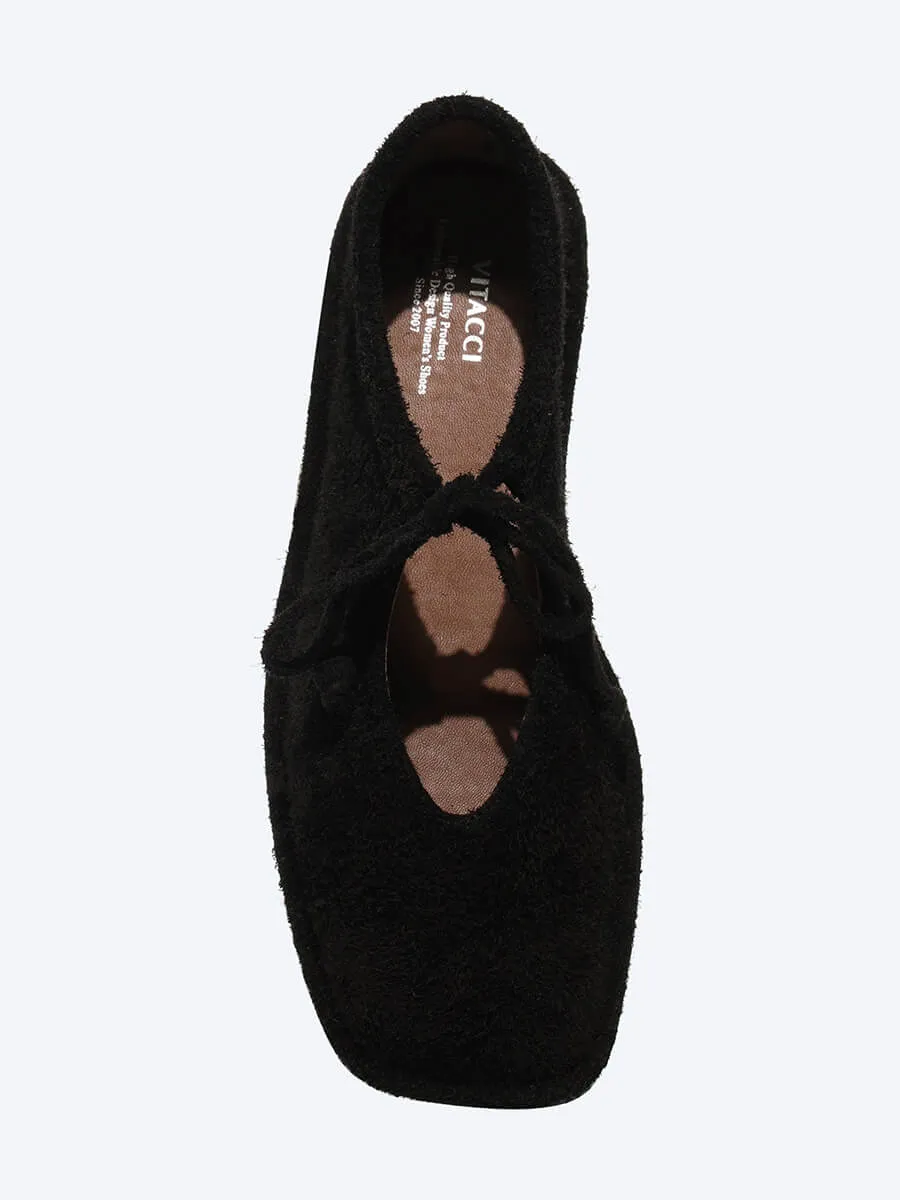 Балетки женские всесезонные, цвет черный, натуральный спилок