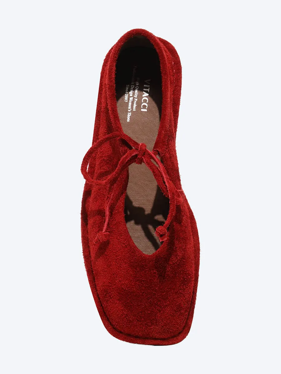Балетки женские всесезонные, цвет красный, натуральный спилок
