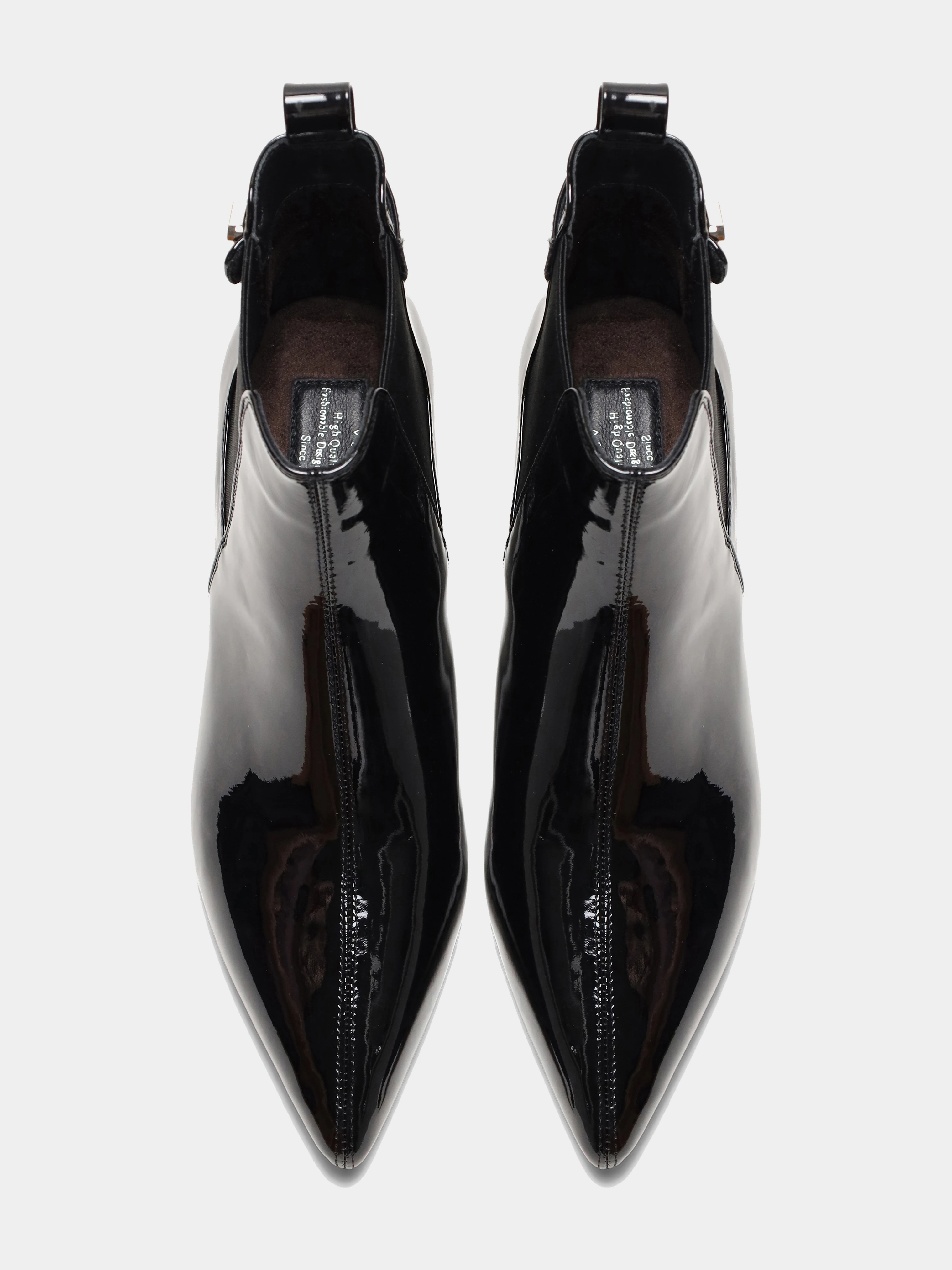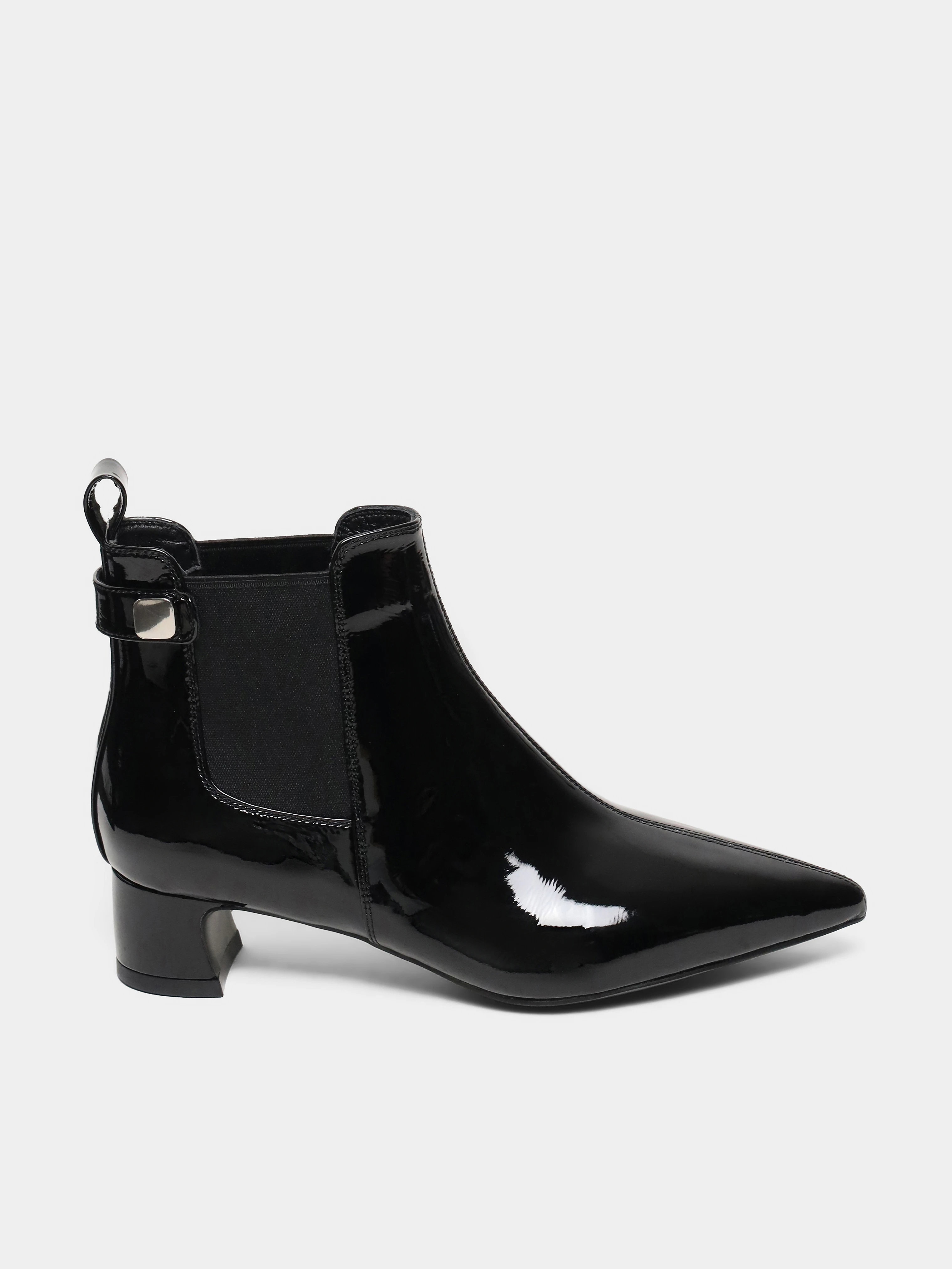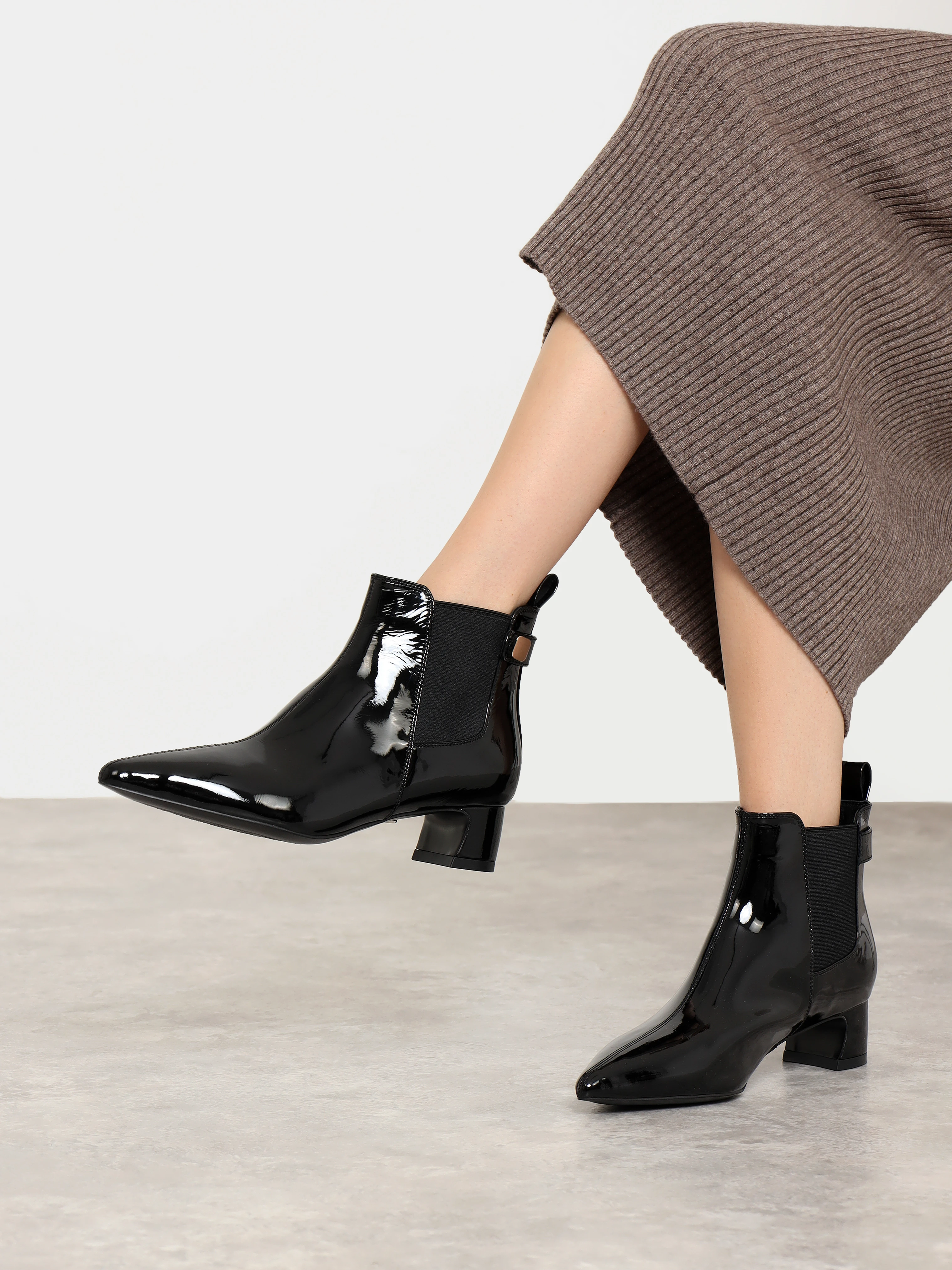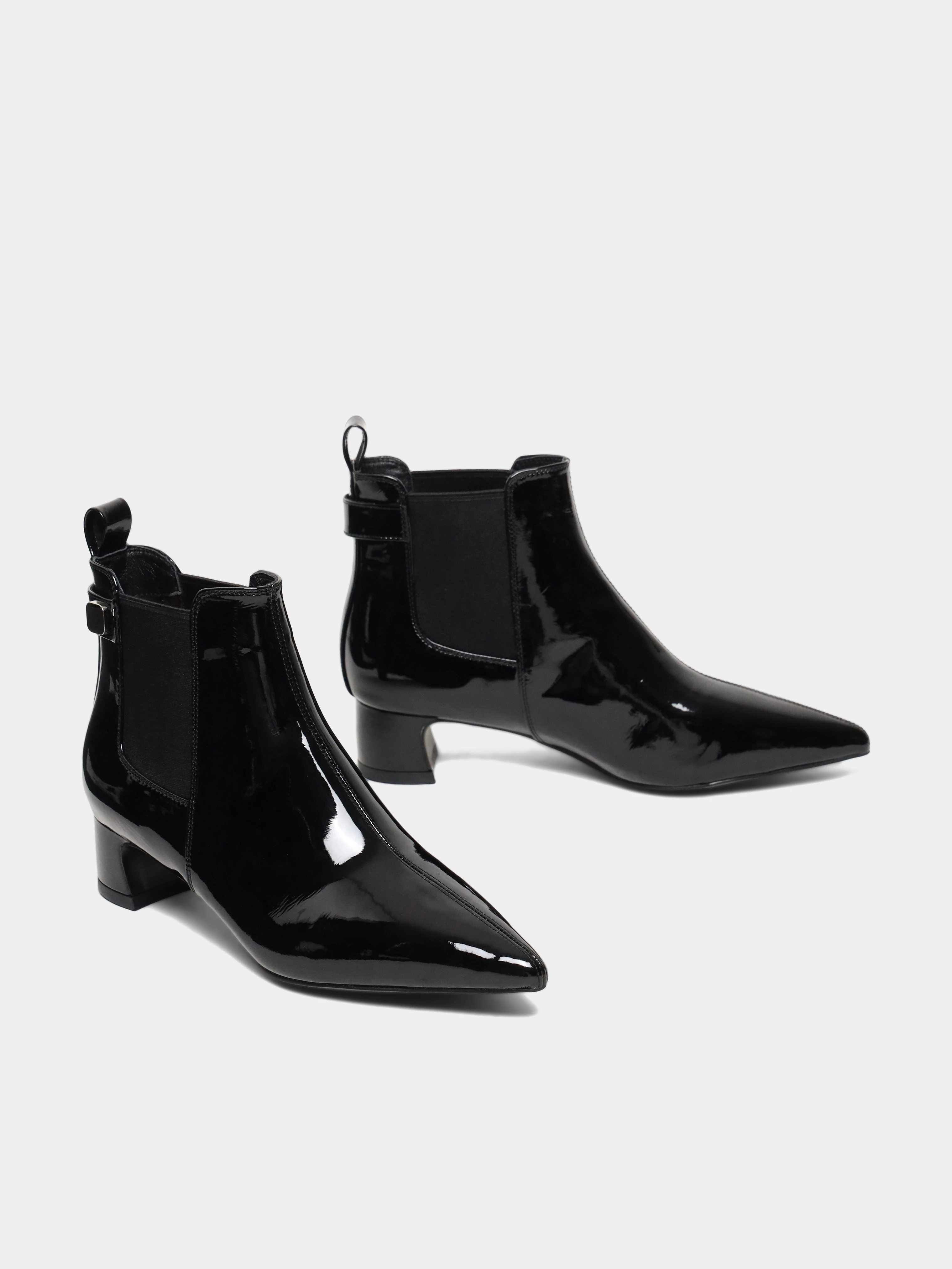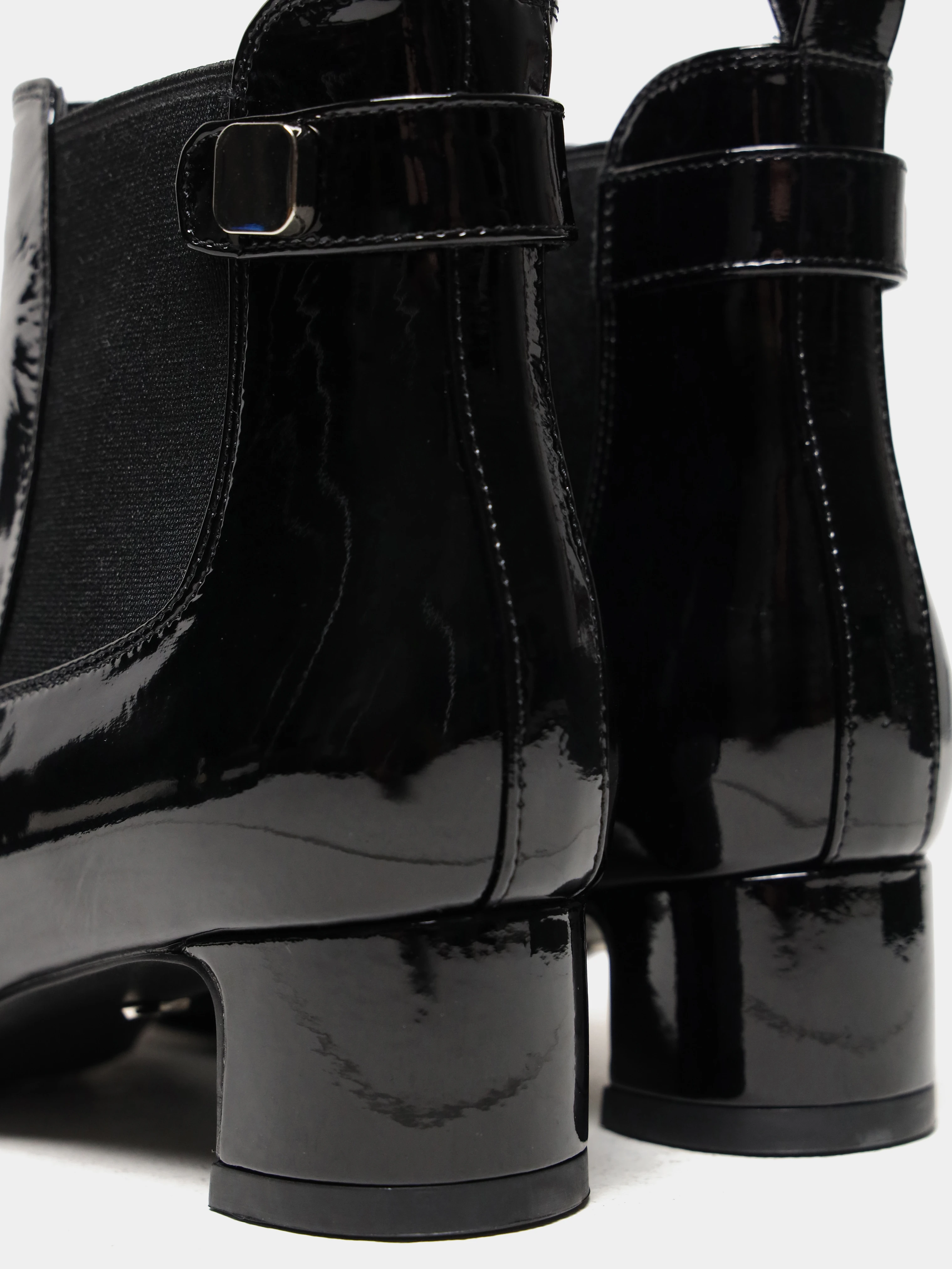 Ботильоны женские всесезонные, цвет черный, натуральная лаковая кожа