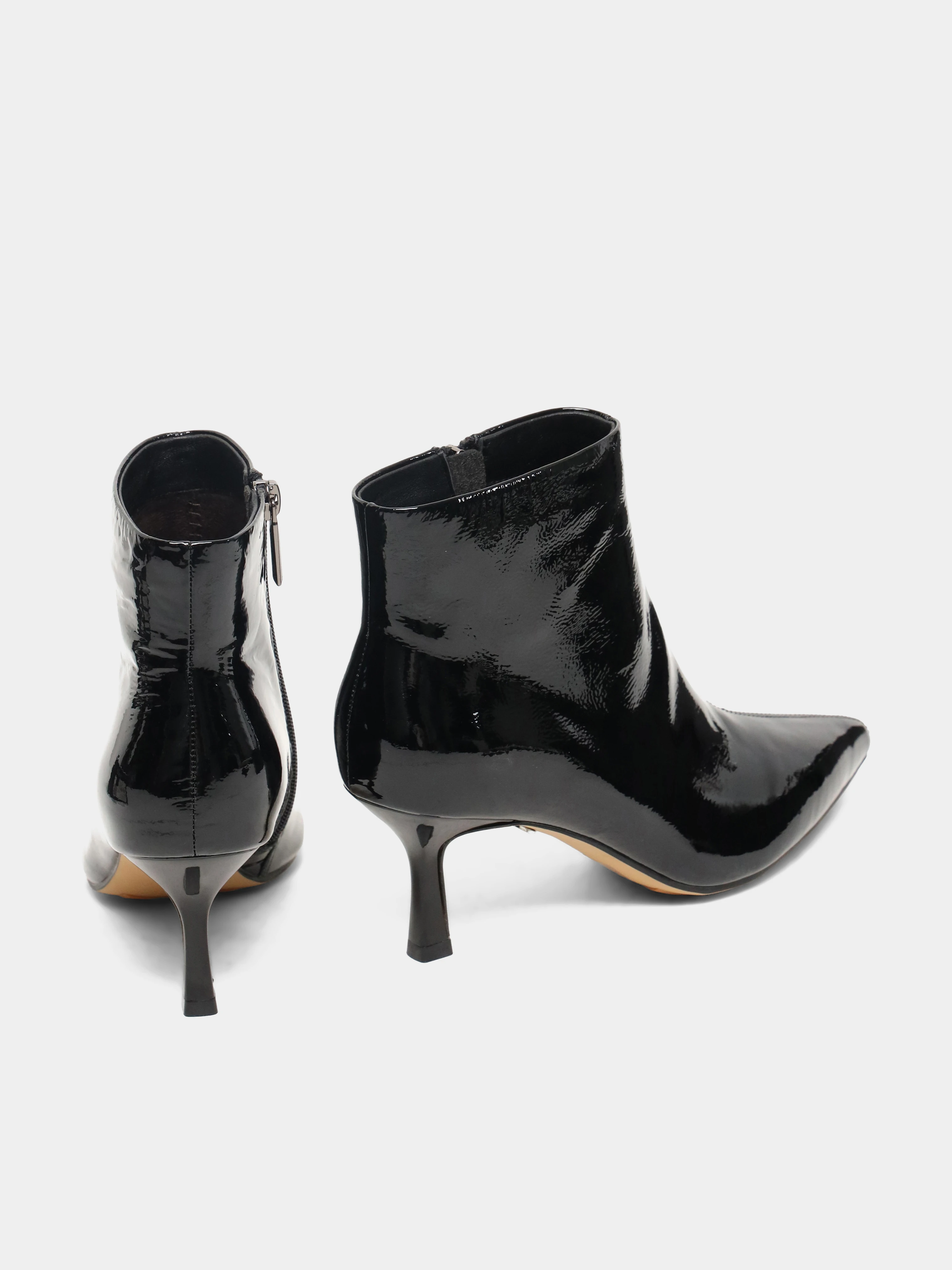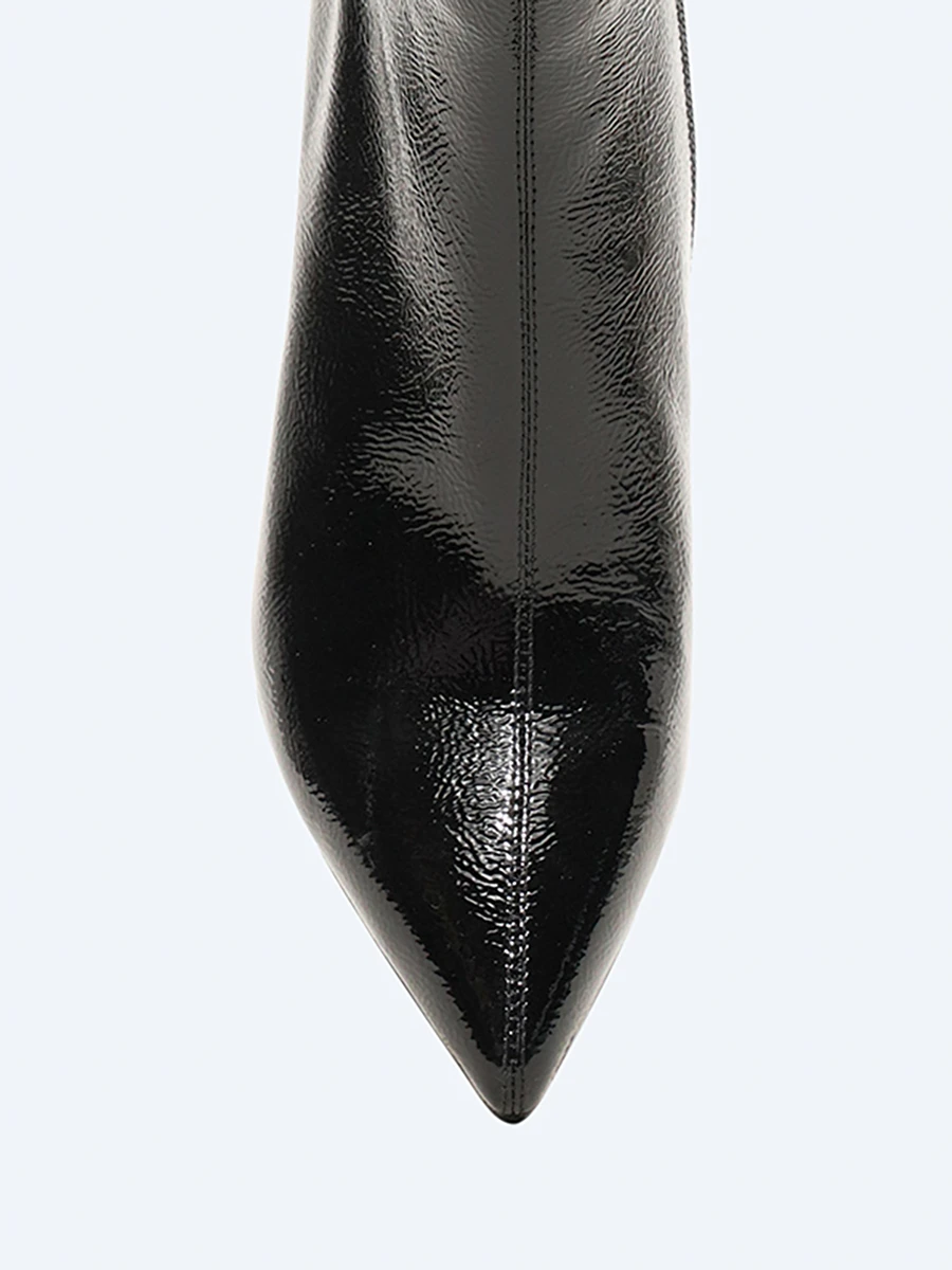 Ботильоны женские всесезонные, цвет черный, натуральная лаковая кожа