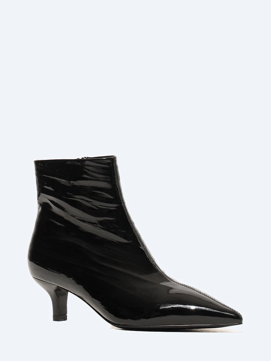 Ботильоны женские всесезонные, цвет черный, натуральная лаковая кожа