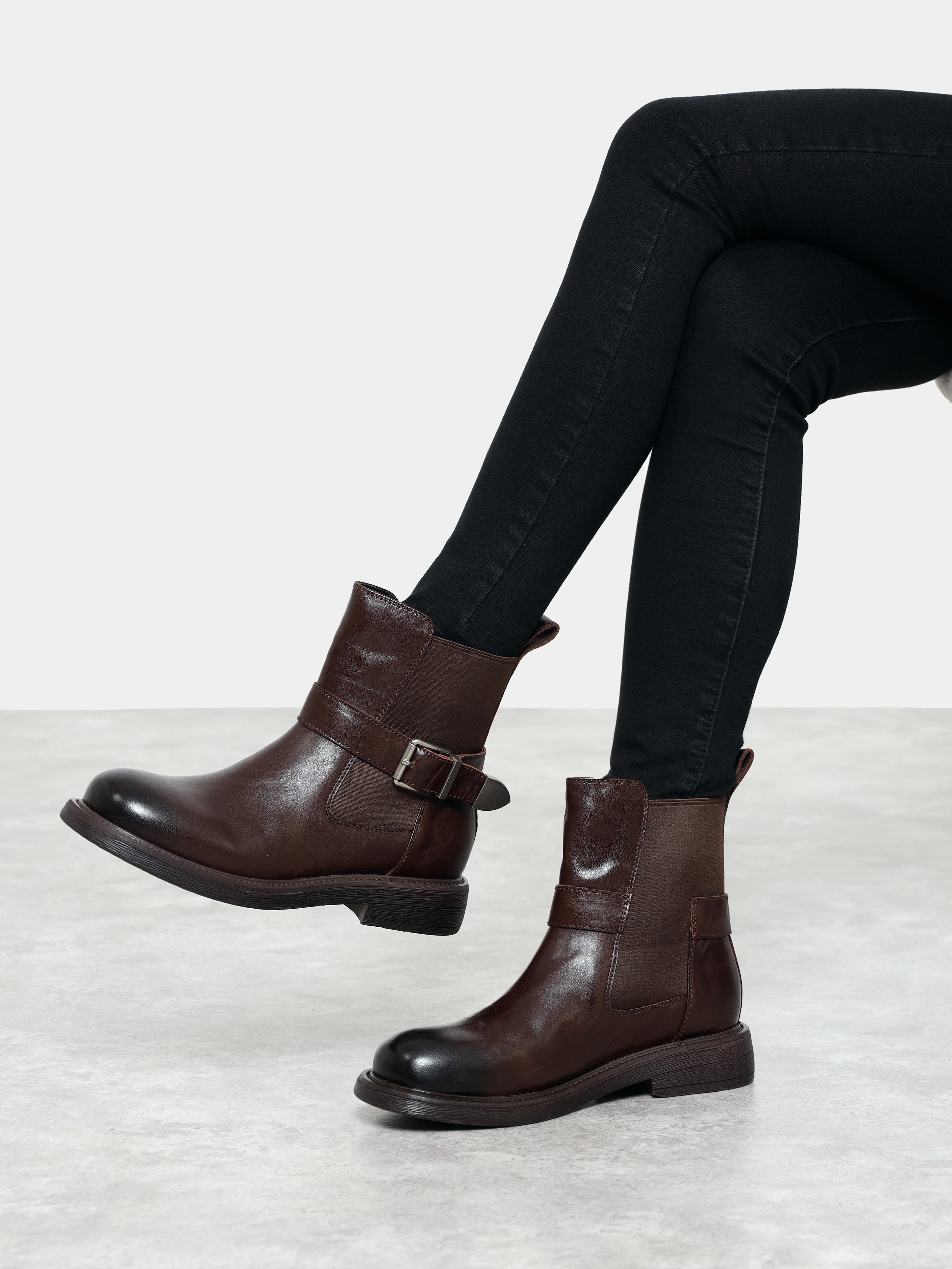 Полусапоги женские демисезонные, цвет коричневый, натуральная кожа