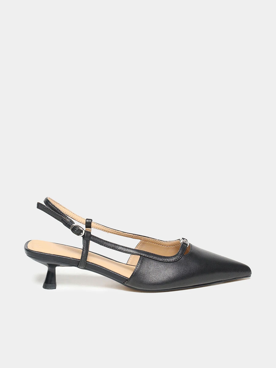 Туфли женские летние, цвет черный, натуральная кожа