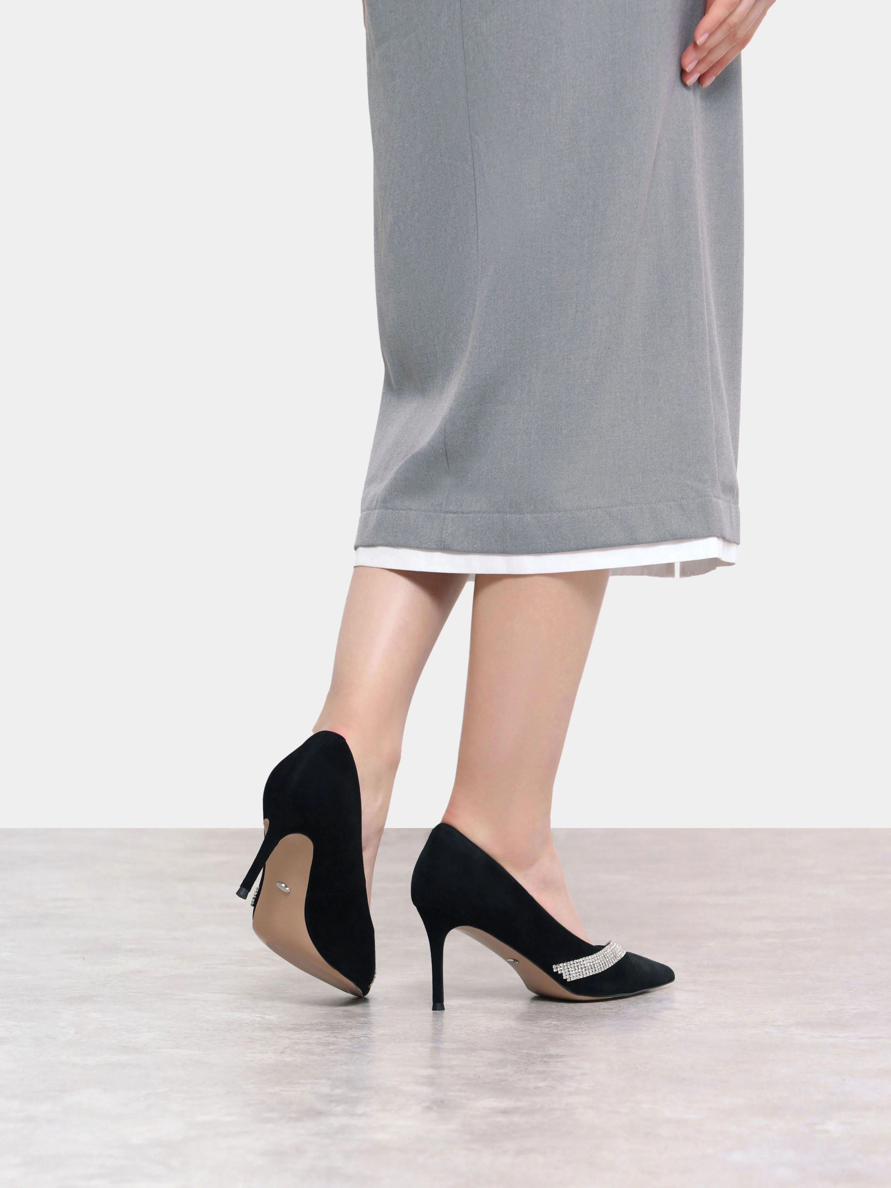 Туфли из натурального велюра от бренда VITACCI. Модные нарядные туфли на среднем каблуке с острым носком. Подойдут на выпускной, праздник, торжество, новый год.