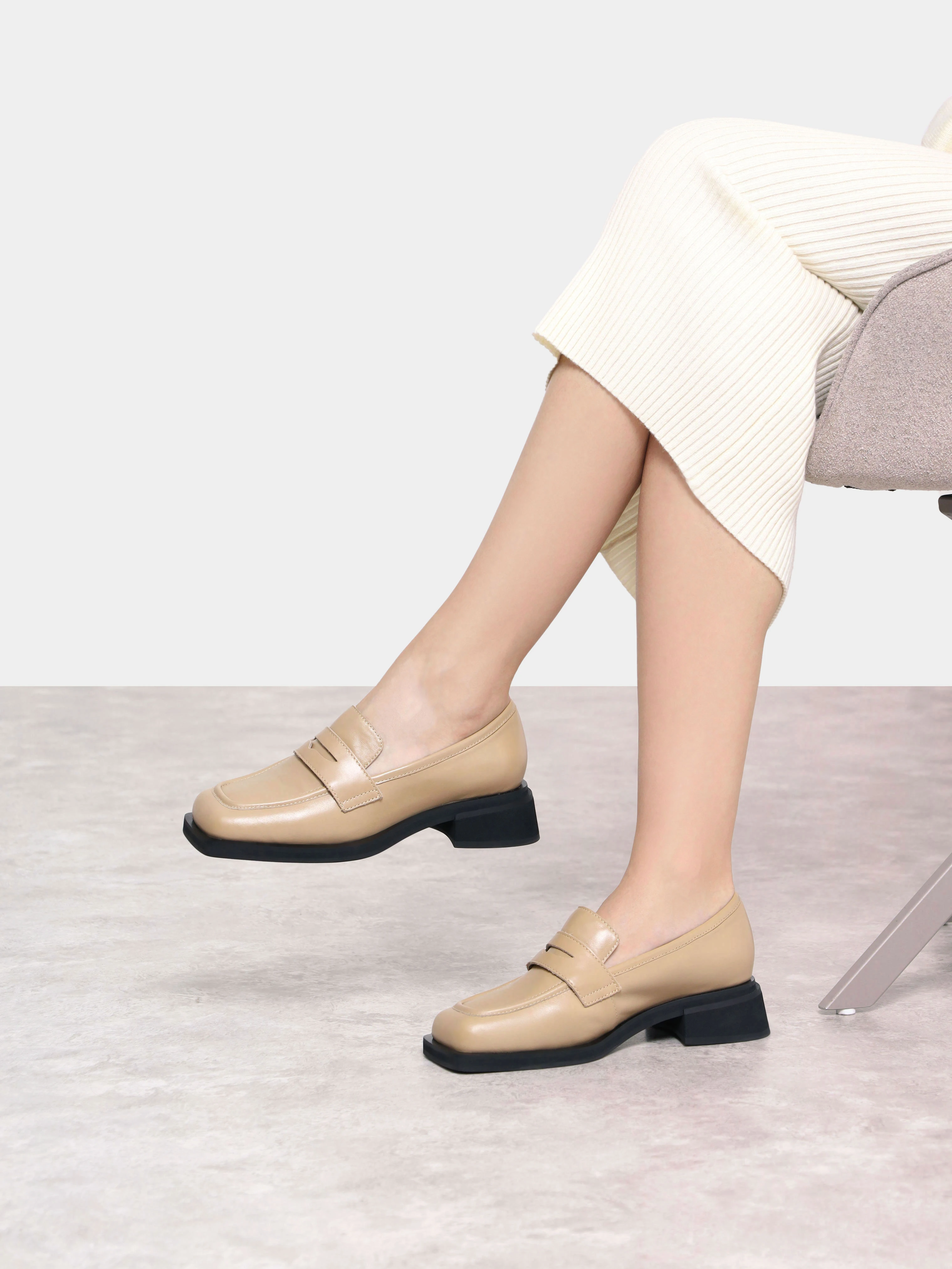 Лоферы женские всесезонные, цвет бежевый, натуральная кожа