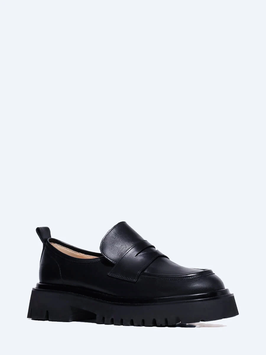 Лоферы женские всесезонные, цвет черный, натуральная кожа