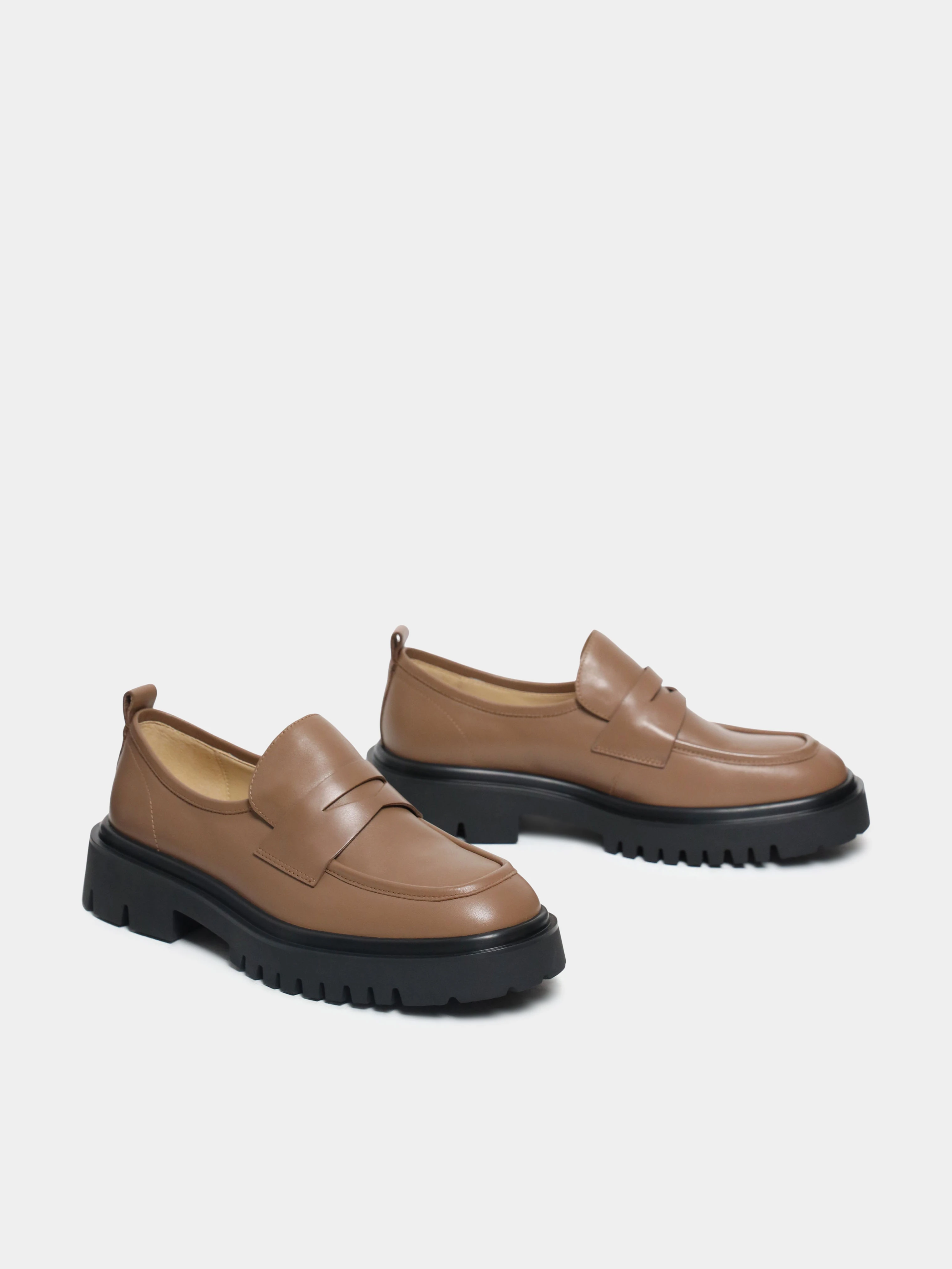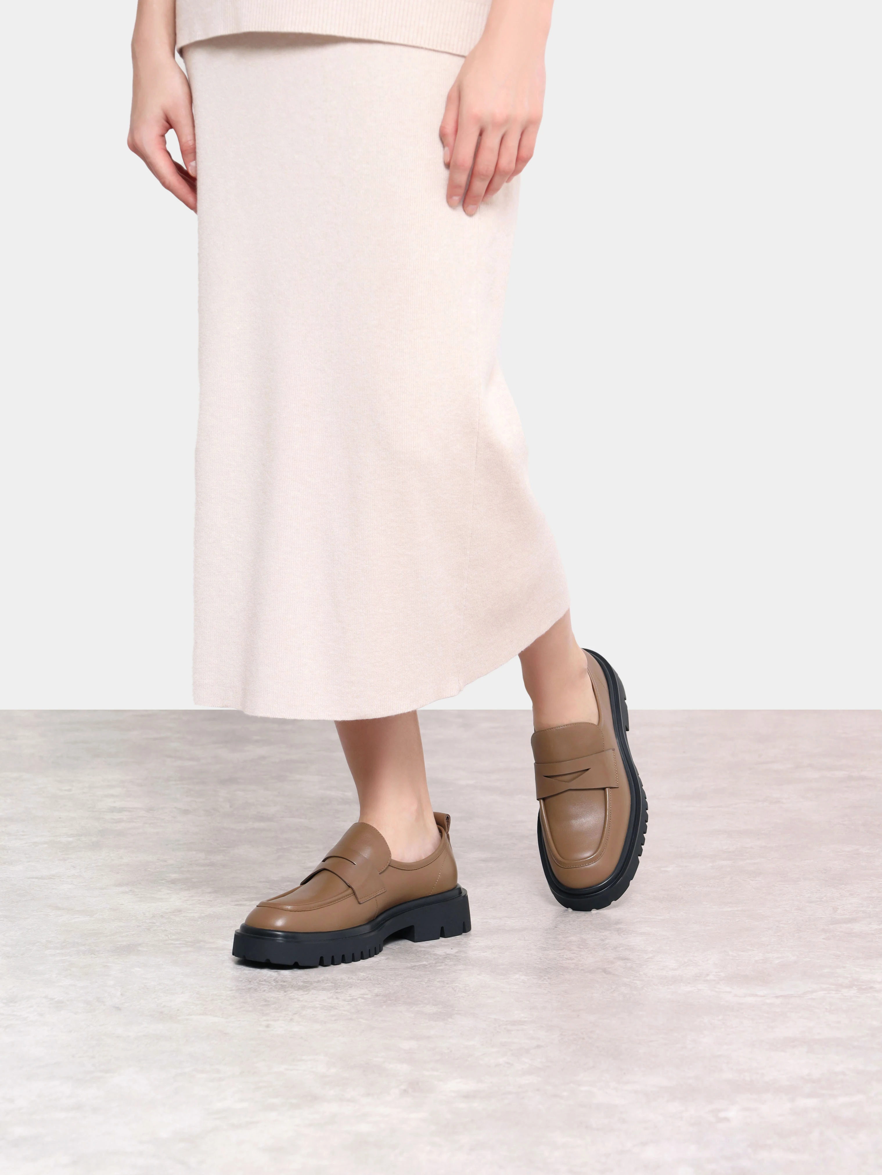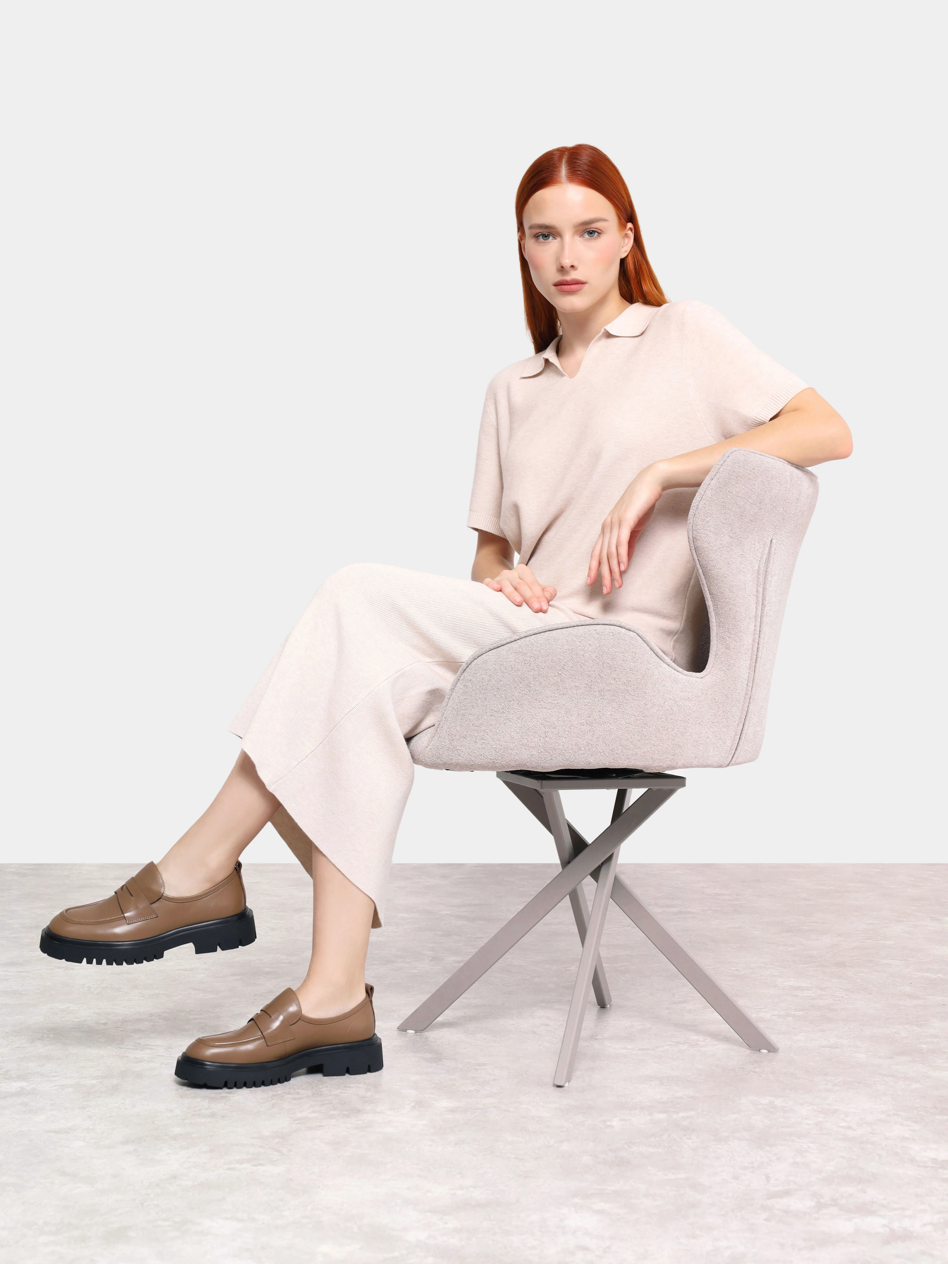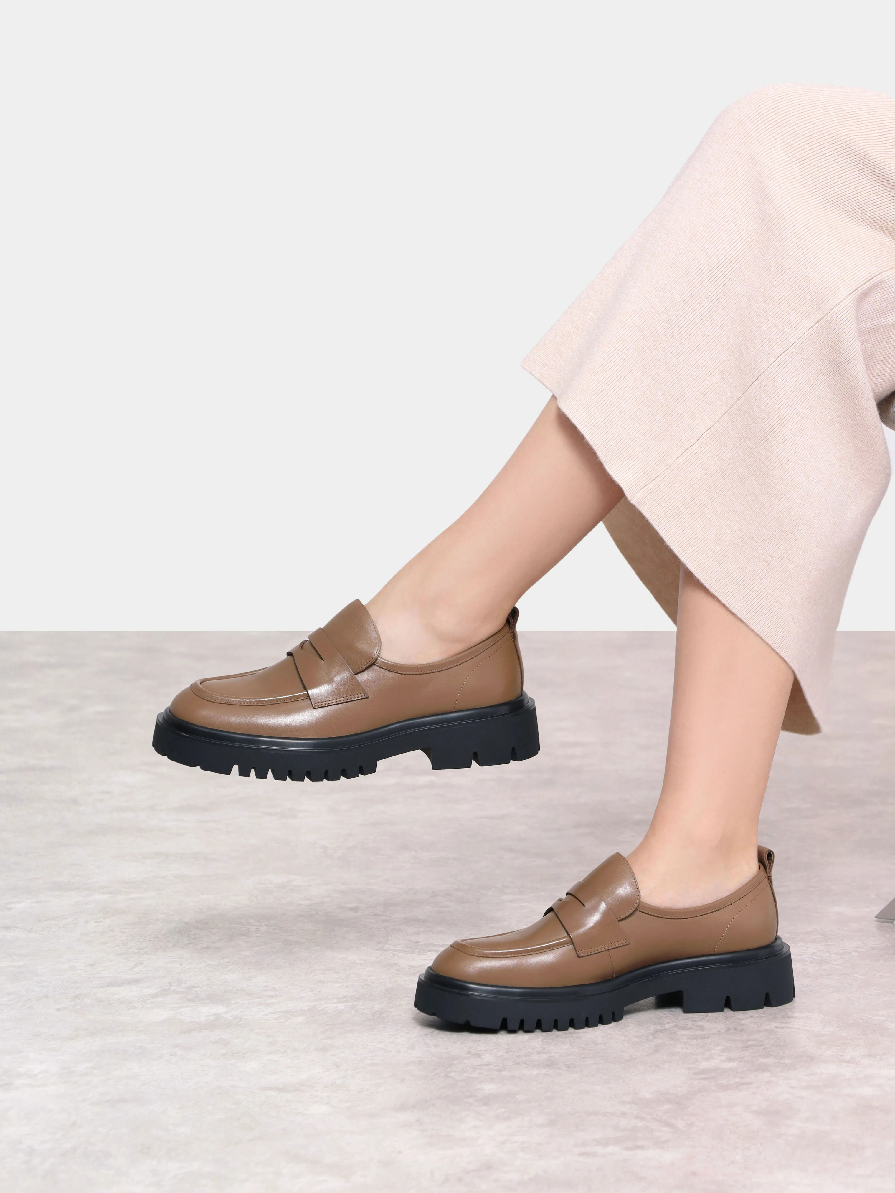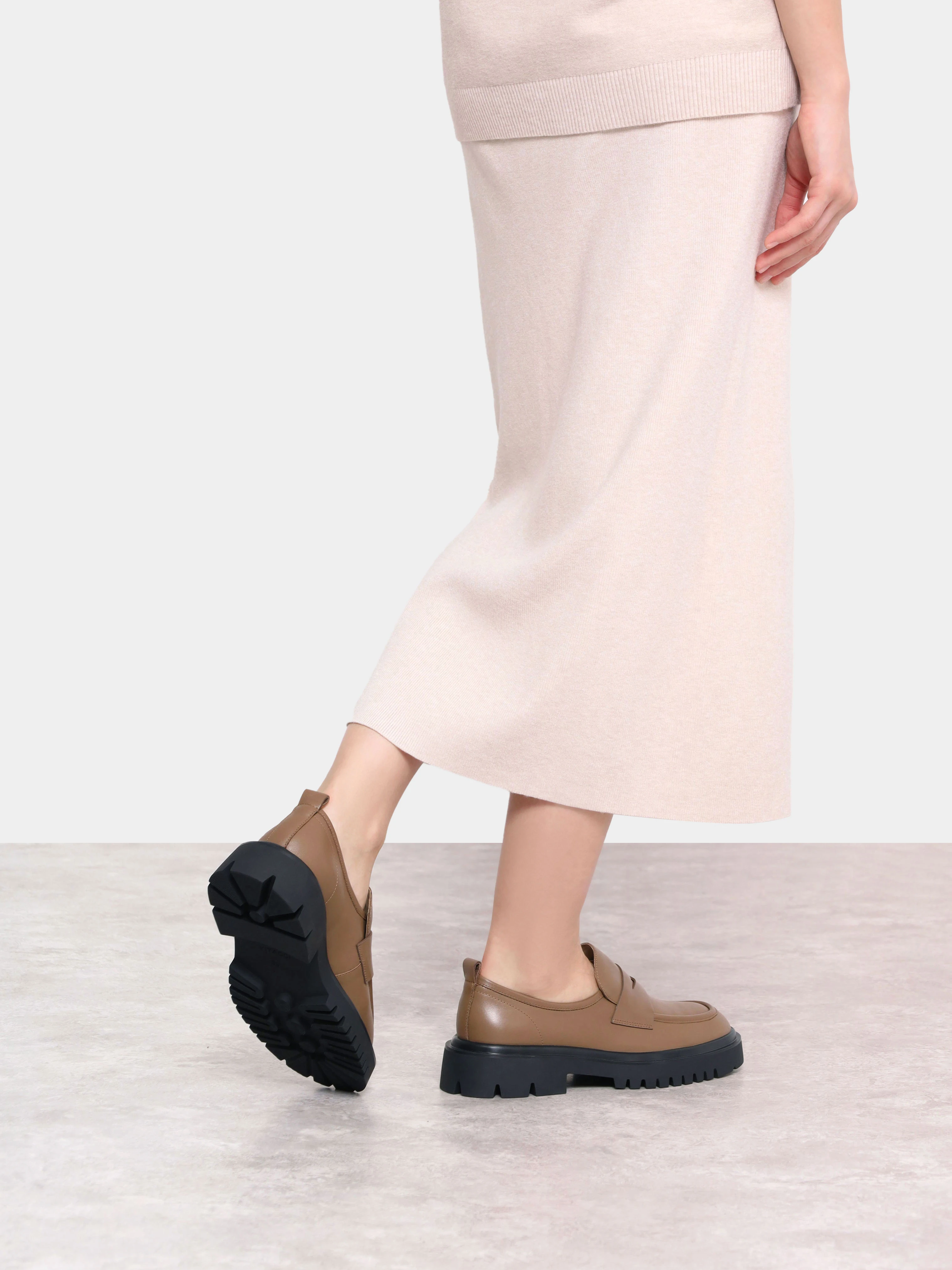 Лоферы женские всесезонные, цвет бежевый, натуральная кожа