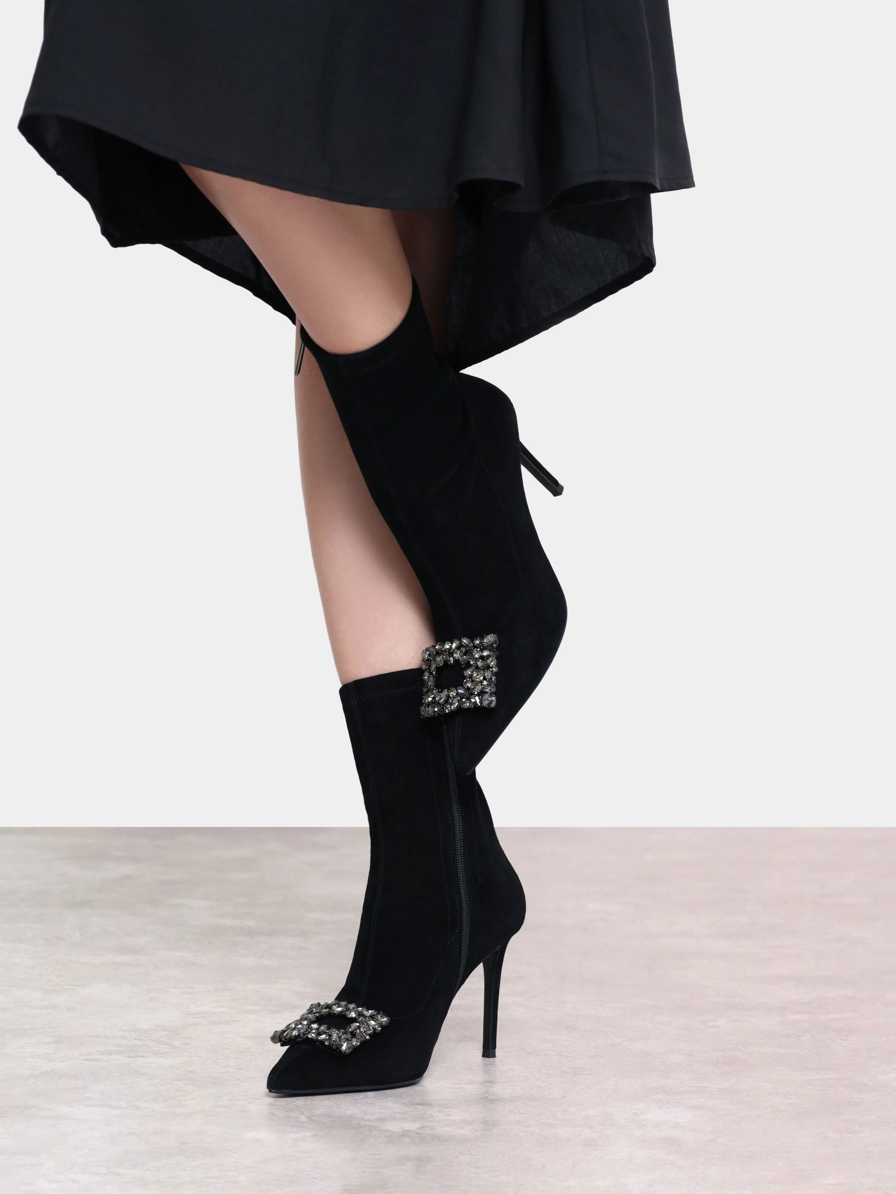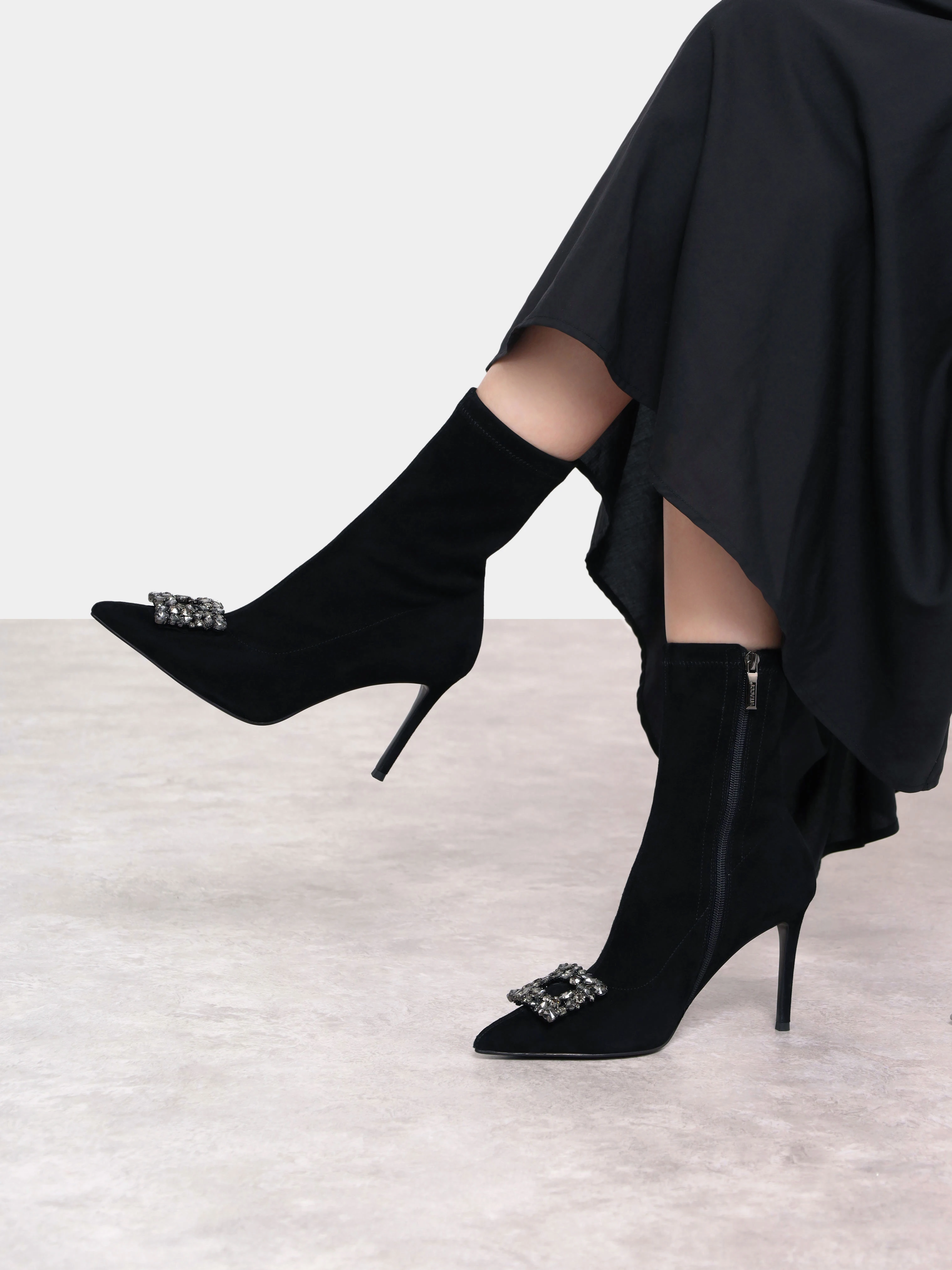 Полусапоги женские демисезонные, цвет черный, натуральный велюр