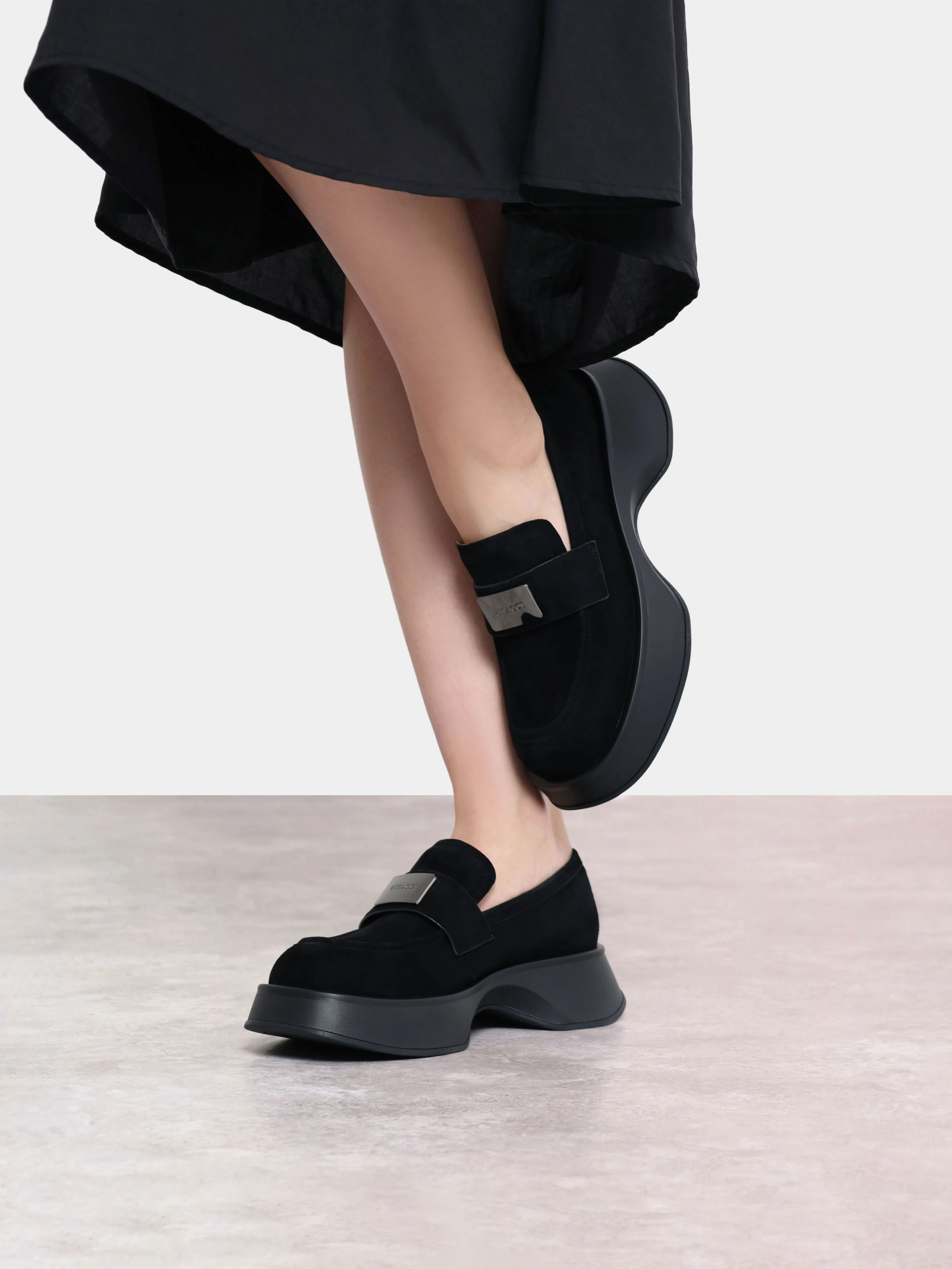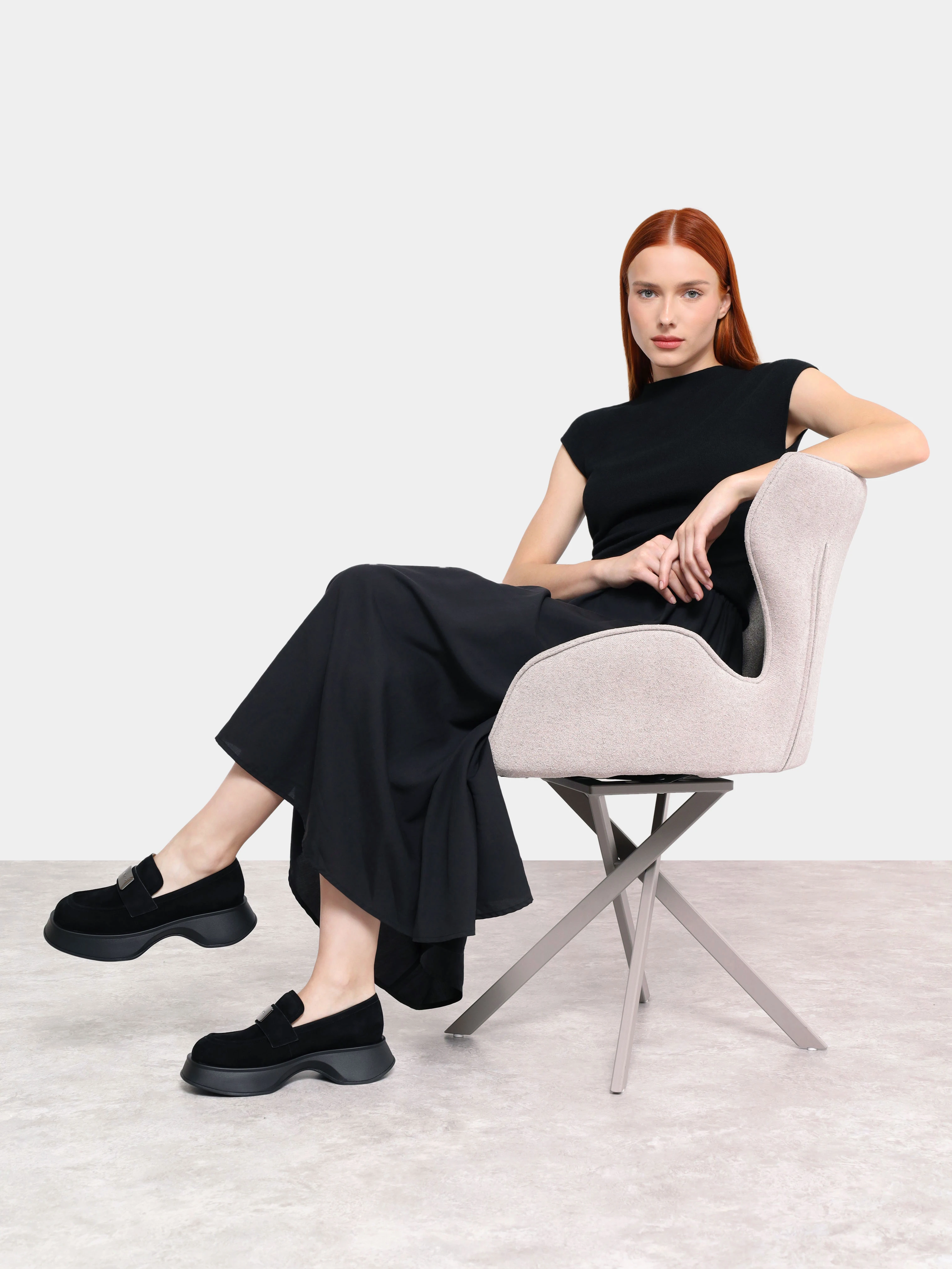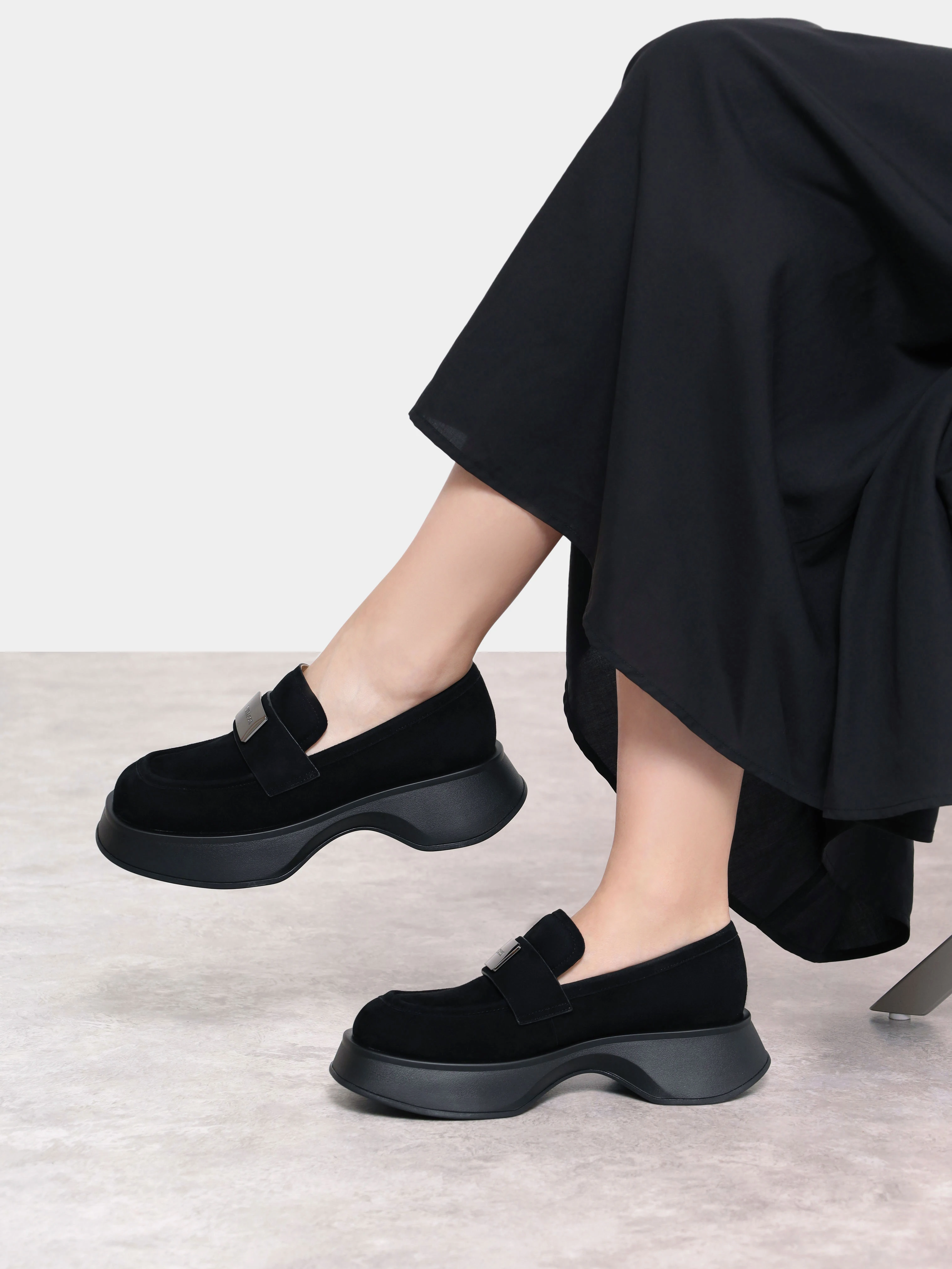 Лоферы женские всесезонные, цвет черный, натуральный велюр
